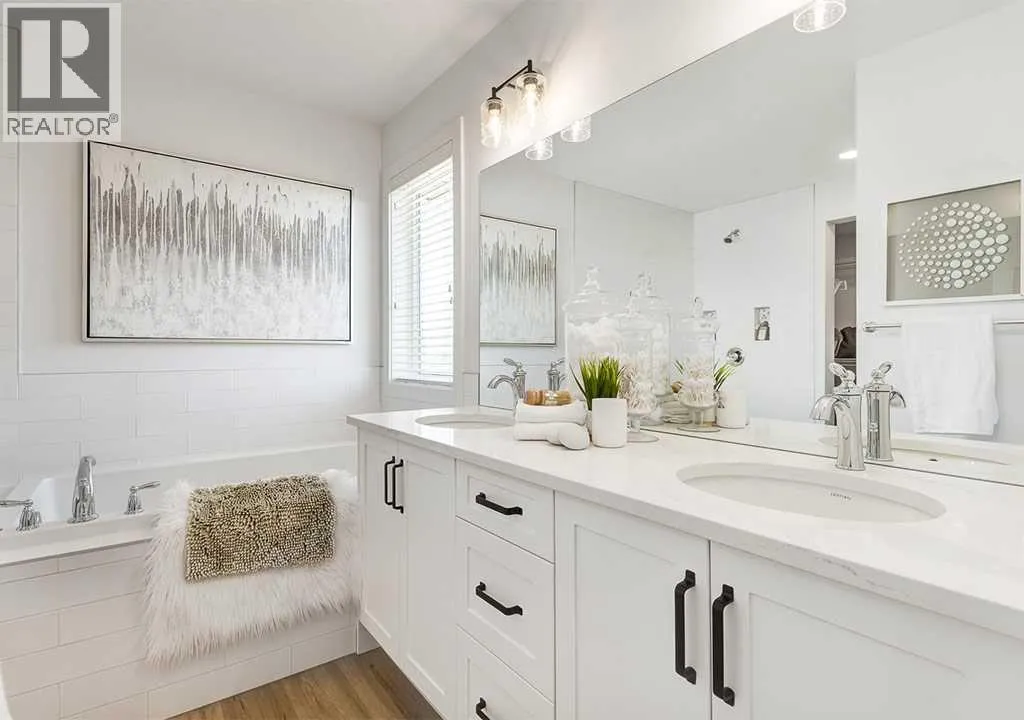LETâS BE HONESTâTHE SECOND ISLAND CHANGES EVERYTHING. Suddenly thereâs room for cereal chaos, laptop cords, and a half-finished science project without losing prep space for dinner. In a world full of cookie-cutter kitchens, this one dares to ask: what if function looked this good? The double-island layout anchors the main floor and proves that design and everyday life can actually get along.TEN-FOOT CEILINGS pull light across every surface, softening the edges and making the space feel calm even when the calendar isnât. The FULL-HEIGHT FIREPLACE WALL adds quiet definition to the living, while the UPGRADED THREE-PANEL PATIO DOOR opens to an ELEVATED DECK that steps down to a partially fenced yard with NO DIRECT NEIGHBOURS BEHINDâjust the kind of privacy that makes morning coffee or late-night barbecue feel like a small luxury. The flow from garage to mudroom to WALK-THROUGH PANTRY to kitchen makes unloading groceries almost satisfying.Upstairs, you arrive in the BONUS ROOMâa bright, open space that catches light from the south stairwell window. From there, FRENCH DOORS lead to the master bedroom, where calm takes over: a SOAKER TUB, DUAL SINKS, TILED SHOWER, and enough space to exhale. Each secondary bedroom includes its own walk-in closet (a rare peace treaty in most families), and the laundry room comes with a built-in counter that turns folding into something you might actually finish.Down below, a SEPARATE SIDE ENTRY and NINE-FOOT FOUNDATION height set the stage for whatever comes nextâfuture development, multi-gen living, or that gym you swear youâll use. ROUGH-INS FOR A WET BAR, SECOND LAUNDRY, EV CHARGER, AND SOLAR CONDUIT are already waiting, because good planning is invisible until you need it.Outside, durable HARDIE SIDING and clean lines give the home a modern, enduring feel that fits the evolving streetscape of Lewisburg. You can tell this plan was drawn by people who understand how families actually move through a houseâand what happens when the y donât.Book a showing today. Itâs the kind of plan that doesnât need a pitchâjust a walk-through. ⢠PLEASE NOTE: Photos are of a finished Showhome of the same model â fit and finish may differ on 72 Lewisburg Close NE. Interior selections and floorplans shown in photos. (id:27476)