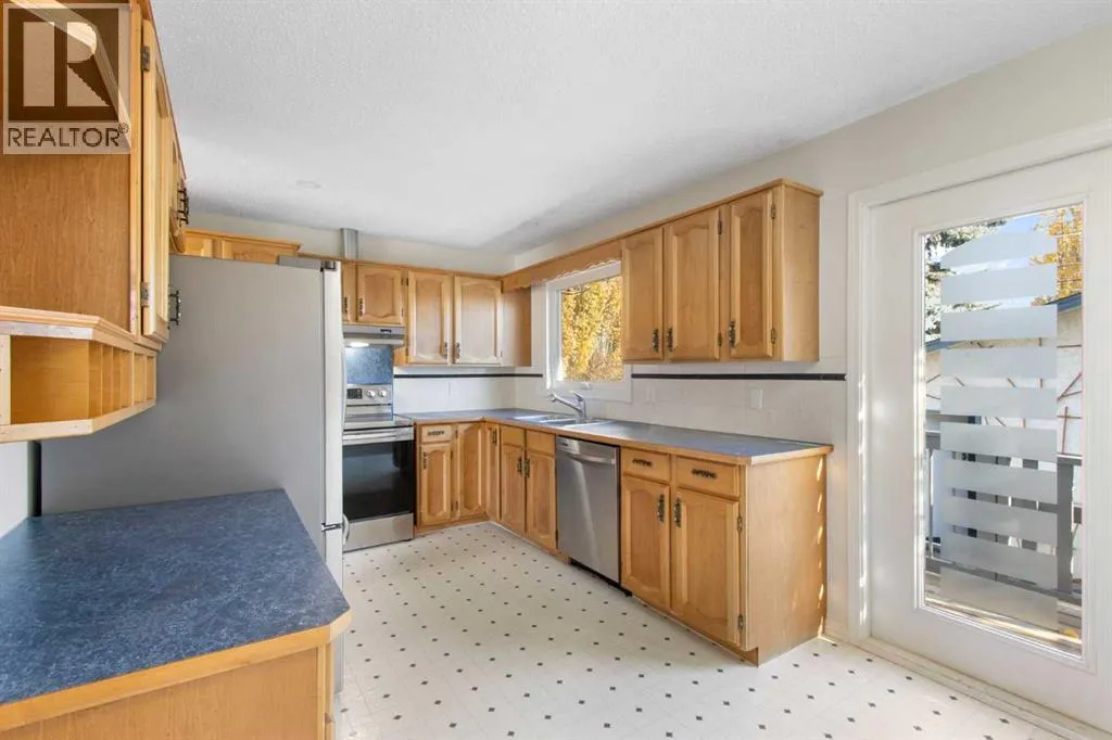 Step into homeownership with confidence - backed by the financial boost and peace of mind that a mortgage helper provides. Welcome to this solid, updated detached home tucked into the quiet, mature neighbourhood of Bonavista Downs where the streets are lined with trees and the parks are just steps away. This is the kind of location that gives you room to breathe â right across from a greenspace, close to playgrounds, schools, shopping, disc golf, rinks, and sport courts. Whether itâs an evening walk, a weekend game, or a coffee run, everything you need is within reach. Inside, the home offers a smart, functional layout that just makes sense. The main floor greets you with an open and inviting living space anchored by a wood-burning fireplace and huge front windows that flood the room with natural light. Pot lighting adds warmth and dimension, while a built-in bookcase gives the space a touch of character. The kitchen features stainless steel appliances, ready for family meals or entertaining friends, and the deck off the entrance provides convenient access to your BBQ and an ideal space to enjoy the outdoors. With 2 bedrooms and a full bath upstairs, youâll find plenty of comfort and convenience â but the real bonus comes below. The legal basement suite is a game changer for first-time and move-up buyers â perfect for helping cover the mortgage or providing space for family. Thoughtfully updated with a newer kitchen and a comfortable living area, it feels like a true home, not a basement. Both suites share a separate laundry room, keeping things organized and efficient. Outside, the property continues to impress with established landscaping, gated 9' x 24' RV parking pad, and an oversized double detached garage with a gas heater â an excellent workspace for hobbyists or a warm spot for your vehicles year-round. And the updates? Theyâre already done for you: newer shingles on both the house and garage, newer furnace and hot water tank and newer triple-pane windows fo r better efficiency and peace of mind. A detached home in a mature community, with modern updates, a legal suite, and space to grow into. Perfect for buyers who want independence, income potential, and a place theyâll be proud to call home. Book your private showing today! (id:27476)