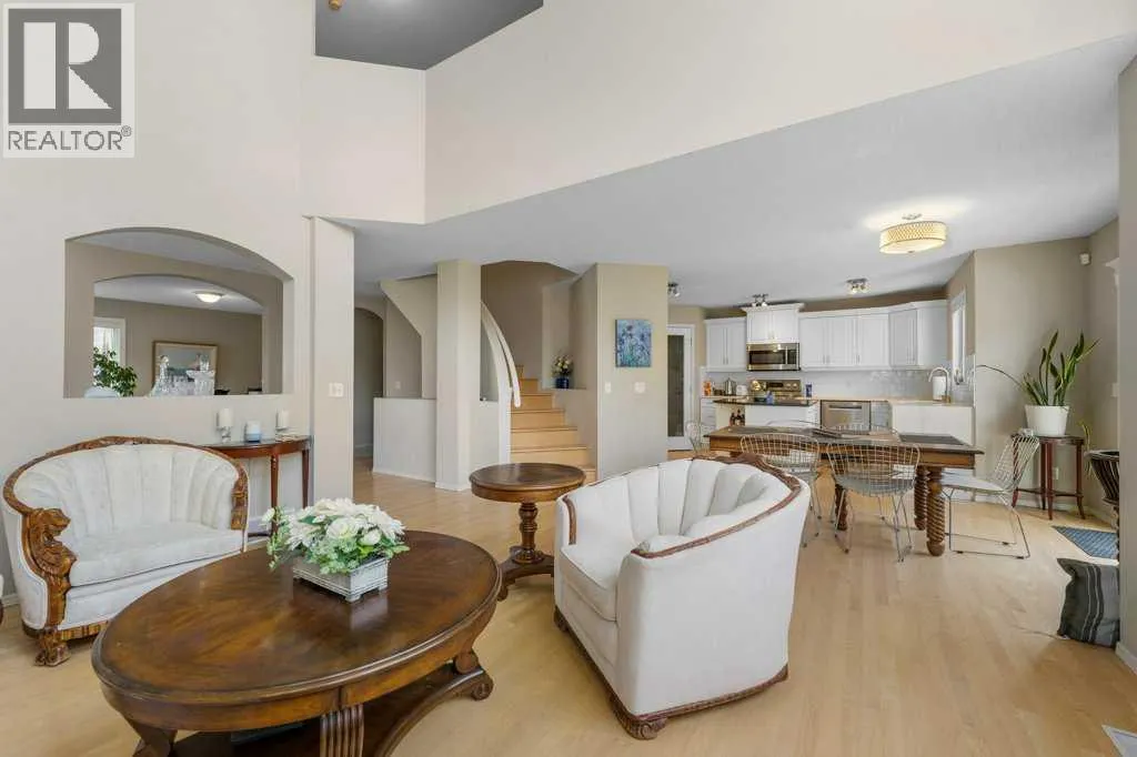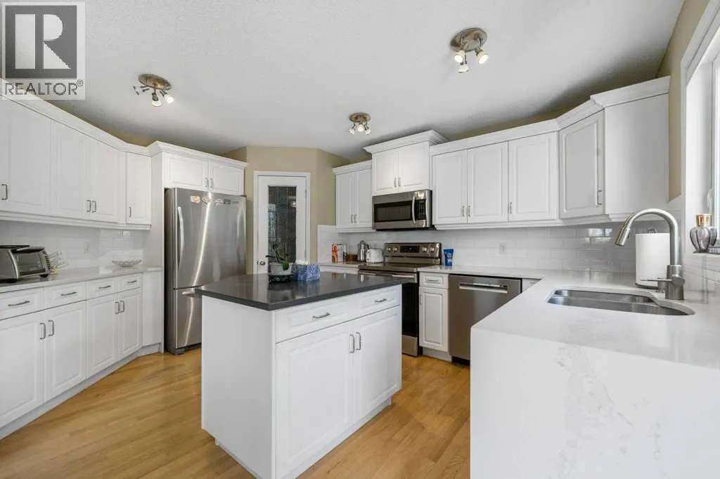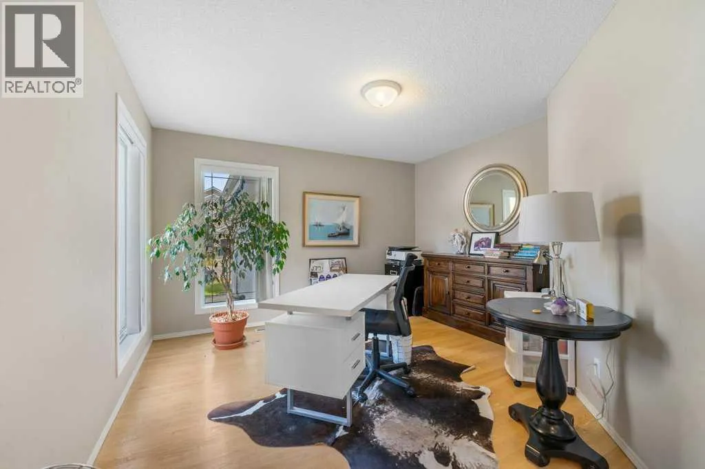 ***Open House Sunday, November 16; 12:00 - 2:00*** Immaculate and beautifully maintained two-storey home on a quiet street in Valley Ridge â just steps from parks, pathways, and the golf course. This bright, welcoming home offers over 1,909 sq. ft. of living space above grade, plus a developed basement. All thoughtfully updated for modern comfort. A spacious foyer opens to soaring vaulted ceilings and expansive windows that fill the home with natural light. The main floor offers a versatile front office or den, a generous living area with gas fireplace, and a formal dining space ideal for entertaining. The renovated kitchen features granite counters, stainless steel appliances, a corner pantry, and a large island adjoining the breakfast nook with garden views. A mudroom with laundry and a guest bath complete the main floor. Upstairs, youâll find three large bedrooms, including a serene primary suite with a walk-in closet and full ensuite bath. The lower level is fully developed with a family room and second fireplace, a fourth bedroom, full bath, and expansive storage space. Enjoy the incredible west-facing backyard â complete with mature landscaping, tiered patio, and firepit â perfect for relaxing evenings. Oversized double garage (28â deep on one side) provides exceptional utility for larger vehicles or a workshop area. Recent improvements include new windows, extensive landscaping, upgraded flooring, new furnace (2018), and refreshed finishes throughout. Ideally located with quick access to Highway 1, the mountain parks and amenities, this move-in-ready home offers warmth, functionality, and enduring value in one of NW Calgaryâs most desirable communities. (id:27476)