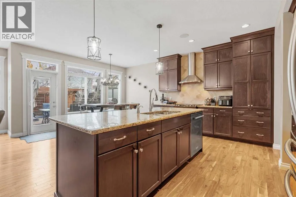 Welcome to this fantastic family home perfectly situated on a quiet cul-de-sac in sought-after Auburn Bay. Offering over 4,000 sq. ft. of beautifully designed living space, this rare property features four bedrooms plus a bonus room upstairs and a fifth bedroom in the fully developed lower levelâideal for growing families and guests.The main level features 9-foot ceilings, hardwood flooring, and an open-concept layout that seamlessly connects the kitchen, dining area, and great room. The kitchen is a chefâs delight with granite countertops, stainless steel appliances, ceiling-height cabinetry, a butlerâs pantry with wine fridge, and a walk-through mudroom for easy garage access. The great room features a gas fireplace with tile surround and built-in ceiling speakers, perfect for entertaining.The upper level impresses with vaulted ceilings in both the primary and second bedrooms, complete with ceiling fans and abundant natural light. The primary suite is a peaceful retreat with a wall of east-facing windows, a luxurious 5-piece ensuite featuring dual vanities, a soaker tub, a separate shower, a private water closet, and a walk-in closet. Three more bedrooms and laundry room complete the upper level.Downstairs, the fully developed lower level offers a spacious recreation room with gas fireplace, wet bar with wine fridge and built-in cabinetryâthe ideal setup for movie nights or guests. A fifth bedroom, 3-piece bathroom, and large utility/storage room complete the basement.Additional highlights include: Triple attached heated garage plus driveway parking for four more vehicles, Tankless water heater, water softener, and dual Lennox furnaces with humidifiers.The backyard is a dream featuring Composite deck with gas line for BBQ, hot tub under pergola, and landscaped backyard featuring stamped concrete walkways, fire pit area (furniture included), mature trees, 8â fencing for privacy along with a Storage shed tucked neatly to the side yardEnjoy the best of Auburn B ay livingâsteps from walking paths, the community pond, Auburn Bay Lake, and an off-leash dog park. Families will appreciate proximity to excellent schools, playgrounds, and community amenities. The location offers quick access to Setonâs South Health Campus, shopping, restaurants, and major routes including 52nd Street, Deerfoot Trail, and Stoney Trail.This exceptional home combines space, comfort, and thoughtful design in one of Calgaryâs most family-friendly communities. (id:27476)
