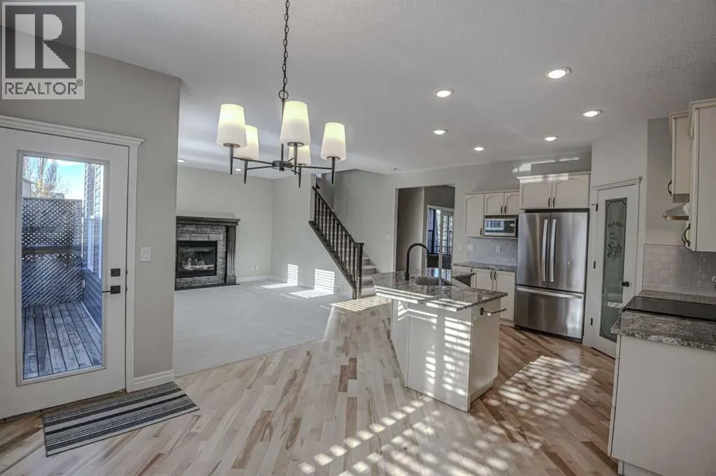 Prestwick Estates â Beautiful 3-bedroom, 2 ½ bath home with an oversized double garage and a legal one-bedroom carriage suite. Self contained, one bedroom, legal carriage suite currently rented for $1,375/month (covers $260,000+ in mortgage at todayâs rates). The main floor features 9-ft ceilings, a large kitchen with new granite countertops, stainless-steel appliances, a huge island perfect for entertaining, a spacious great room with gas fireplace, a front flex room, and a main floor den with French doors. Refinished hardwood floors on the main level add warmth throughout. Upstairs offers three bedrooms, a convenient laundry room, and two full baths, including a generous primary suite with double doors, walk-in closet, a 5-piece ensuite with soaker tub, a separate 4-ft shower, and dual sinks. The basement is ready for development with rough-in plumbing and two large windows. The self-contained one-bedroom legal carriage suite features vaulted ceilings, a galley kitchen, a 4-piece bath, and updated in-suite laundry. Recent updates in the main house include new granite counters, refinished hardwood floors, new carpet, fresh paint throughout, and new shingles ordered. The yard is nicely landscaped with a covered front porch, large south-facing rear deck and mature trees. Lots of parking with an oversized double garage and a double wide parking pad off the paved alley. Located on a quiet street in the desirable McKenzie Towne community, this home is just a short walk to schools, parks, High Street shops, and the community splash park. (id:27476)