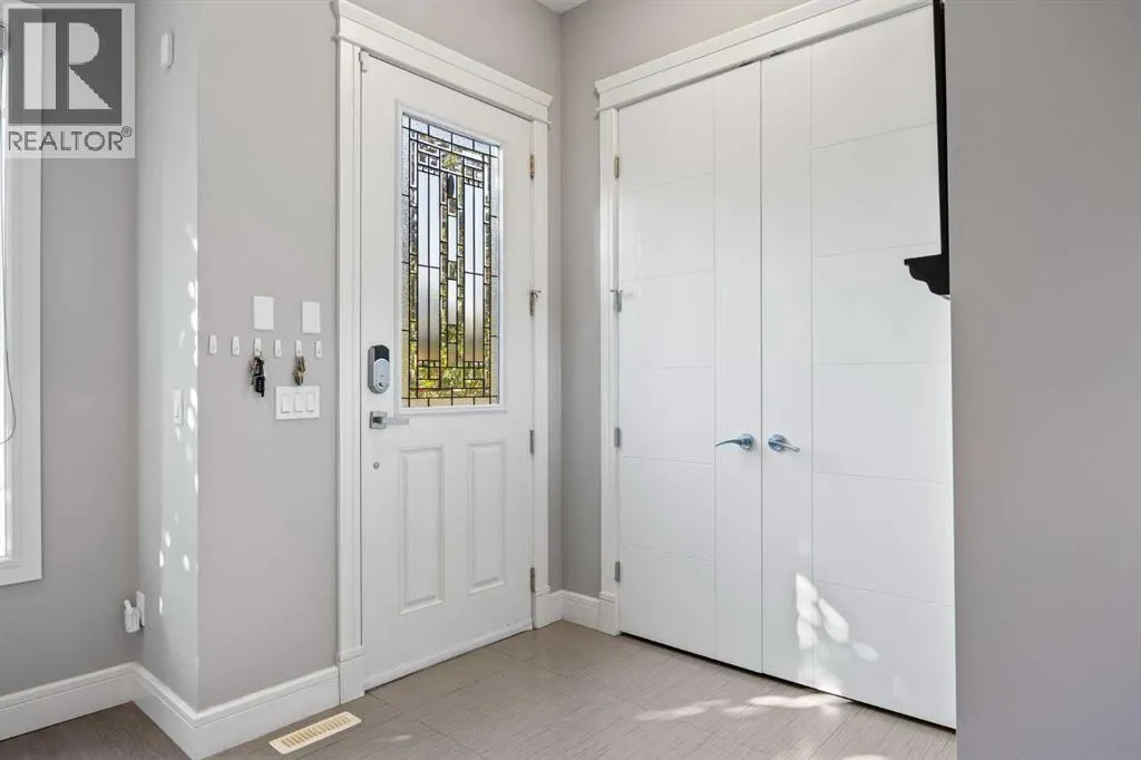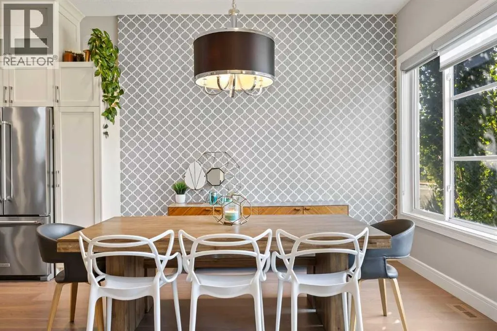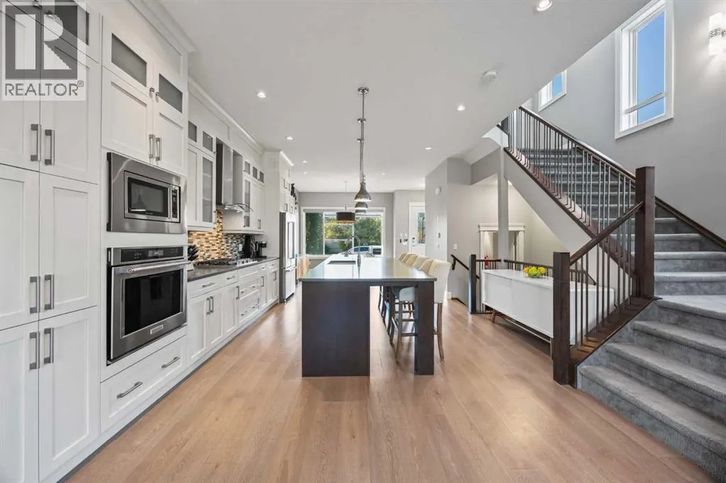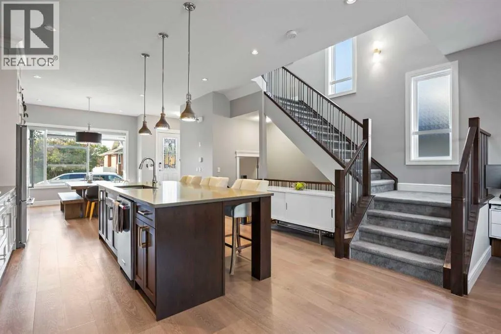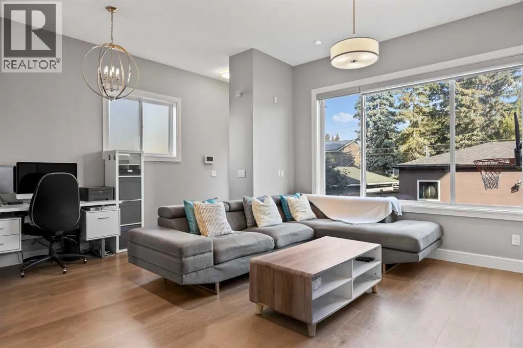 Location perfection â a quiet street, just steps from two schools! Welcome to this luxurious 4-bedroom, 3.5-bath semi-detached home, loaded with high-end upgrades throughout, in the highly sought-after community of Banff Trail.Step inside and be greeted by soaring 10â ceilings and rich hardwood floors that flow throughout the main level. The open-concept layout is designed for both everyday living and entertaining, featuring a spacious dining area perfect for large gatherings. The chef-inspired kitchen offers upgraded white custom cabinetry, a massive quartz island, and premium finishes that overlook the inviting living room complete with a tile-surround gas fireplace. A stylish 2-piece powder room completes the main floor.Upstairs, skylights flood the stairwell with natural light. The primary retreat boasts dramatic vaulted ceilings, a custom walk-in closet with built-ins, and a spa-like 5-piece ensuite with jetted tub and dual vanities. Two additional bedrooms also feature vaulted ceilings and custom built-in closets, alongside a 4-piece bath and full-size laundry room.The fully developed basement is designed for relaxation and entertainment, showcasing a spacious rec room with built-in speakers, a wet bar, and plenty of room for movie nights. A fourth bedroom with its own built-in closet and a 4-piece bathroom complete the lower level.Additional highlights include central air conditioning, a spacious backyard, and a double detached garage, along with custom built-ins throughout the home for premium storage and organization.Unbeatable location: directly across from St. Pius (catholic) and Capitol Hill schools, with Branton Jr. High just a 5-minute walk and Aberhart High within 15 minutes. Youâre also minutes away from North Hill Shopping Centre, SAIT, restaurants, West Confederation Park, splash parks, bike trails, and LRT stations for an easy commute.This home combines luxury, functionality, and an exceptional location â a true gem in Banff Trail at a n incredible price. (id:27476)