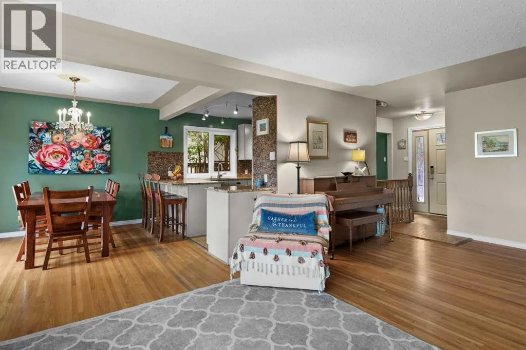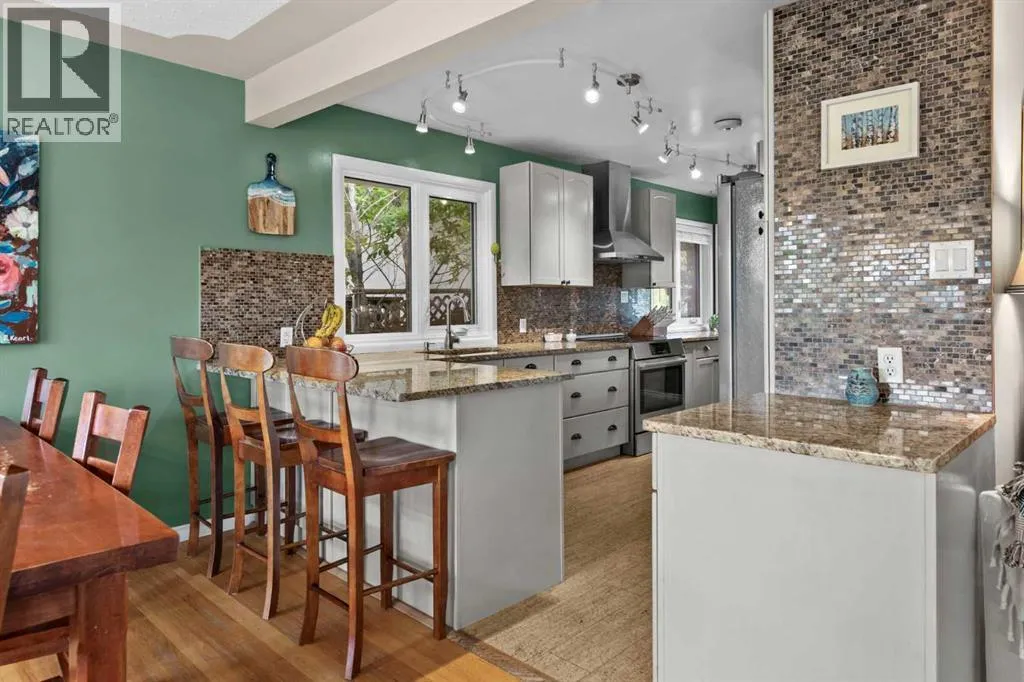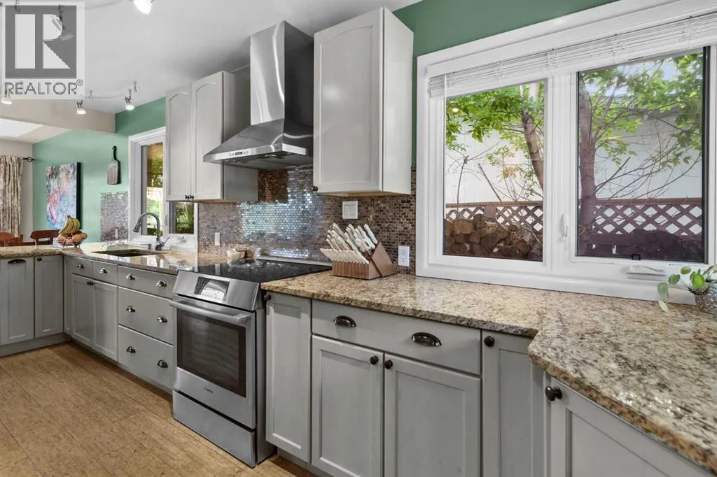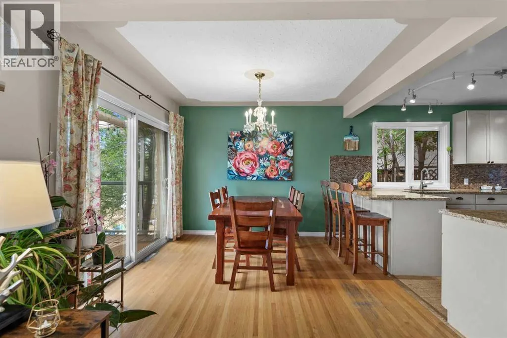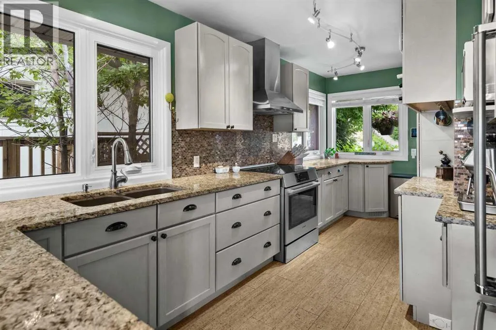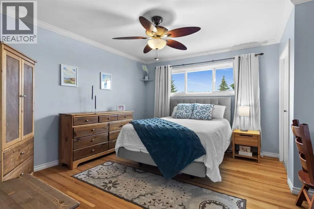 WE'RE BACK AND BETTER THAN EVER!!! NEW RETAINING WALL & SANITARY LINE!!! Tucked away on a massive, secluded pie-shaped lot, this remarkable home offers tranquility, space, and unforgettable outdoor living. The newly updated yard is both peaceful and private, while the upper deck takes full advantage of the lotâs unique elevation, offering sweeping panoramic views through sleek glass railings and covered by a timber pergola with awning. Inside, the open-concept main level has rich hardwood and cork flooring, and features a spacious living room with a corner wood-burning fireplace (with gas log lighter) and elegant decorative ceilings. The large walk-through kitchen boasts granite counters, stainless steel appliances, a coffee/wine bar, and breakfast barâflowing seamlessly into the dining room and out to the upper deck. The lower level impresses with soaring 10' ceilings, easy maintenance tile flooring, and flexible recreation and family room areas. With six bedrooms, this home offers incredible versatility for families, guests, or work/school from home. Entertain or relax on the walk-out patio complete with built-in swing set and terraced gardens. The outdoor living continues on the rooftop patio above the oversized double detached garage (24'x24')âperfect for a greenhouse, lounge, or play area. A second, extra-deep single garage (14'x24') is attached at the front of the home. With countless thoughtful upgrades and a perfect blend of character and modern function, this one-of-a-kind property is ready to impress. (id:27476)