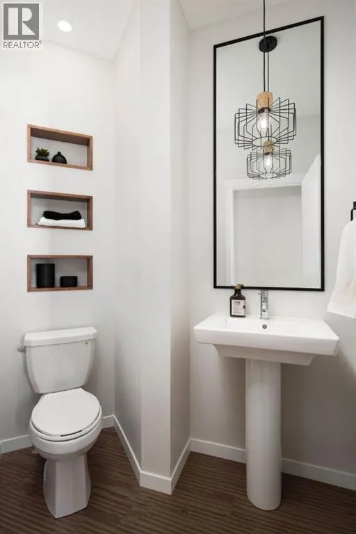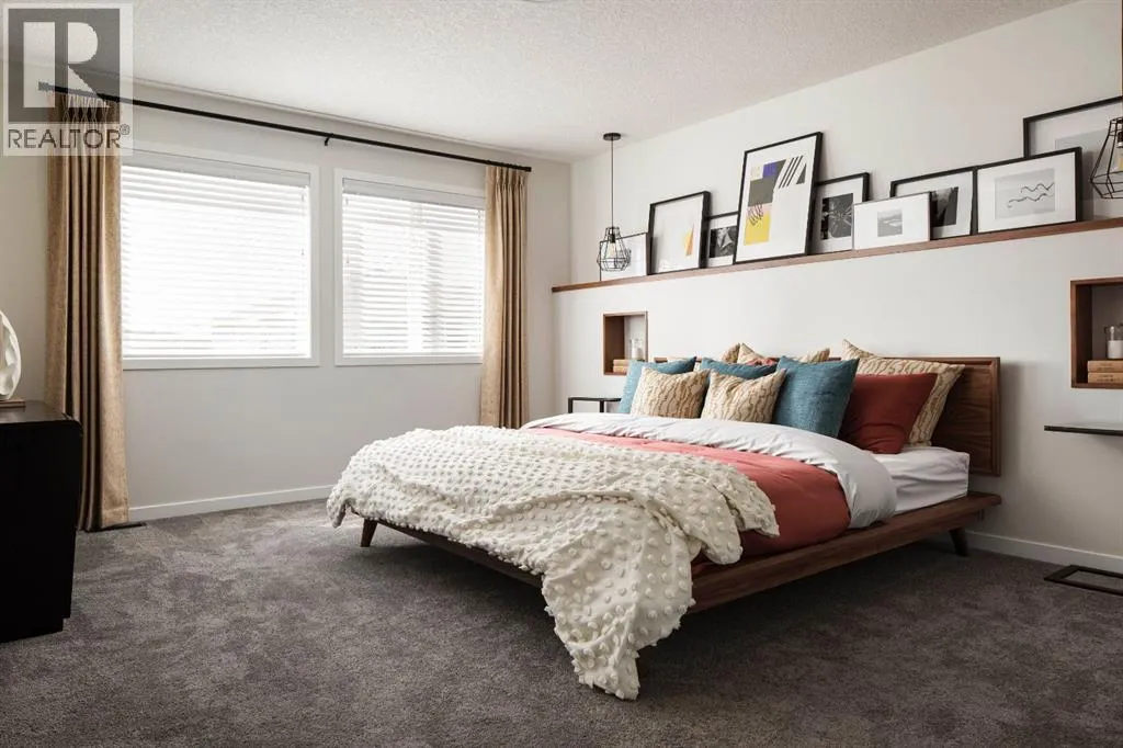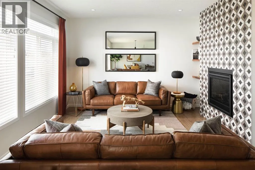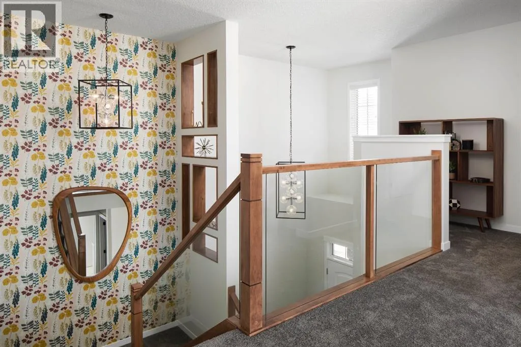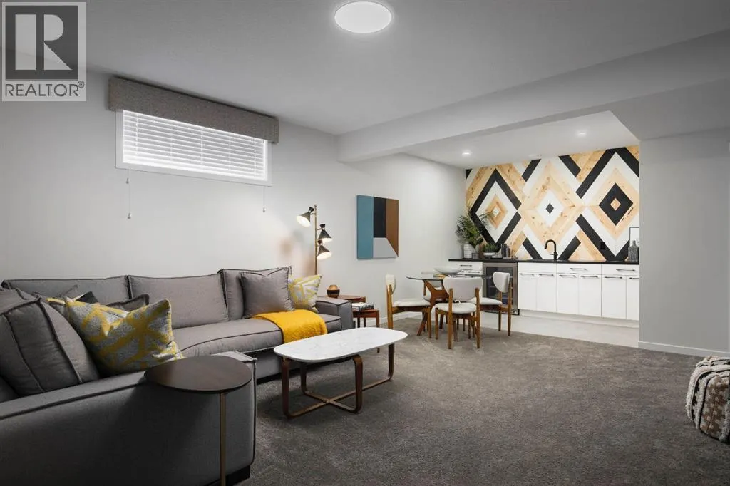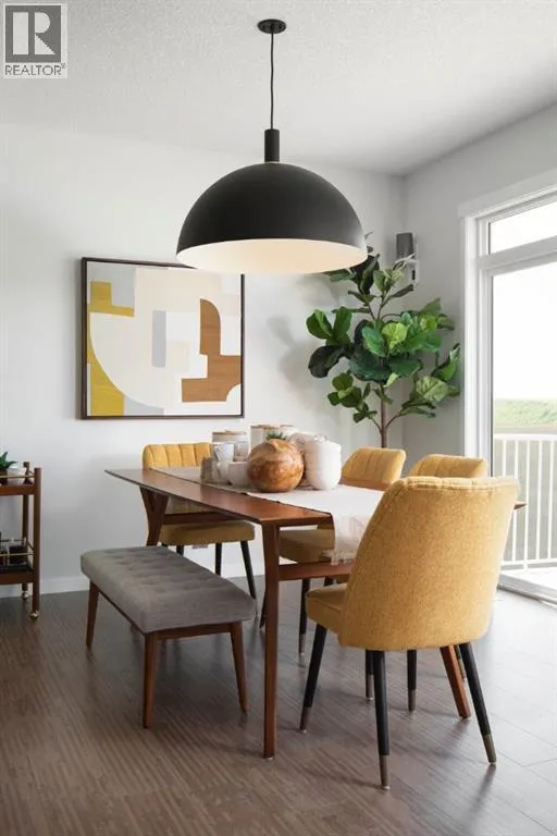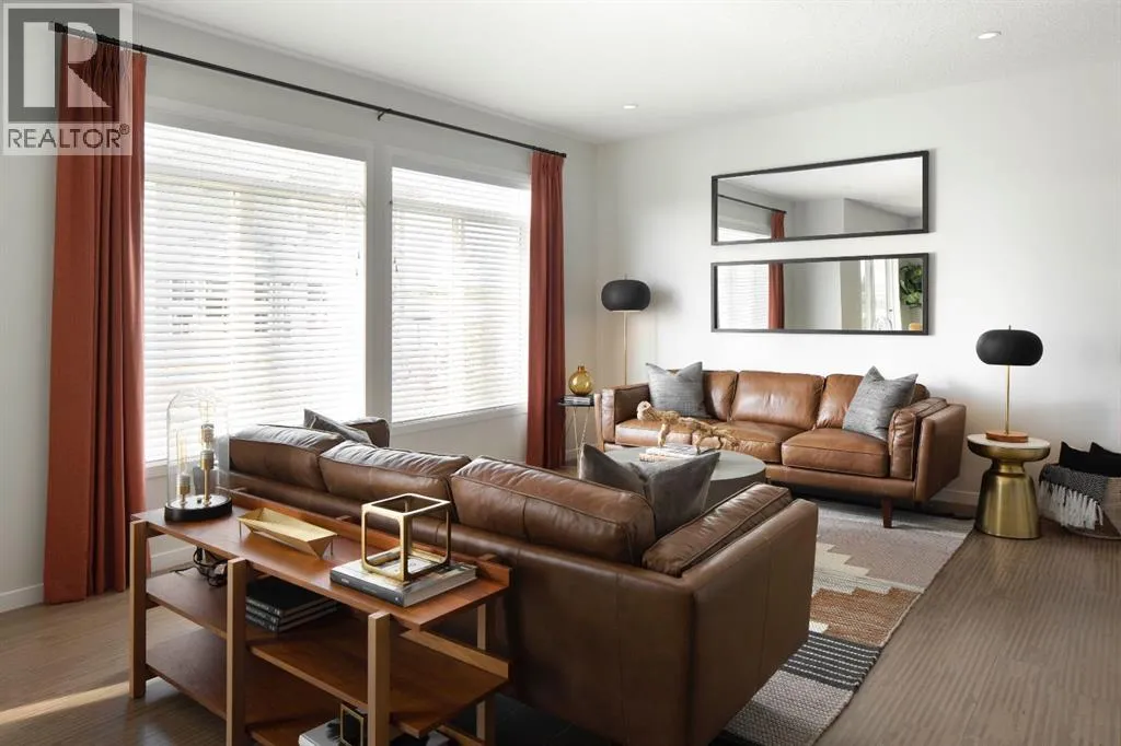 Welcome to this stunning former showhome in the desirable community of Sirocco at Pine Creek. This beautifully appointed 2,500 sq. ft. two-storey sits on a traditional lot and features a 22âx22â front-attached garage.Step inside to discover mid-century modern inspired design blended with warm, contemporary finishes. The open-concept main floor showcases rich wood cabinetry, sleek black stainless appliances, and a large central island perfect for entertaining. Adjacent to the kitchen, the dining area and living space offer seamless flow and style, highlighted by designer lighting, geometric tile accents, and custom millwork.Enjoy cozy evenings in the covered side courtyard, complete with a two-sided fireplace that can be appreciated from both indoors and out â a rare and inviting feature.Upstairs, youâll find three spacious bedrooms, including a luxurious primary suite with a 5-piece ensuite featuring glass accents, stylish tilework, and dual sinks. The primary also includes a flex lifestyle room â ideal as a nursery, home office, or personal gym. A central bonus room with loft, oversized laundry room with sink, and extra storage closet add to the homeâs functional appeal.The fully finished basement extends your living space with a large recreation area, a wet bar with fridge and abundant storage, a cozy alcove for reading or hobbies, a 4th bedroom, and a full 4-piece bath.Additional upgrades include Gemstone lighting, air conditioning, and a blend of cork, tile, and carpet flooring throughout.This remarkable home combines craftsmanship, comfort, and timeless design â ready to impress even the most discerning buyers. (id:27476)