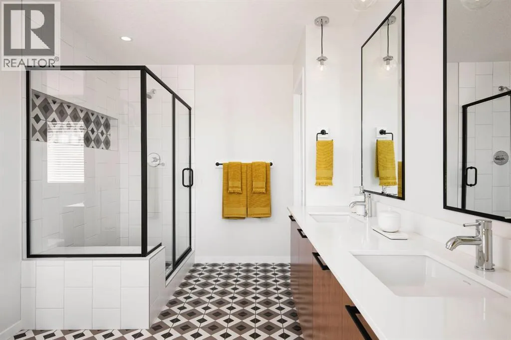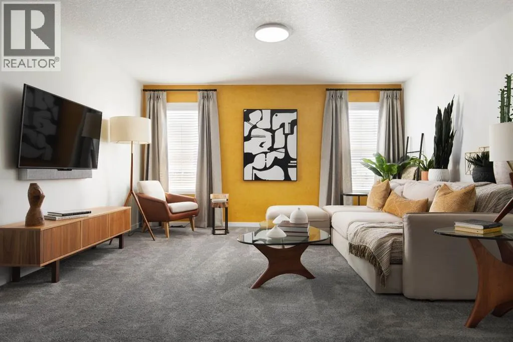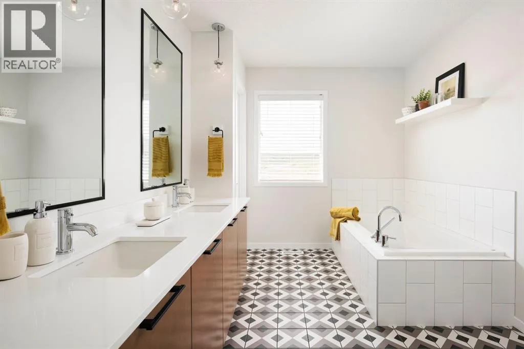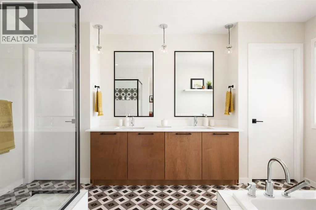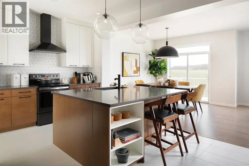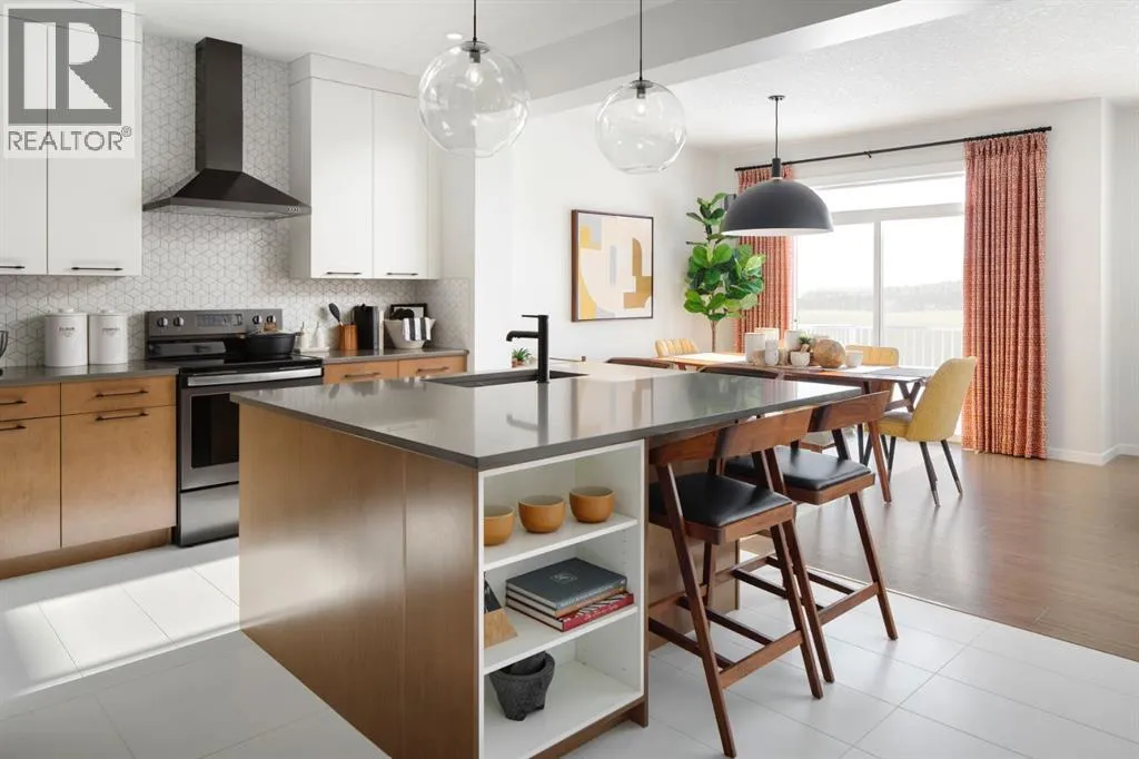 Welcome to this stunning former showhome in the desirable community of Sirocco at Pine Creek. This beautifully appointed 2,500 sq. ft. two-storey sits on a traditional lot and features a 22âx22â front-attached garage.Step inside to discover mid-century modern inspired design blended with warm, contemporary finishes. The open-concept main floor showcases rich wood cabinetry, sleek black stainless appliances, and a large central island perfect for entertaining. Adjacent to the kitchen, the dining area and living space offer seamless flow and style, highlighted by designer lighting, geometric tile accents, and custom millwork.Enjoy cozy evenings in the covered side courtyard, complete with a two-sided fireplace that can be appreciated from both indoors and out â a rare and inviting feature.Upstairs, youâll find three spacious bedrooms, including a luxurious primary suite with a 5-piece ensuite featuring glass accents, stylish tilework, and dual sinks. The primary also includes a flex lifestyle room â ideal as a nursery, home office, or personal gym. A central bonus room with loft, oversized laundry room with sink, and extra storage closet add to the homeâs functional appeal.The fully finished basement extends your living space with a large recreation area, a wet bar with fridge and abundant storage, a cozy alcove for reading or hobbies, a 4th bedroom, and a full 4-piece bath.Additional upgrades include Gemstone lighting, air conditioning, and a blend of cork, tile, and carpet flooring throughout.This remarkable home combines craftsmanship, comfort, and timeless design â ready to impress even the most discerning buyers. (id:27476)