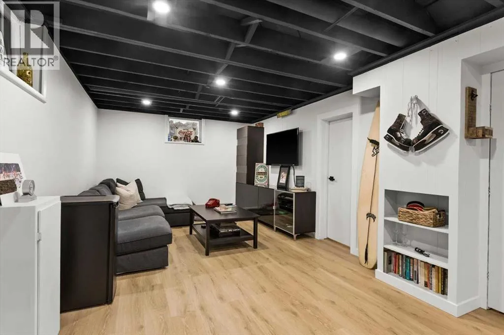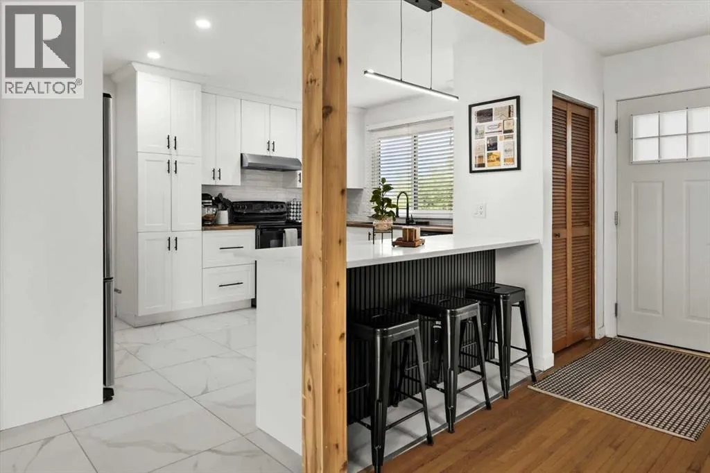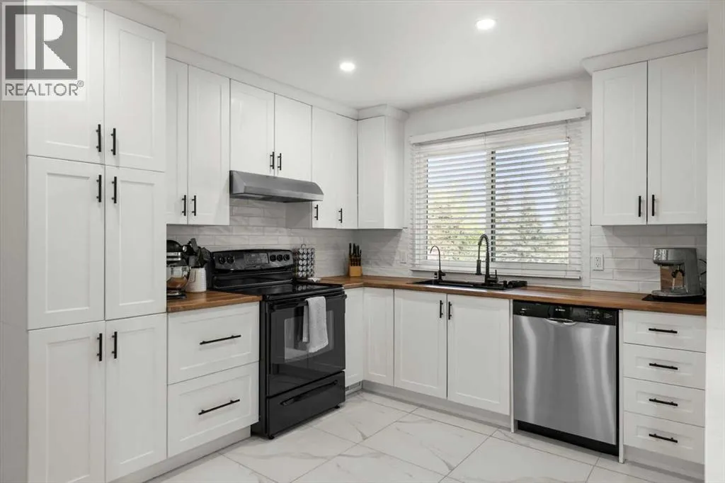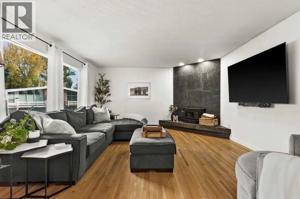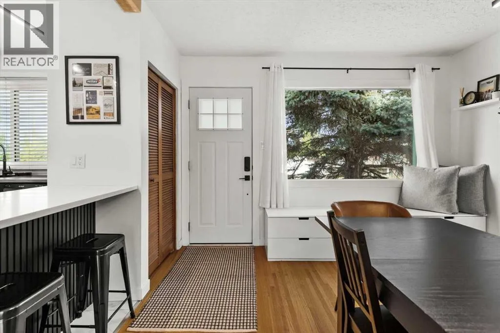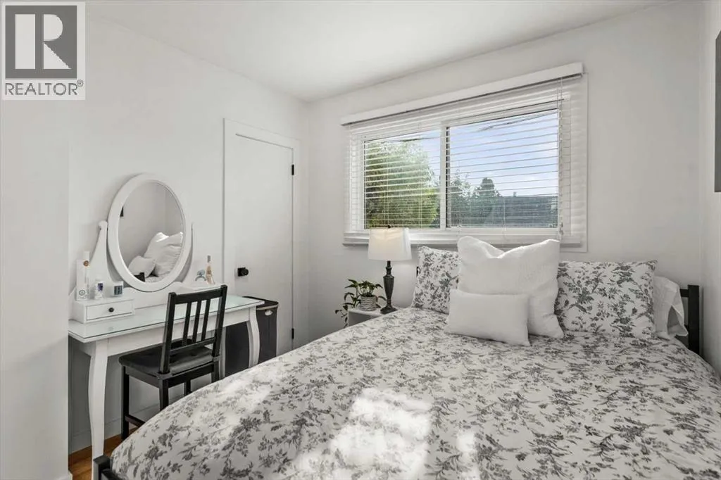 Nestled on a prominent corner lot at the top of the hill on 32nd Avenue and 52nd Street, where Montgomery meets Varsity, this thoughtfully upgraded bungalow offers the perfect blend of timeless finishes, modern updates, and everyday convenience. Just a short stroll from the Bow River Pathway, University District, and Market Mall, this location provides the perfect balance of connectivity while retaining the charm and character of a well-established, welcoming neighborhood.In the midst of a competitive market, our sellers were fortunate to secure this exceptional home after connecting personally with its previous owner, who had lovingly cared for it since 1996. Over the past three years, theyâve added their own personal touches, created countless memories, and continued the homeâs story of warmth, character, and pride of ownership. Whether you are a developer, young professional couple, or downsizer seeking main-floor living, the possibilities are endless here. With the sellersâ family needs evolving, they are ready to move on and pass this cherished home to its next chapter.From the exterior, crisp white cladding with green accents offers a fresh, inviting presence that complements the homeâs elevated setting. Upon entering, youâre welcomed by a bright entryway, while the homeâs original hardwood floors lend a touch of classic charm. Opening seamlessly into a generous dining area, this is the perfect setting for hosting dinners or enjoying late-night game nights with family and friends.To the right is the renovated kitchen, featuring marbled tile floors, white floor-to-ceiling soft-close cabinetry, butcher block and quartz countertops, and newer stainless-steel appliances. The elevated family room to the left invites you in with its large windows that fill the space with natural light and a beautifully refinished tile that borders the wood-burning fireplace.At the back of the home, a versatile flex space sits just off the dining area and kitchen, ideal as a reading nook, home office, or casual lounge. Sliding patio doors open directly from here to the expansive backyard, where newly installed sod and freshly planted aspen trees create a private oasisâperfect for hosting barbecues or simply relaxing in the sun.The main level also features an upgraded bathroom and two well-appointed bedrooms. Descending to the basement, youâll find a versatile third bedroom and full bathroom, outfitted with a Murphy bed, making it perfect as a guest retreat or workout space. The spacious laundry room offers ample room for storage and organization, while the adjoining hobby shop has long been a cherished space for the sellersâ home projects and renovations.Additional updates include a newer furnace, hot water tank, and roof, all providing peace of mind to the next owners for years to come. (id:27476)