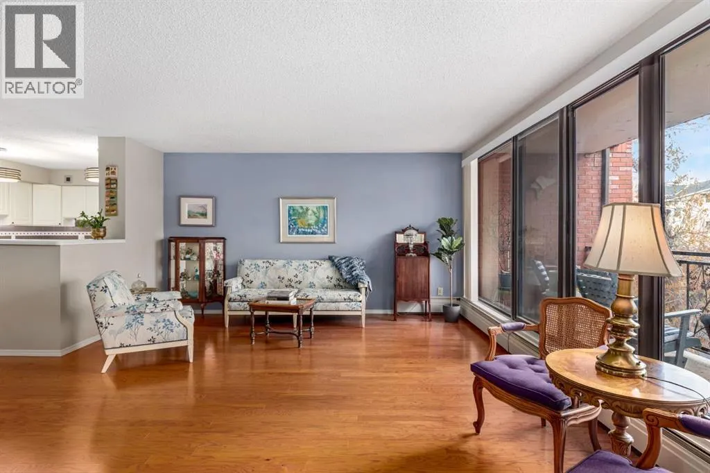 Welcome to Sunward Estates in the heart of Lower Mount Royal. This 3rd floor unit features a functional floor plan across 1400sq.ft with an open living and dining area, an updated kitchen and spacious balcony overlooking the avenue. French doors lead to a generous home office. The primary bedroom has a 4 piece ensuite, double closets and private balcony. A large second bedroom and main bathroom, in suite laundry and storage room complete the unit. Features include beautiful hardwood floors, a wall of windows, new window coverings throughout and updated lighting. This condo is in immaculate condition and move in ready. Sunward Estates is a well managed 24-unit building with newly renovated common areas, updated elevator and secure underground parkade. The building boasts low maintenance fees for the size of the unit which includes one titled underground parking space. With its proximity to the amenities of 17th Avenue and the Beltline this opportunity is too good to miss. (id:27476)