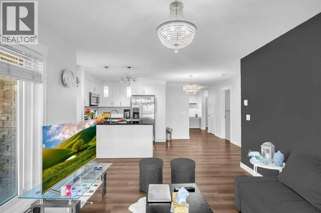 Nestled in the well-established community of Skyview Ranch, this spacious ground-level corner condo offers comfort, convenience, and contemporary living. Surrounded by parks, playgrounds, and schools, itâs an excellent choice for families, first-time buyers, or anyone looking for a peaceful place to call home. Step into a secure building with key fob and buzzer access and be welcomed by a spacious foyer with a convenient closet for storage. The open-concept layout includes an upgraded kitchen with stainless steel appliances, granite countertops, and full-height cabinetry. The dining area flows effortlessly into the bright and inviting living room, filled with natural light from large windows and a sliding glass door that opens to your private patio â perfect for relaxing or entertaining. The two bedrooms are thoughtfully placed on opposite sides of the unit for added privacy. The primary bedroom mirrored closets and a 4-piece ensuite bathroom. The second bedroom is generously sized and conveniently located next to the main 4-piece bathroom featuring a tub/shower combo. Enjoy the practicality of in-suite laundry discreetly tucked behind closed doors, along with modern light fixtures that add a stylish touch throughout the main living space.This unit also comes with one titled underground heated parking stall, keeping your vehicle protected year-round. With easy access to Stoney Trail, Deerfoot Trail, the airport, and all nearby amenities, this condo offers an ideal blend of modern comfort and everyday convenience. Book your showing today and see why this Skyview Ranch condo is a fantastic place to call home! (id:27476)