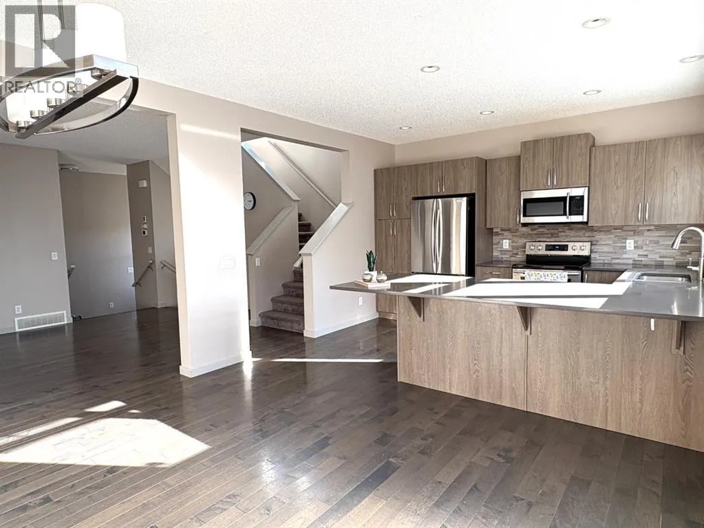 Welcome to this move-in-ready family home featuring 3 bedrooms and 3 bathrooms, with plenty of space for everyone on the top two floors. The open lower level is well laid out and ready for your ideas, complete with roughed-in plumbing for a future bathroom or wet bar.The expansive, newly fenced backyard and quiet cul-de-sac offer the perfect setting for outdoor play, summer barbecues, and privacy. With abundant windows and a southwest-facing backyard, natural light fills the home, while the well-maintained central A/C keeps it cool through the summer. Recent upgrades include brand-new shingles, siding, and gutters installed in summer 2025.The open-concept main floor features a welcoming front entry and spacious great room with beautiful antique-grey laminate flooring throughout. A designated dining area adjoins the functional kitchen, which offers a large flush-height eating bar, quartz countertops, pantry, and upgraded stainless-steel appliances including a refrigerator, smooth-top stove, built-in dishwasher, and over-the-range microwave.Upstairs, the primary suite spans the full length of the home and includes a 5-piece ensuite with a soaker tub, separate shower, and generous walk-in closet. Two additional bedrooms share a main bathroom, while the front-facing third bedroom features beautiful, oversized windows that let in an abundance of natural light. The upper level also includes a convenient laundry area and a spacious central bonus room. An insulated double attached garage with high overhead clearance provides comfort and extra storage through Calgaryâs winters You will also love that your new homes with high efficiency triple pane windows.. Come see this hidden gem for yourself. Community: Evanston broke ground in 2007 and has quickly grown into one of the most desirable communities in Calgaryâs northwest. Surrounded by green space and natural beauty, itâs nestled near Symons Valley and West Nose Creek, with views toward Country Hills Golf Course. Wit h Stoney Trail bordering the south side, getting around is easy whether youâre heading downtown, to the airport, or out to the Rockies.Evanston offers the best of both worlds: a newer community with established amenities. Residents enjoy nearby parks, schools, and everyday conveniences all within minutes. Families appreciate being able to walk or drive a short distance to schools, shops, and playgrounds.Three schools currently serve the area, Kenneth D. Taylor School (K -4), Our Lady of Grace (Kâ9), and St. Josephine Bakhita School (Kâ6). Evanston Heights School (CBE, Grades 5â9) is set to open in 2026. Evanston Towne Centre offers retail, dining, fitness, and banking options, including a FreshCo grocery store and Shoppers Drug Mart pharmacy.The community features over 6.3 km of pathways connecting 16 parks and seven playgrounds. Come see why so many people love calling Evanston home. (id:27476)