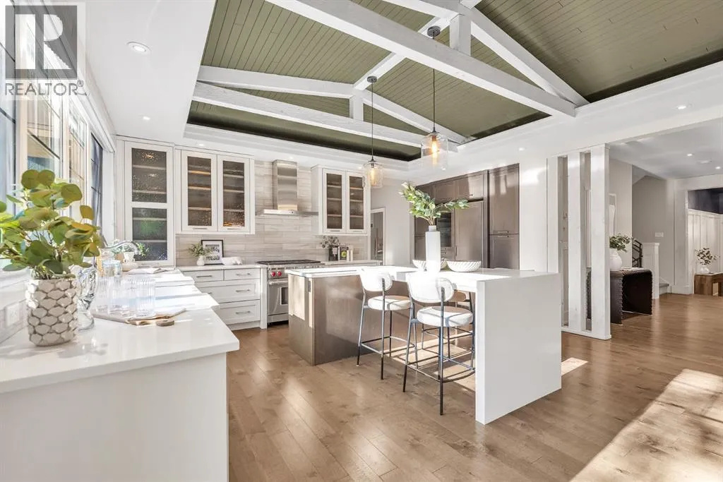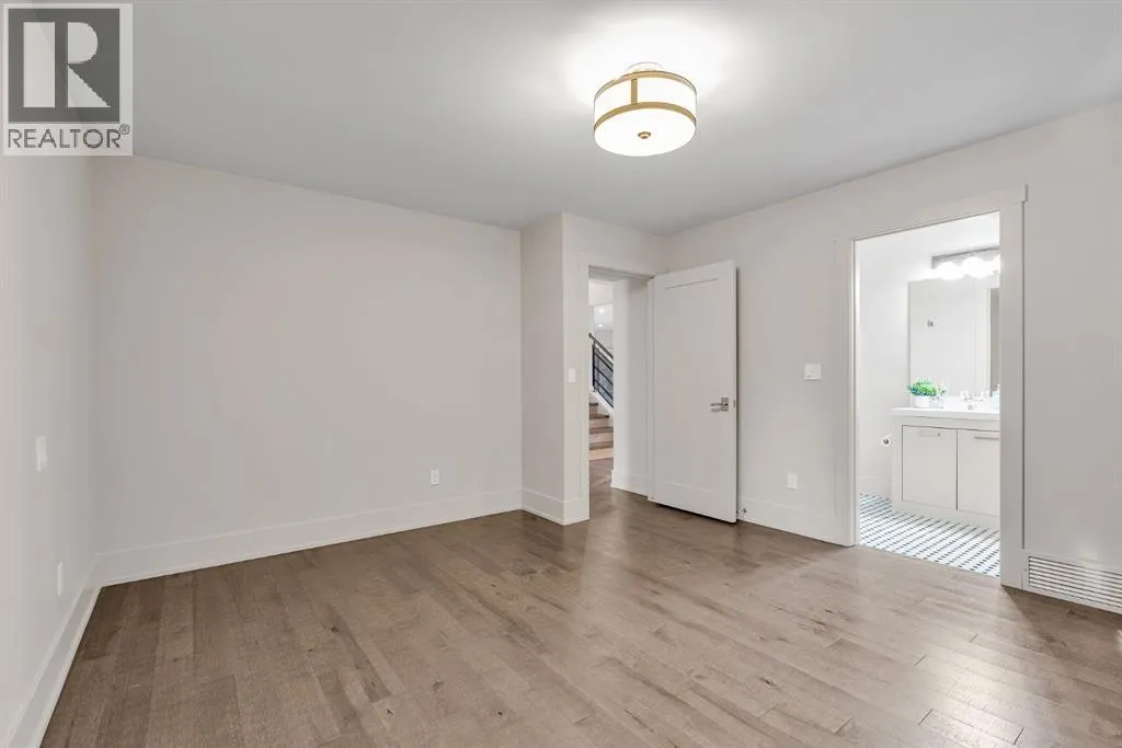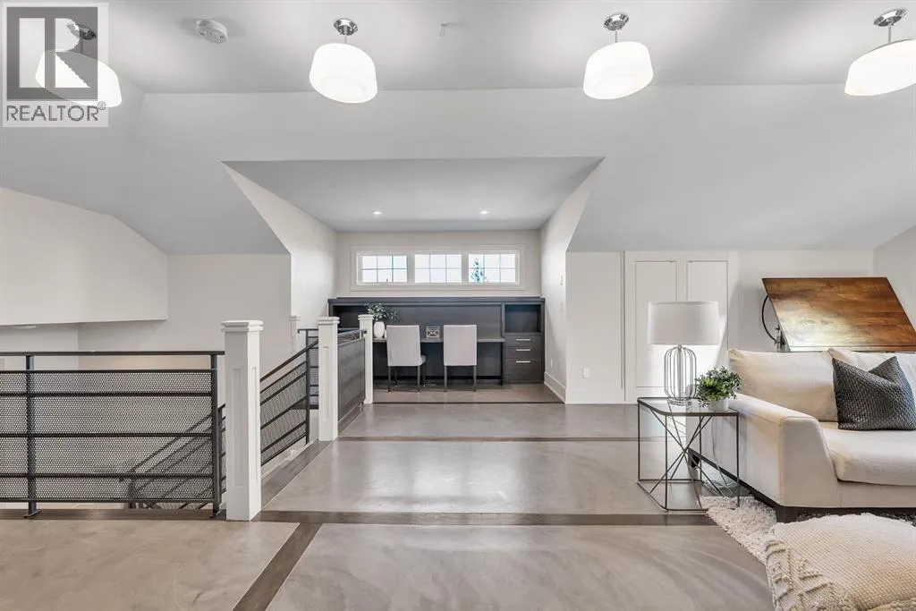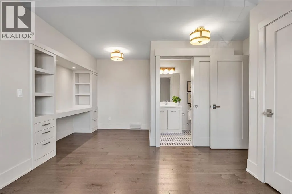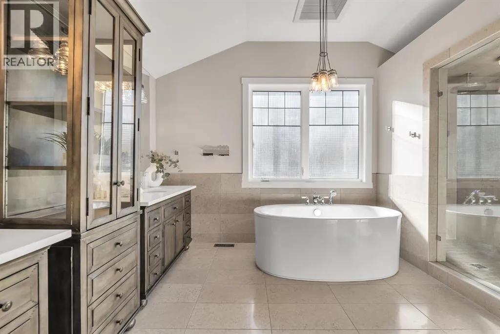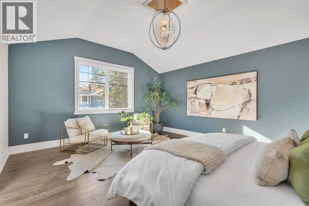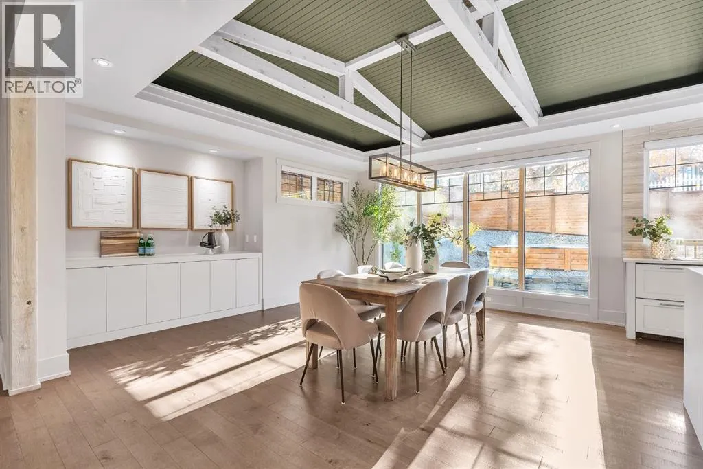 A rare offering on Britannia Drive, this exquisite estate captures the essence of modern luxury with over 4,600 square feet above grade of thoughtfully designed living space. Every element has been curated with precisionâfrom its statement steel entry door to the seamless flow of sun-filled interiors overlooking the south backyard.The main level blends warmth and sophistication through its open design and natural textures. Expansive windows flood the home with light, highlighting brushed cashmere hardwood floors, exposed timber accents, and rich custom millwork. The kitchen is a showpiece in both style and function, featuring professional-grade appliances, Caesarstone countertops, an oversized island, and a butlerâs pantry with stand-up freezer. The adjoining dining and great room, framed by a gas fireplace, invite effortless entertaining and relaxed everyday living. A well-appointed main-floor office with built-ins provides privacy and focus.The second level is dedicated to rest and retreat. The primary suite features dual walk-in closets, a spa-inspired ensuite with steam shower and freestanding tub, and a private balcony that welcomes morning light. Two additional bedroomsâeach with ensuite baths and custom walk-in closetsâoffer comfort and independence. A bonus room with a gas fireplace opens to a front balcony with downtown views, while an additional flex space adapts perfectly to a home office, playroom, or study nook.The third floor is an adaptable hideaway ideal for guests, teens, or a media lounge, complete with a built-in bar and Murphy bed desk.The fully developed lower level enhances the homeâs entertaining appeal, offering heated concrete floors, a glass-enclosed wine cellar, a wet bar, and an expansive recreation area. A private living quarters with kitchen, laundry, and full bath provides private accommodation for a nanny, extended family, or guests.Outdoors, the south-facing backyard is designed for easy enjoyment with multi-level decks and newl y added turfâperfect for low-maintenance living.Car enthusiasts will appreciate the heated, oversized triple garage with capacity for up to five vehicles when equipped with lifts, offering ample space for storage and collection.Additional features include three fireplaces, concrete stair treads, 9- and 10-ft ceilings, a hidden loft above the laundry room, and exceptional built-ins throughout.Perfectly positioned near the Elbow River pathways, The Glencoe Club, Calgary Golf & Country Club, top schools, and downtownâs finest amenities, this Britannia Drive residence offers an extraordinary lifestyle in one of Calgaryâs most distinguished settings. (id:27476)
