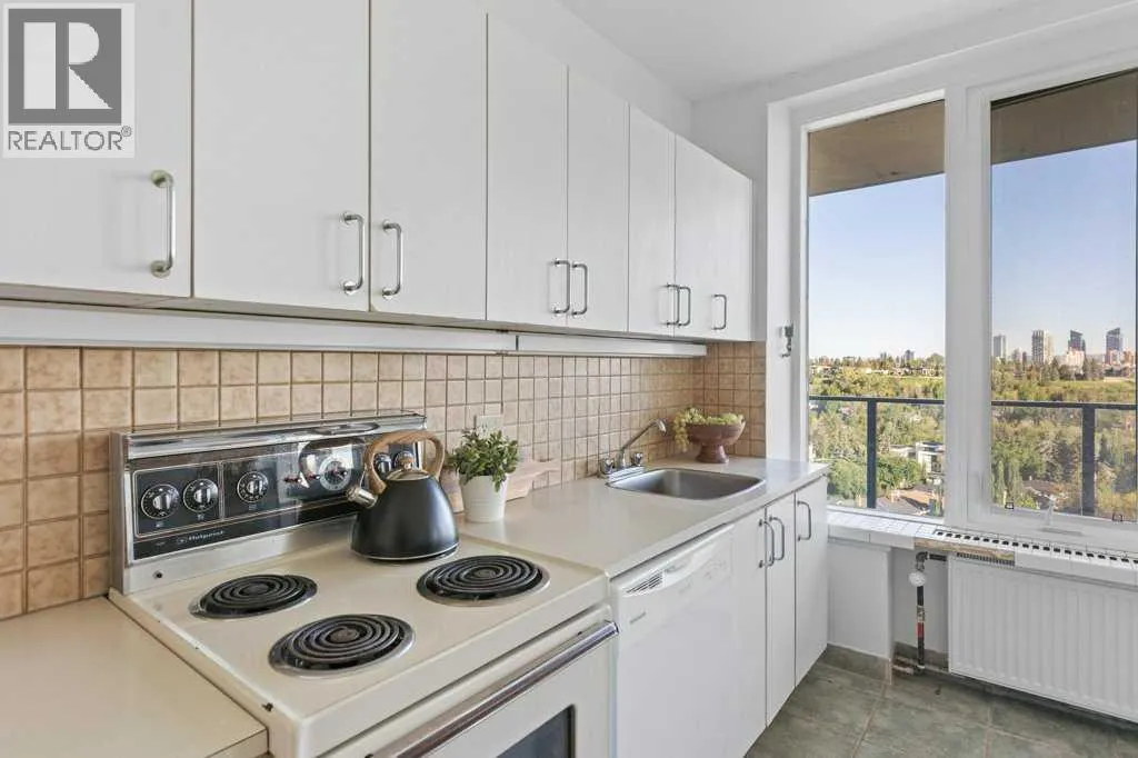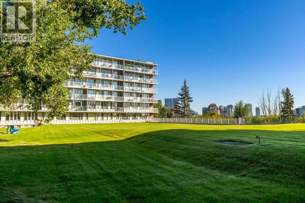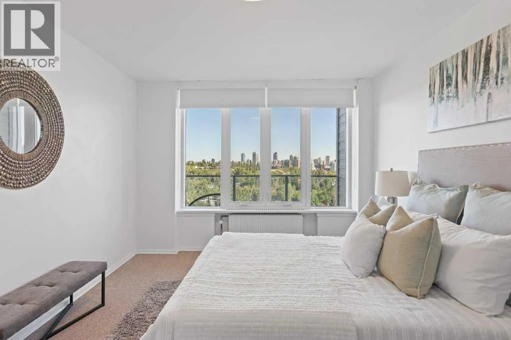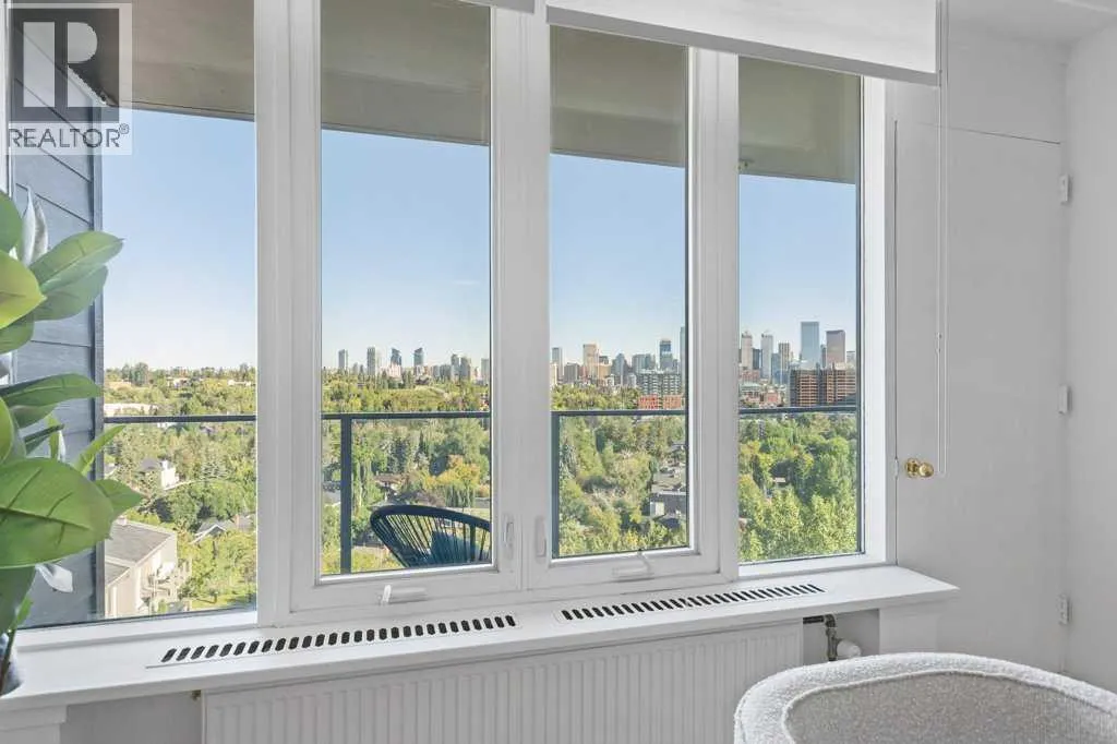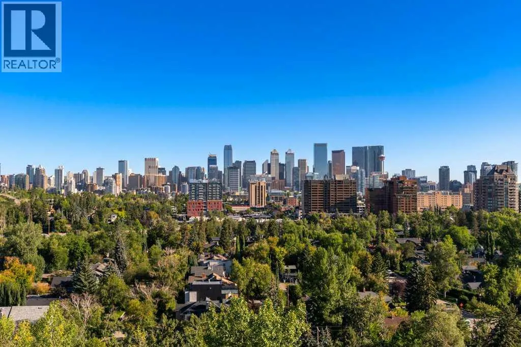 **OPEN HOUSE: SUNDAY NOV 2 | 2:00-4:00PM** Penthouse Living with Unmatched Views | Welcome to Unit 708 in Renfrew Houseâa rare penthouse offering perched high above Calgary in the prestigious Rideau Park community. This top-floor, 2-bedroom, 1-bathroom residence offers the perfect balance of timeless elegance, everyday functionality, and untapped potential for luxurious customization.Step inside to a sprawling open-concept living and dining area, bathed in natural light. The space invites both relaxation and entertainment, with seamless access to your private, full-length balcony showcasing uninterrupted panoramic views of the downtown skyline, the river valley, and even the distant Rocky Mountainsâa front-row seat to Calgaryâs most spectacular sunsets.The galley-style kitchen is fully functional as-is, yet holds limitless potential. Open it up to create a gourmet showpieceâideal for hosting gatherings, late-night conversations, or quiet mornings with a view.The primary bedroom easily accommodates king-sized furnishings and offers tranquil retreat-like comfort. The second bedroom is a versatile spaceâperfect as a guest room, home office, or creative studio, complete with breathtaking sightlines that make even work-from-home days feel luxurious.Additional features include secure underground heated parking, a generously sized storage unit, and access to a well-managed, impeccably maintained building with serene green surroundings and a resort-like outdoor pool just steps away.Located mere minutes from Mission, 4th Street dining, the Elbow River pathways, and downtown Calgary, this penthouse marries the quiet elegance of Rideau Park with the pulse of urban living. (id:27476)