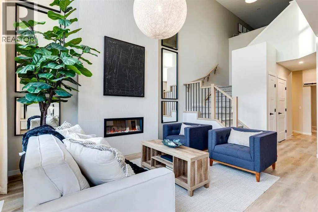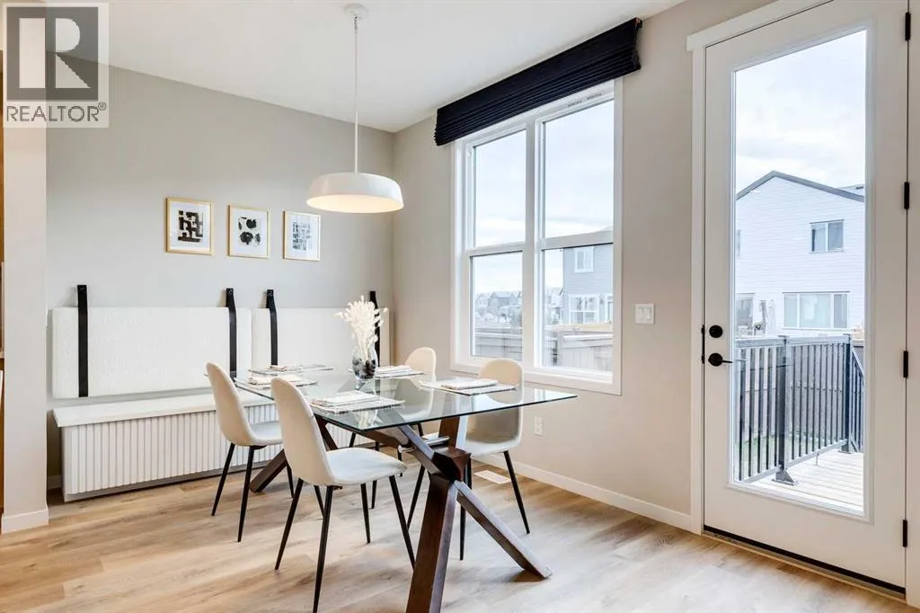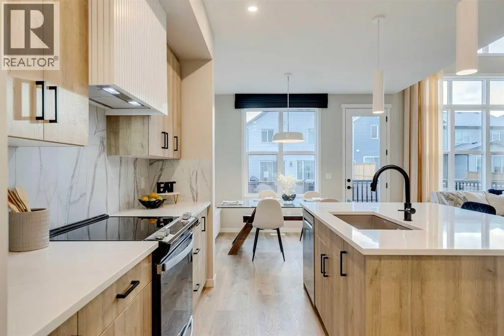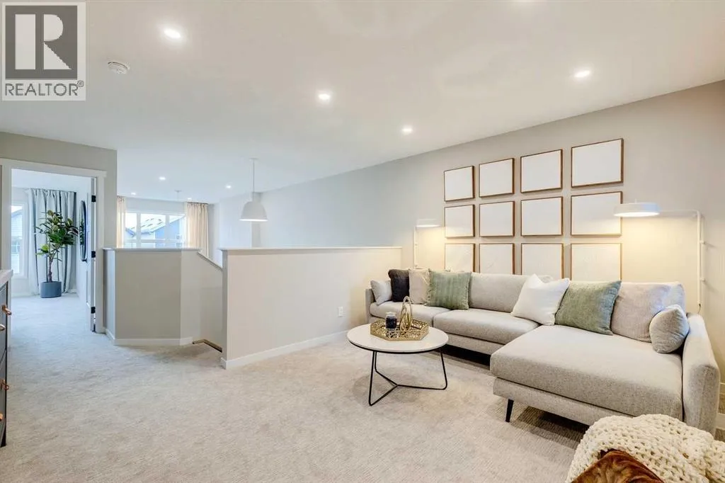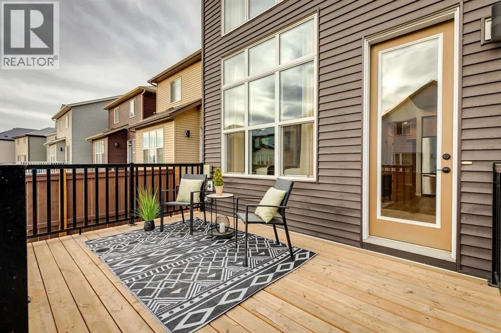 Open House Sunday Nov. 16th 1-3 pm Welcome to this exceptional former showhome, in the award-winning community of RangeviewâCalgaryâs first garden-to-table community. Surrounded by scenic wetlands and ponds, Rangeview offers a lifestyle rooted in connection to nature, with orchards, greenhouses, and community gardens that deliver fresh produce right to residents through its unique HOA garden delivery program. New home warranties included with this home.This stunning floorplan offers over 2,100 sq. ft. of refined living space with over $90,000 in upgrades, all the benefits of building a brand-new home without the stress of the building process, landscaping done, ready to move in. Available for immediate possession, move in before the holidays - think of the Christmas tree in main floor living room! It features triple-pane windows for superior energy efficiency, R50 insulation, a 96%+ high-efficiency furnace, low-flow fixtures, and advanced framing with a continuous vapor barrier. Each home is EnerGuide modelled and tested, ensuring verified performance, comfort, and peace of mind.The open-to-above lifestyle room impresses with soaring ceilings and a striking floor-to-ceiling tiled electric fireplace. The kitchens stunning ceiling-height cabinets, a custom wood clad hood fan, quartz countertops, and Whirlpool stainless steel appliances, with a walk-through pantry connecting to the mudroom for added convenience. The dining area with built-in bench seating opens onto a fenced backyard and deck with skirting, perfect for gatherings.A main floor office/ Flex room with barn door. Upstairs offers three bedrooms, a bonus room, and laundry with quartz counters. The primary suite features a massive window, walk-in closet with custom shelving, and a 5-piece ensuite with two sided 10mm glass shower, floor-to-ceiling shower tile, and an extended soaker tub and enclosed water closet A secondary bedroom includes a feature wall and walk-in closet. Superior finish standards incl ude 9â foundation walls, hard-surface flooring, and with a Wi-Fi Ring doorbell, USB/USB-C ports, and smart garage opener. This home also includes extra pot lights throughout, spindle rail staircases, air conditioning, in-ground irrigation, Gemstone lights, a painted double garage, upgraded carpet underlay, and window coverings. The undeveloped basement is ready for your ideas, designed for a future development or legal suite with a side entry already in place.Ideally located near Seton, Auburn Bay, and Mahogany, with quick access to Stoney Trail and Deerfoot Trail, this home combines energy efficiency, craftsmanship, and community living. Built by Hopewell Residential, a Certified Master Builder with over 30 years of award-winning experience, this Rangeview home delivers a lifestyle built on quality, comfort, and sustainability. (id:27476)