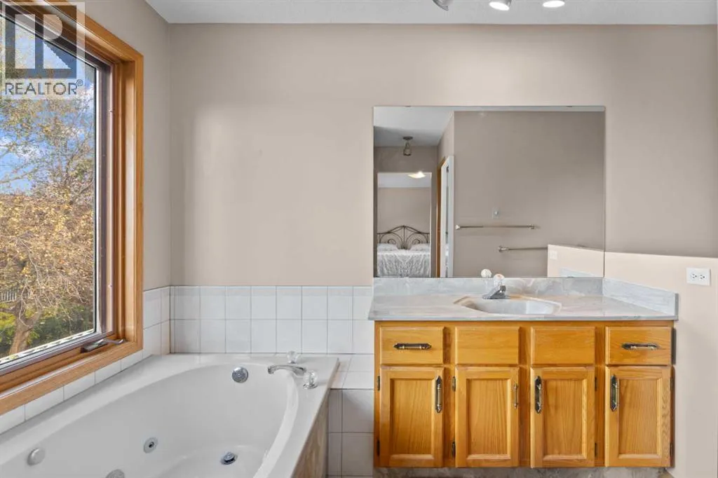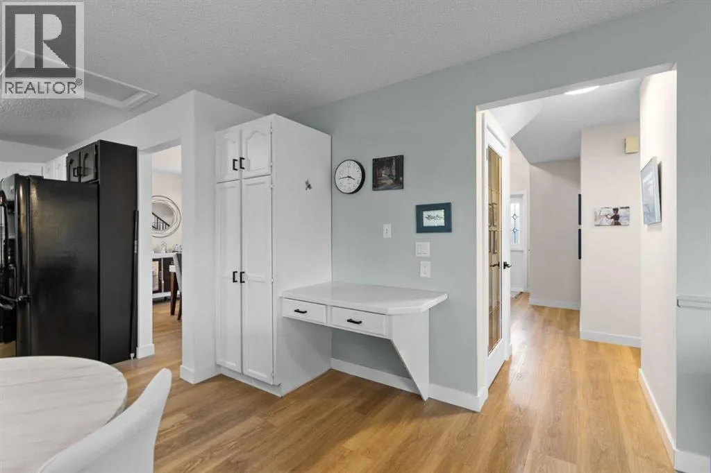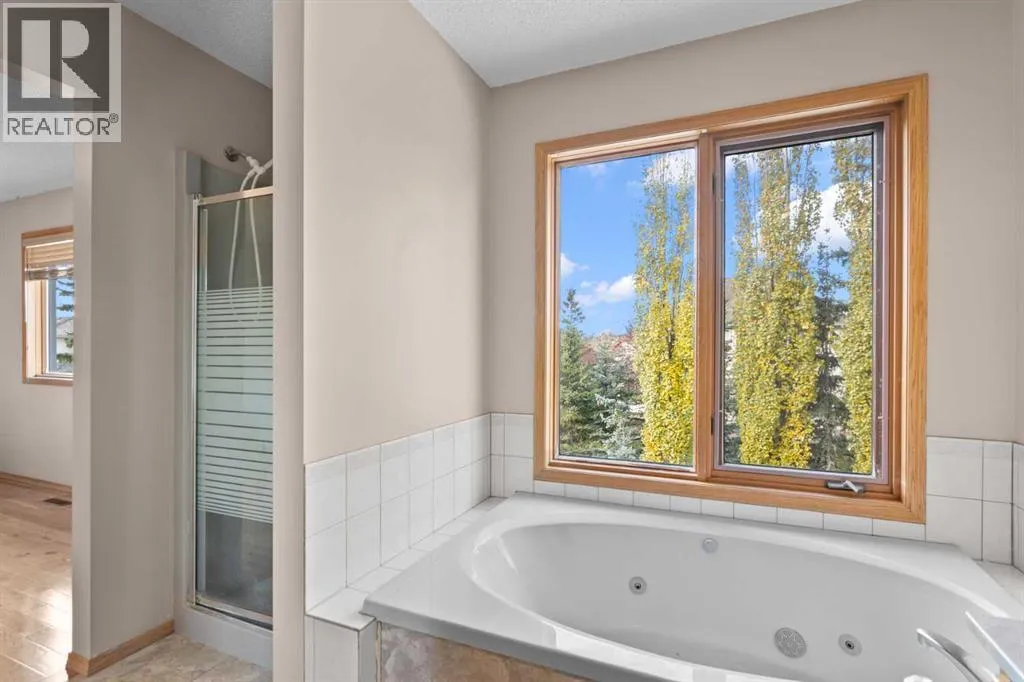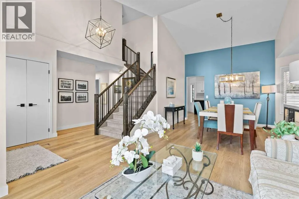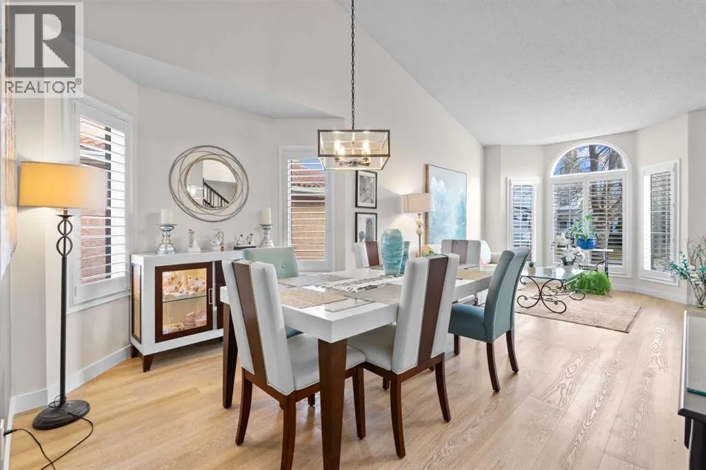 Welcome to this beautifully kept 4-bedroom family home tucked away in one of NW Calgaryâs most sought-after estate neighbourhoods, the Hamptons! This place has the perfect mix of comfort, space, and convenience, it is ideal for families who love a great community vibe.As you walk in, youâll notice the high vaulted ceilings and the eye-catching, updated staircase that really sets the tone for what this home has to offer. You start with a bright formal living room, where stylish plantation shutters add a touch of elegance. Right next door, the formal dining area is adorned with a lovely bay flanking window and tons of natural light. Vinyl plank flows through the entire main level, bringing a sense of style and ease of care that everyone can appreciate.The kitchen features two-tone cabinets, durable wrapped arborite counters, a black granite sink, and a sleek black appliance package. There's also a small workstation for holding your paperwork and laptop. The kitchen also includes a casual eating nook that leads to a cozy, sunken family room. The family room has a wood-burning fireplace with gas assist and is flanked with built-in bookshelves. Finally, just outside the eating nook you have access to the covered deck and the west facing backyard. This main living area is a perfect spot to relax with the family or entertain your guests, whether it is a BBQ in the summer or a cool winter day.The main level also includes a handy 2-piece powder room, laundry area, and a private office with its own unique shower â great for guests or even your a place to clean up your pets!The updated winding staircase takes you upstairs where you will find the spacious west facing primary bedroom. The attached primary suite includes a walk-in closet, separate shower and a large-jetted tub. here are also two additional good sized bedrooms and a bathroom, so this makes for a great home for your growing family. The fully finished basement adds even more living space, with a big re c area, a family room, a fourth bedroom (non-egress window), and plenty of storage.Outside, the sunny west-facing backyard is perfect for kids, pets, or weekend barbecues â lots of space to play and unwind.Quick access to Stoney Trail means you are only minutes from access to the highway out to the mountains, Cross Iron Mills or the airport. Located just steps from parks, tennis courts, walking paths, and close to schools, shopping, and amenities, this home really has it all. (id:27476)