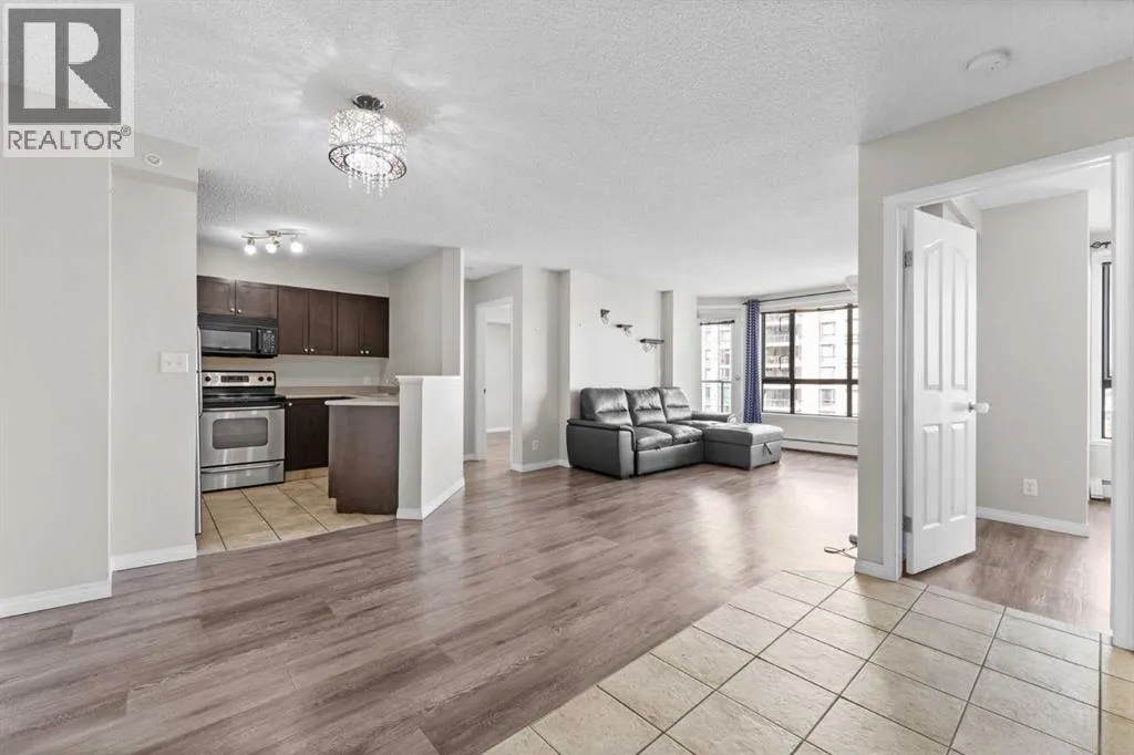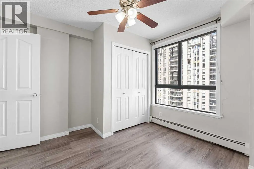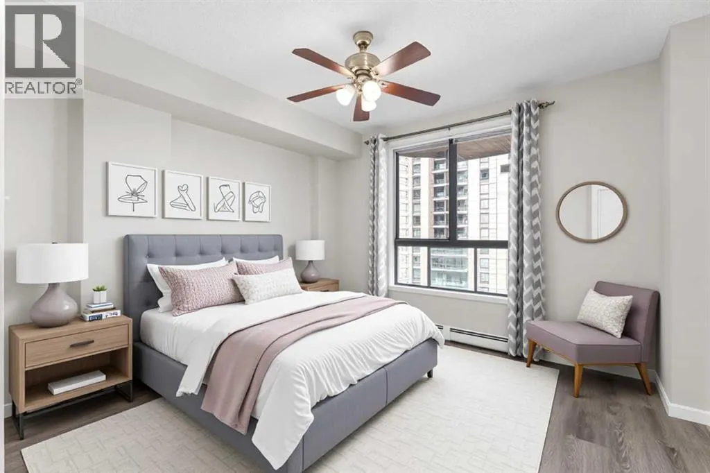 Welcome to your ideal downtown retreat in the sought-after West End of Calgary! This bright and spacious 2-bedroom, 2-bathroom condo offers the perfect balance of city convenience and riverside tranquilityâan excellent fit for young professionals, first-time buyers, or small families.Prime Downtown Location:Just steps from the Bow River pathways, Princeâs Island Park, and Eau Claire Market, with quick access to LRT transit, downtown offices, boutique shopping, and trendy restaurants. Whether itâs a morning jog along the river or an easy walk to work, youâll love the unbeatable accessibility this location provides.Smart & Functional Layout:The open-concept floor plan offers excellent flow and privacy, with bedrooms positioned on opposite sides of the unit. The primary suite includes a walk-through closet and a private 4-piece ensuite, while the second bedroom is spacious and conveniently located next to another full bathâperfect for guests, a home office, or growing families.Comfortable, Modern Living:A bright living area extends to a private balcony with peaceful river views (complete with discreet bird-proof netting), ideal for your morning coffee or evening unwind. The kitchen is well-equipped with ample cabinetry and counter space, and the adjacent dining area makes entertaining easy.Added Value & Amenities:Enjoy titled underground parking, in-suite laundry, and access to a fully equipped gym in this well-managed, pet-friendly building. Condo fees include all utilities, offering affordable and stress-free living.If youâre seeking a quiet downtown lifestyle with nature at your doorstep, this home delivers both comfort and convenience in one of Calgaryâs best downtown locations. (id:27476)