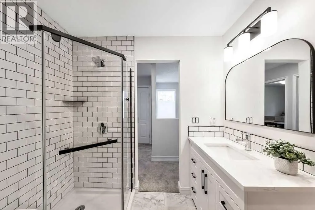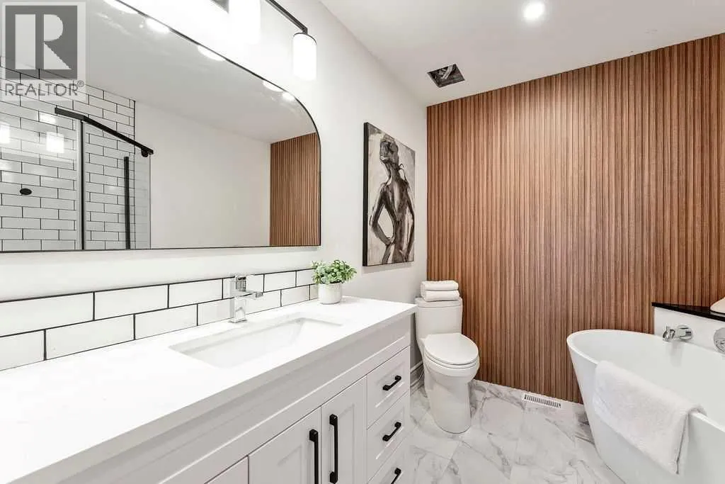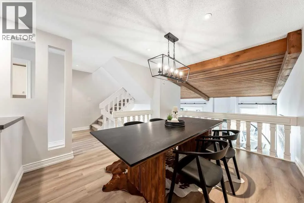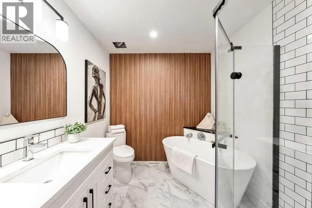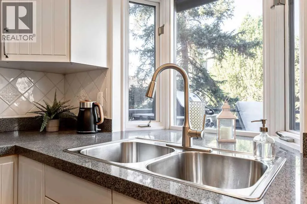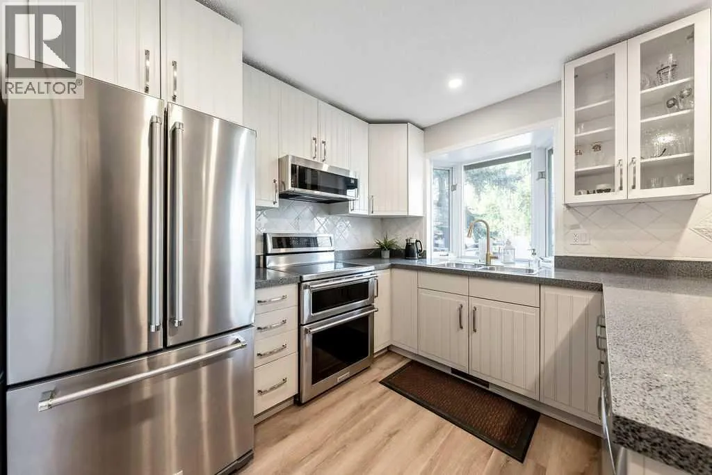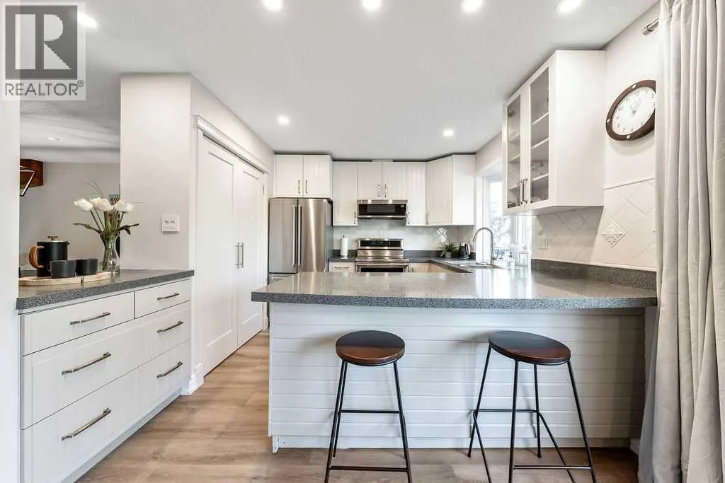 If youâve been searching for an impeccably planned, beautifully renovated, and move-in-ready end unit, this might be the one!This stunning four-level split townhome offers over 1,900 sq. ft. of developed living space, four bathrooms, a double attached heated garage and triple pane windows throughout â all in a prime Oakridge location. With over $75,000 in recent renovations and upgrades, every inch of this home has been thoughtfully updated for modern comfort and style.Main LevelStep into a spacious and welcoming foyer featuring a striking feature wall and durable natural slate flooring. This level also includes a convenient three-piece bath and laundry area.Second LevelThe impressive living room showcases vaulted cedar ceilings, a cozy gas fireplace, and brand-new carpeting throughout. Oversized south-facing patio doors and an additional large window flood the space with natural light. The private fenced yard and patio offer an inviting outdoor retreat â perfect for summer entertaining.Third LevelThe newly installed luxury vinyl plank flooring flows through a formal dining area overlooking the living room, ideal for hosting family and friends. The upgraded kitchen features quartz overlay countertops, a peninsula eating bar, and a large custom pantry with beautiful doors. The coffee bar/pass-through to the dining area adds both function and charm. A bright breakfast nook opens onto a 16âx 20â deck through another large sliding door, creating an easy indoor-outdoor flow. A newly renovated two-piece bath completes this level.Upper LevelRetreat to a spacious primary bedroom with a new walk-in closet and a luxurious four-piece ensuite featuring double sinks and an oversized tiled walk-in shower. Two additional generous bedrooms provide ample space for family or guests. The show stopping spa inspired four-piece bathroom boasts a free standing soaker tub, corner shower, feature wall, barn door, large vanity and recessed lighting â pure relaxation at home.Lo wer LevelThe family/media room is perfect for movie nights or casual gatherings and includes an upgraded dry bar with cabinetry, countertop, and a recessed beverage fridge space. Thereâs also room for a home gym, plus well-lit crawl-space storage for all your extras.Location & LifestyleOakwood Lane is a well-managed, pet-friendly complex in an unbeatable location. Walk through the back gate and youâre just minutes from Oakridge Co-op, Boston Pizza, A&W, yoga studios, and professional services. Outdoor lovers will appreciate easy access to South Glenmore Park, the Southland Leisure Centre, and an huge off leash dog park only a 5 minute walk away. Walk to nearby schools, and enjoy shopping at Glenmore Landing, Southcentre, and Shops (and cheap gas!) at Buffalo Run. Plus, youâre less than an hour from the mountains!Welcome home to comfort, style, and convenience â in this all in one exceptional Oakridge property. (id:27476)