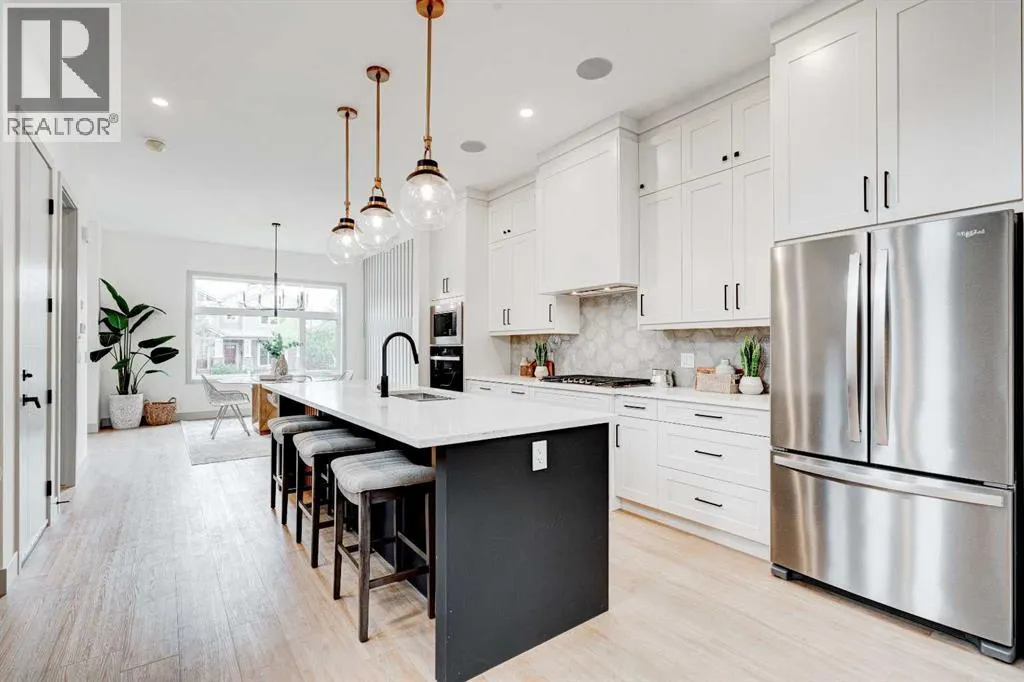 ** 10K BUYER CASHBACK BONUS - INQUIRE FOR MORE DETAILS ** This modern semi-detached home is a stunning blend of thoughtful design and functionality, perfect for anyone looking to elevate their living experience! Located in the heart of Bowness, it offers the perfect mix of urban convenience and peaceful surroundings. Outside, this home has serious curb appeal, w/ a sleek black and white Smartboard exterior that pairs beautifully w/ carefully designed landscaping, and has a 10/10 location next to the park! Out back, thereâs a private patio ready for summer BBQs, complete w/ a gas hookup to make entertaining a breeze. Inside, the space is bright and airy w/ 10-ft ceilings on the main floor. The kitchen is a dream for anyone who loves to cook or entertain, w/ custom two-tone shaker cabinets, quartz countertops, and a massive island that acts as both a centrepiece and functional workspace. High-end stainless-steel appliances, including a gas cooktop and built-in oven-microwave combo, make it as practical as it is beautiful, along w/ the large walk-in pantry for all your storage needs. Enjoy everyday meals and family get-togethers in the dedicated dining room w/ a designer chandelier and stunning feature wall, then spread out into the open-concept living room, which features a stunning gas fireplace w/ crystal glass details. Rounding off the main floor is a lovely custom mudroom w/ a built-in bench and private powder room perfect for guests and everyday use. Upstairs, the primary suite is an absolute sanctuary, w/ oversized windows, an extra-large walk-in closet, and a 5-pc ensuite that acts as your own private spa, w/ a freestanding soaker tub, a walk-in shower w/ rain showerhead, dual vanity, and a full-height mirror w/ inset lighting that adds a touch of luxury. Two additional bedrooms on this floor are spacious and bright, w/ quick access to the main bathroom and a convenient upper-level laundry room. The basement is fully finished and includes a LEGAL SUITE (subject to permits & approval by the city) w/ its own private entrance. Itâs a fantastic option for generating rental income, hosting long-term guests, or even creating a separate space for family members. The suite features a full kitchen, a cozy living area, two bedrooms, and a full bathroomâall finished w/ durable luxury vinyl plank flooring for a sleek and modern look. Throughout the home, youâll find matte black finishes on all hardware and stylish LED pot lights. Itâs also ready for easy upgrades, w/ rough-ins for air conditioning already in place. And the location? Couldnât be better! Youâre next to a park with a skating rink, minutes from the beautiful trails and lagoon at Bowness Park, a local favourite for outdoor activities. The neighbourhood is packed w/ amenities, including charming cafes, boutique shops, and more. For families, there are fantastic schools and playgrounds nearby, including Bowness High School, and commuting is simple w/ quick access to Stoney Trail and 16th Ave! Call today to view! (id:27476)
