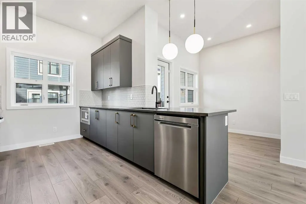 Welcome to Park Place of Mahogany. The latest addition to Jayman BUILT Resort Living Collection is the luxurious, maintenance-free townhomes of Park Place, anchored on Mahogany's Central Green. A 13-acre green space sporting pickleball courts, tennis courts, community gardens and an Amphitheatre. Discover the PINOT! An elevated courtyard facing a townhome with park views featuring The DOWN TO EARTH ELEVATED COLOUR PALETTE. You will love this paletteâthe ELEVATED package includes stylish kitchen cabinets. Luxurious bright tile for the kitchen backsplash. Polished cabinetry's hardware and interior door hardware throughout. Beautiful luxury vinyl tile on the upper-floor bathrooms and laundry and beautiful laminate flooring on the main, along with stunning pendant light fixtures over the kitchen and eating bar in a design finish. The home welcomes you into over 1700 sq ft of fine AIR CONDITIONED living, showcasing 3 bedrooms, 2.5 baths, a flex room, a den and a DOUBLE ATTACHED SIDE-BY-SIDE HEATED GARAGE. The thoughtfully designed open floor plan offers a beautiful kitchen with a sleek Whirlpool appliance package, undermount sinks throughout, a contemporary lighting package, Moen kitchen fixtures, Vichey bathroom fixtures, kitchen backsplash tile to ceiling, and an upgraded tile package throughout. Enjoy the expansive main living area, which includes a designated dining area, additional flex space, and an inviting living room, complemented by a nice selection of windows that make this home bright and airy, along with a stunning linear feature fireplace that adds warmth and coziness. North- and South-Facing exposures, with a deck and patio for your leisure. The Primary Bedroom on the upper level, overlooking the greenspace, includes a generous walk-in closet and a 5-piece ensuite featuring dual vanities, a stand-alone shower and a large soaker tub. Discover two more sizeable bedrooms on this level, along with a full bath and 2nd-floor laundry (Washer/Dryer incl). The lowe r level offers you yet another flex area, ideal for a media room or den/office. Park Place homeowners will enjoy window blinds included, fully landscaped and fenced yards, lake access, 22km of community pathways and is conveniently located close to the shops and services of Mahogany and Westman Village. Jayman's standard inclusions for this stunning home are 6 solar panels, BuiltGreen Canada Standard, with an EnerGuide rating, UVC ultraviolet light air purification system, high efficiency furnace with Merv 13 filters, active heat recovery ventilator, tankless hot water heater, triple pane windows, smart home technology solutions and an electric vehicle charging outlet. WELCOME TO PARK PLACE! (id:27476)