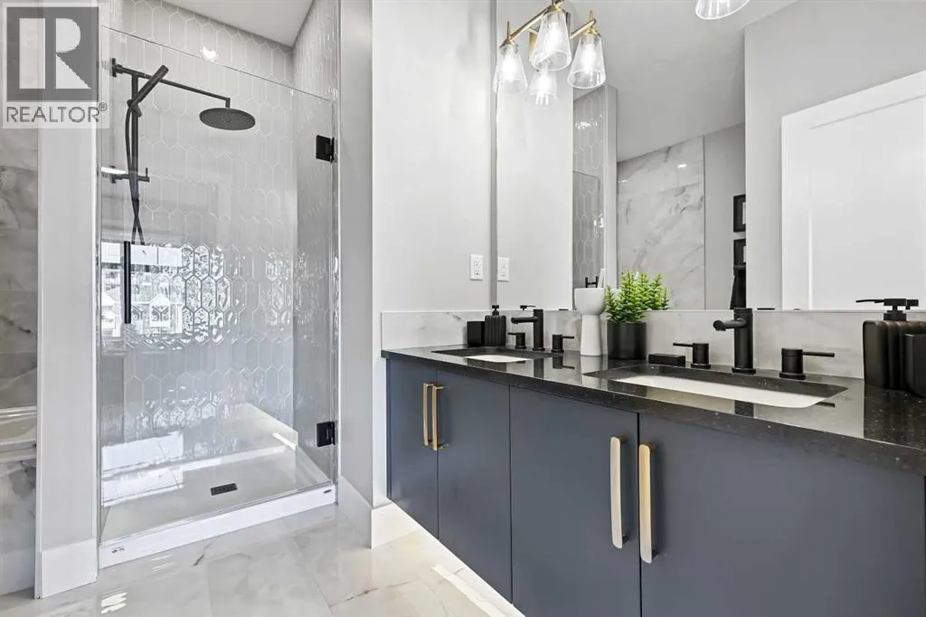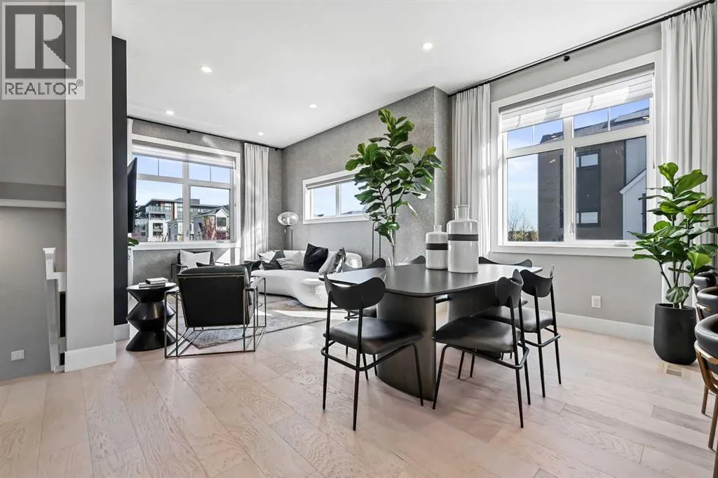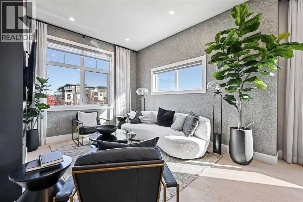 Welcome to Park Place of Mahogany. The latest addition to Jayman BUILT Resort Living Collection is the luxurious, maintenance-free townhomes of Park Place, anchored on Mahogany's Central Green. A 13-acre green space sporting pickleball courts, tennis courts, community gardens and an Amphitheatre. Discover the STUNNING FORMER SHOW HOME CABERNET! An elevated courtyard facing a townhome with park views featuring The an ELEVATED SHOWHOME SPECIFIC COLOUR PALETTE. You will love this paletteâthe ELEVATED package includes stylish kitchen cabinets. Luxurious tile for the kitchen backsplash. Polished cabinetry's hardware and interior door hardware throughout. Beautiful luxury tile on the upper-floor bathrooms and laundry and beautiful laminate flooring on the main, along with stunning pendant light fixtures over the kitchen and eating bar in a design finish. The home welcomes you into over 1700 sq ft of fine AIR CONDITIONED living, showcasing 3 bedrooms, 2.5 baths, a flex room, a den and a DOUBLE ATTACHED SIDE-BY-SIDE HEATED GARAGE. The thoughtfully designed open floor plan offers a beautiful kitchen with an an upgraded JennAir appliance package with built-in wall oven/microwave combo, chimney hood fan with shroud, gas cooktop and French-door refrigerator. Upgraded with Showhome wallpaper and window coverings package. Corner Suite with Park views. Upgraded with electric fireplace, washer, dryer and kitchen pendant lights. L-shaped kitchen layout. Undermount sinks throughout. Expanded dining area. Kitchen backsplash tile to ceiling. Moen Align kitchen fixture package. Upgraded matte black bathroom fixture package. Enjoy the expansive main living area, which includes a designated dining area, additional flex space, and an inviting living room, complemented by a nice selection of windows that make this home bright and airy, along with a stunning linear feature fireplace that adds warmth and coziness. North- and South-Facing exposures, with a deck and patio for your leisure. The Primary Bedroom on the upper level, overlooking the greenspace, includes a generous walk-in closet and a 5-piece ensuite featuring dual vanities, a stand-alone shower and a large soaker tub. Discover two more sizeable bedrooms on this level, along with a full bath and 2nd-floor laundry (Washer/Dryer incl). The lower level offers you yet another flex area, ideal for a media room or den/office. Park Place homeowners will enjoy window blinds included, fully landscaped and fenced yards, lake access, 22km of community pathways and is conveniently located close to the shops and services of Mahogany and Westman Village. Jayman's standard inclusions for this stunning home are 6 solar panels, BuiltGreen Canada Standard, with an EnerGuide rating, UVC ultraviolet light air purification system, high efficiency furnace with Merv 13 filters, active heat recovery ventilator, tankless hot water heater, triple pane windows, smart home technology solutions and an electric vehicle charging outlet. WELCOME TO PARK PLACE! (id:27476)