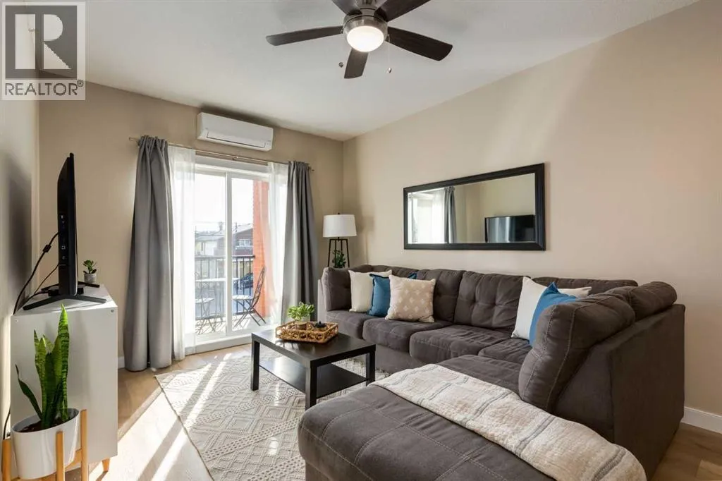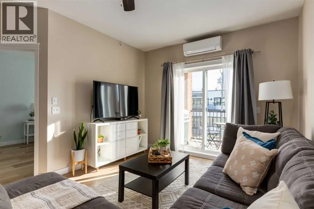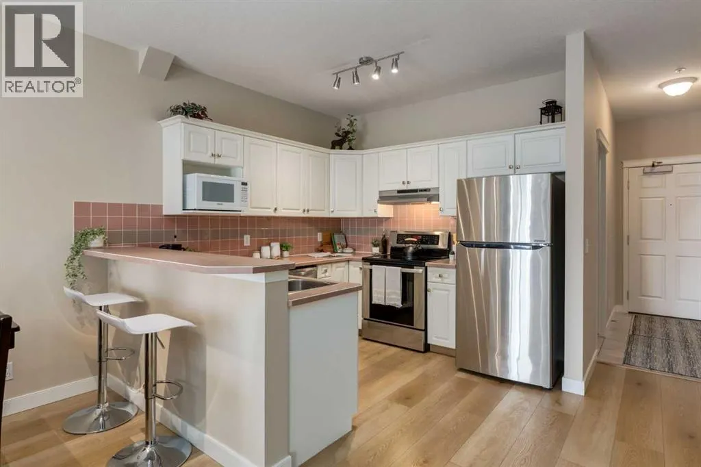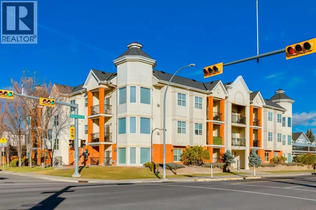 This sunny, bright 2nd floor, fully air conditioned 2 bedroom, 2 bath condo has been updated throughout! The white kitchen has plenty of cabinets, stainless steel appliances and an peninsula island with raised breakfast bar and overlooks the dining area and living room which has patio doors leading to your covered south facing balcony. The primary bedroom has a walk thru closet and 4 piece ensuite. The 2nd bedroom/den would be perfect for a home office or over night guests with the 3 piece bath close by. The insuite laundry room can accommodate full sized washer and dryer and provides insuite storage. You have a storage locker and a titled parking stall in the heated underground parkade which also has a car wash bay for the residents use. With such a great location close to the many amenities of Kensington, schools, transit, and an easy commute to downtown, SAIT, the U of C and the Foothills and the Children's hospitals, this home is not to be missed! (id:27476)