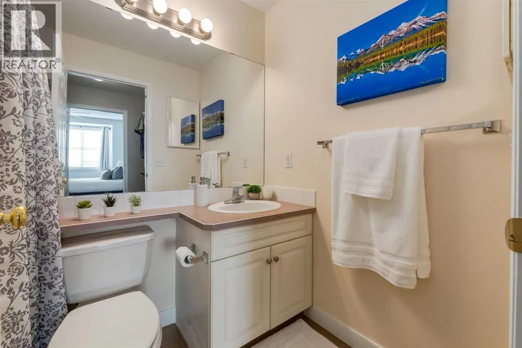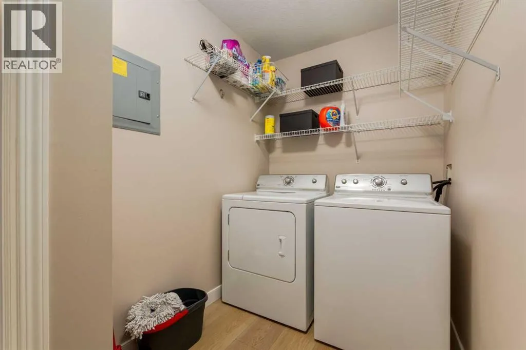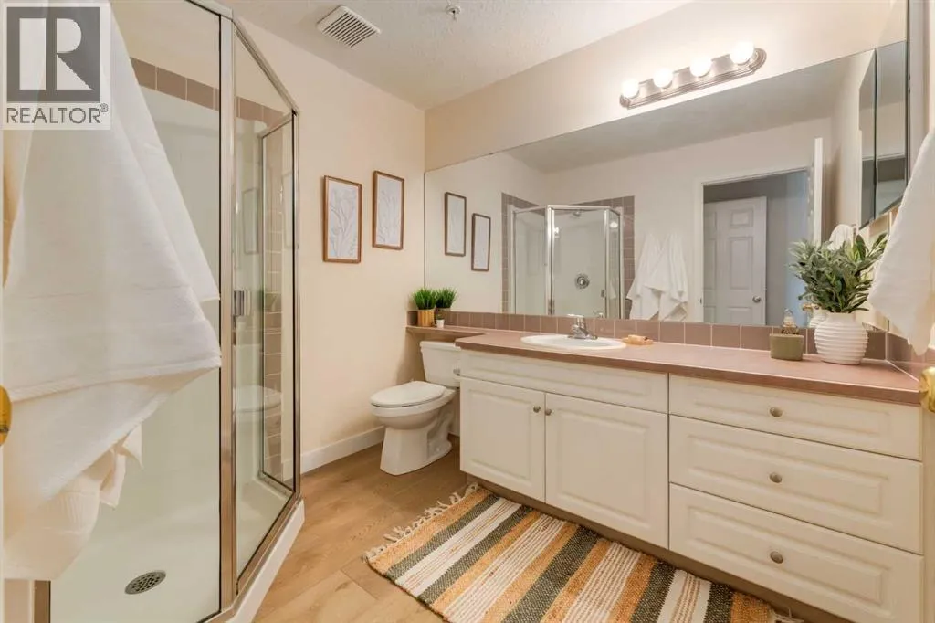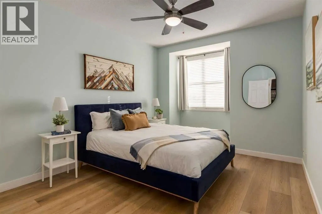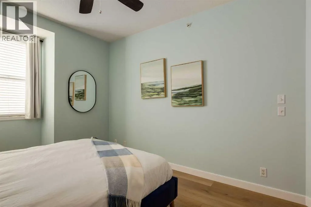 This sunny, bright 2nd floor, fully air conditioned 2 bedroom, 2 bath condo has been updated throughout! The white kitchen has plenty of cabinets, stainless steel appliances and an peninsula island with raised breakfast bar and overlooks the dining area and living room which has patio doors leading to your covered south facing balcony. The primary bedroom has a walk thru closet and 4 piece ensuite. The 2nd bedroom/den would be perfect for a home office or over night guests with the 3 piece bath close by. The insuite laundry room can accommodate full sized washer and dryer and provides insuite storage. You have a storage locker and a titled parking stall in the heated underground parkade which also has a car wash bay for the residents use. With such a great location close to the many amenities of Kensington, schools, transit, and an easy commute to downtown, SAIT, the U of C and the Foothills and the Children's hospitals, this home is not to be missed! (id:27476)