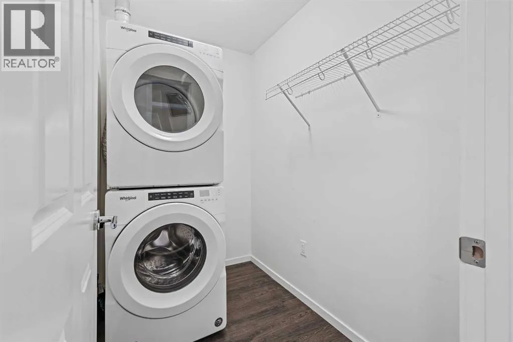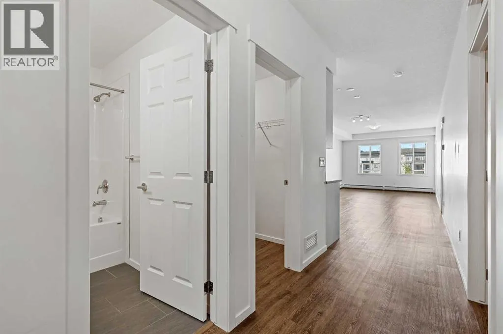Modern Condo Living with Style + Comfort. Welcome to this beautifully upgraded 2-bedroom, 2-bathroom condo in the desirable community of Legacy â offering modern style, functional space, and a fantastic lifestyle opportunity for first-time buyers, investors, or anyone looking for low-maintenance living in South Calgary.This home features a spacious, open-concept floor plan with 9-foot ceilings and luxury vinyl plank flooring that flows through the kitchen, eating area, and living room. The upgraded kitchen includes quartz countertops, stainless steel appliances, and modern cabinetry â designed for both functionality and style.The living room opens directly onto a generously sized balcony, providing outdoor space for morning coffee or summer evenings.The primary bedroom includes a walk-in closet and a private ensuite bathroom with double sinks, quartz counters, tile flooring, and an oversized shower. The second bedroom is ideal for guests, roommates, or a home office, and is conveniently located next to the second full bathroom with a tub/shower combination.Additional features include in-suite laundry, a titled underground parking stall, an assigned storage locker and a spacious private balcony with access from the living room.Legacy is a thoughtfully planned community offering parks, playgrounds, walking paths, nearby schools, and convenient access to major roadways like Macleod Trail and Stoney Trail. Shopping, restaurants, and everyday amenities are just minutes away.If you're looking for a move-in ready, modern condo in a growing community with lasting value â this is it. (id:27476)
