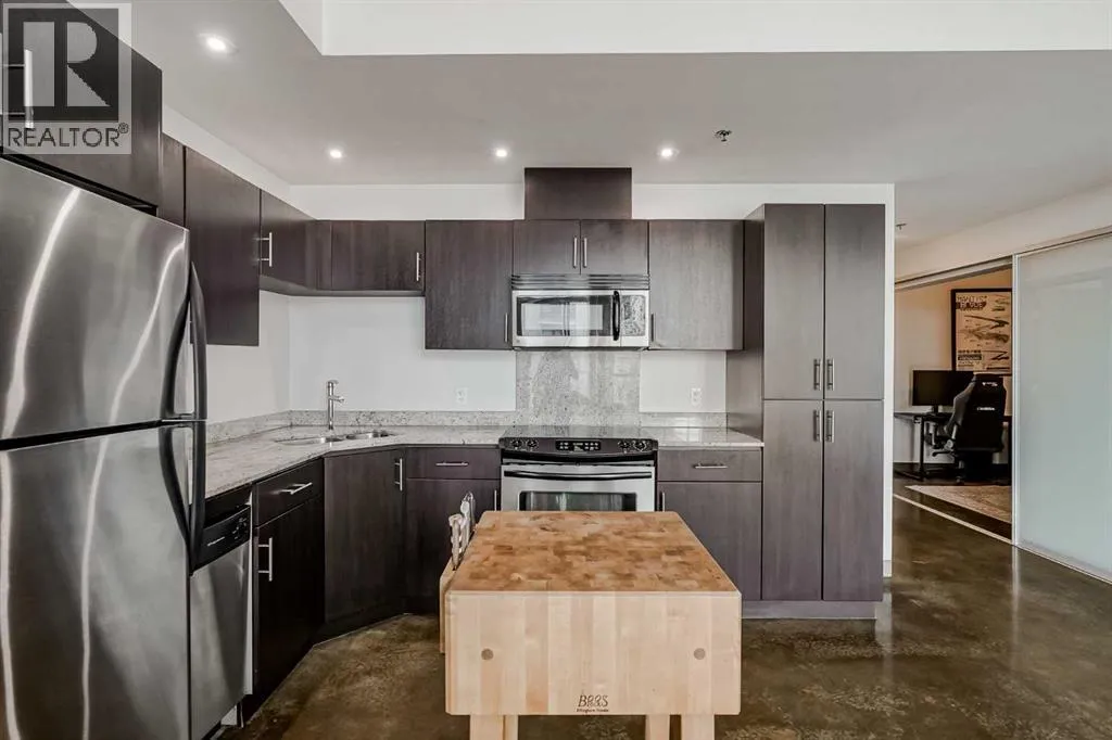 Welcome to Colours â where modern design, inner-city convenience, and urban energy all collide. This 2-bed, 2-bath condo isnât just four walls and a roof â itâs a launchpad for your lifestyle, or a solid asset for your portfolio. From the moment you walk in, youâre hit with natural light streaming through floor-to-ceiling windows, highlighting polished concrete floors and those sleek, contemporary finishes that give the space its signature loft vibe. The open concept layout is versatile â big enough to entertain, yet perfectly functional for everyday living. The kitchen is a showpiece on its own, with granite countertops, stainless steel appliances, and modern cabinetry â whether youâre cooking for two, hosting friends, or just grabbing takeout, this space keeps up. The primary suite is a good size with its own 4-piece ensuite, while the second bedroom offers flexibility for a roommate, home office, or guest room. A sliding glass wall adds a modern twist, giving you the option to create privacy when you want it, or keep the flow open and airy. Step outside to your private balcony and take in the city from above. With glass railing and a built-in gas line for your BBQ, this space is perfect for summer grilling, morning coffee, or winding down as the city lights sparkle at night. And it doesnât stop there. Living at Colours comes with perks designed for a modern lifestyle: secure bike storage, a shared rooftop patio for when you want a bigger hangout spot, heated underground parking, 24-hour surveillance for peace of mind, and a building thatâs both pet-friendly and wheelchair accessible. The location? It doesnât get better. Youâre steps from Sunterra Market, the LRT, coffee shops, gyms, tennis courts, and some of Calgaryâs hottest restaurants and nightlife. Work downtown? Your âcommuteâ is now a short walk. Play downtown? Youâre already there. Whether youâre a young professional chasing the ultimate downtown urban retreat, or an investor looking for a turnkey rental in one of Calgaryâs most sought-after inner-city hubs, this condo checks all the boxes. Stylish, functional, and perfectly located â itâs everything inner-city living is supposed to be. (id:27476)