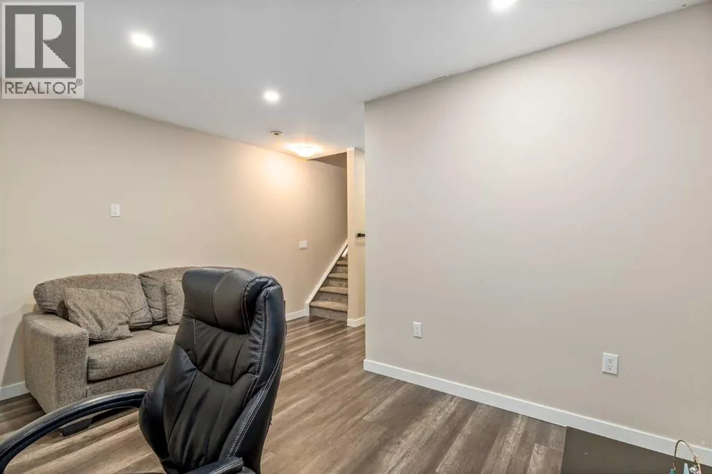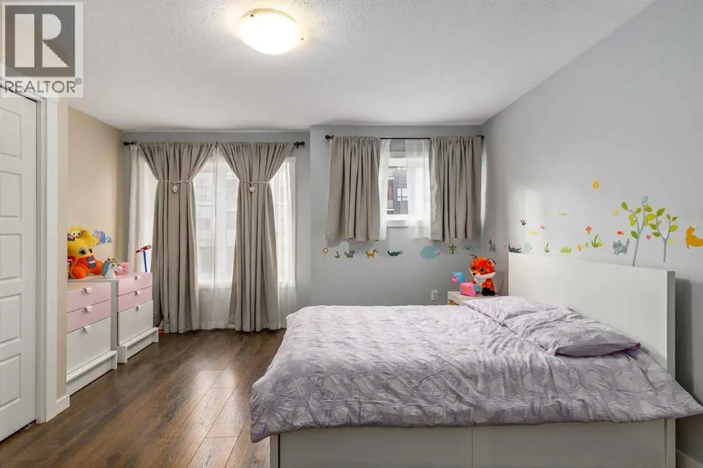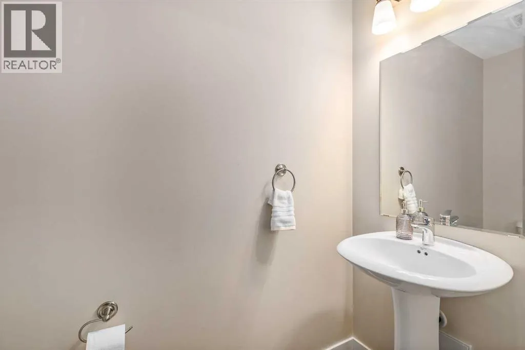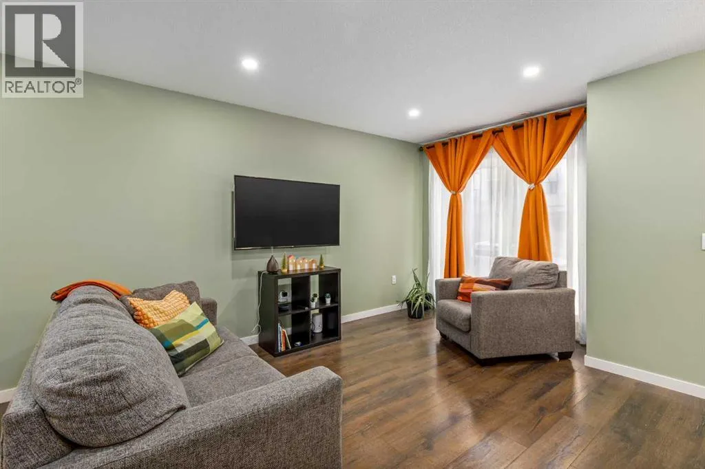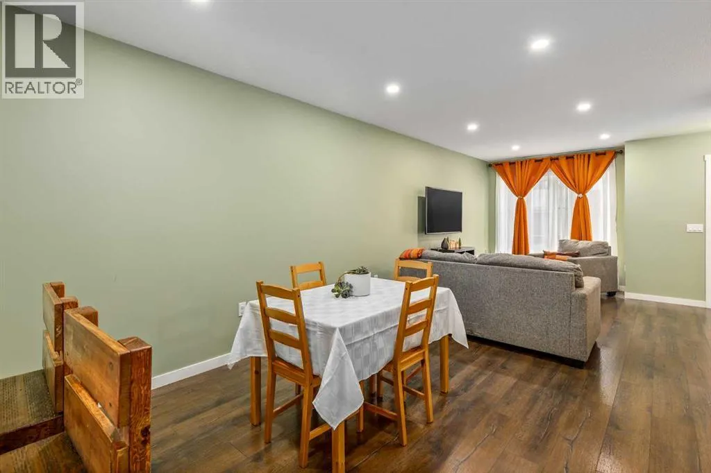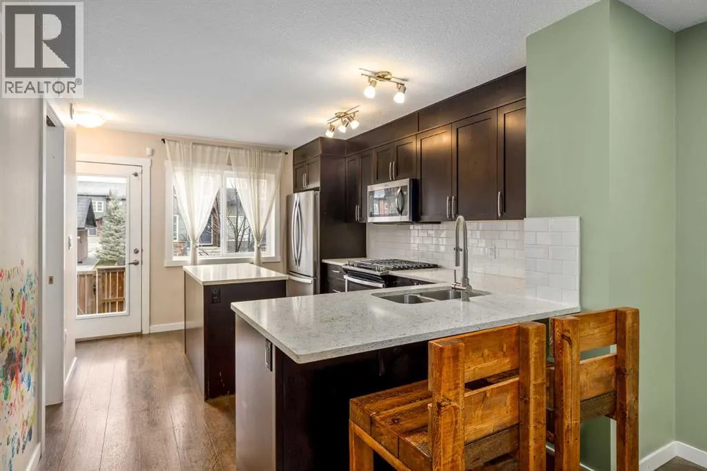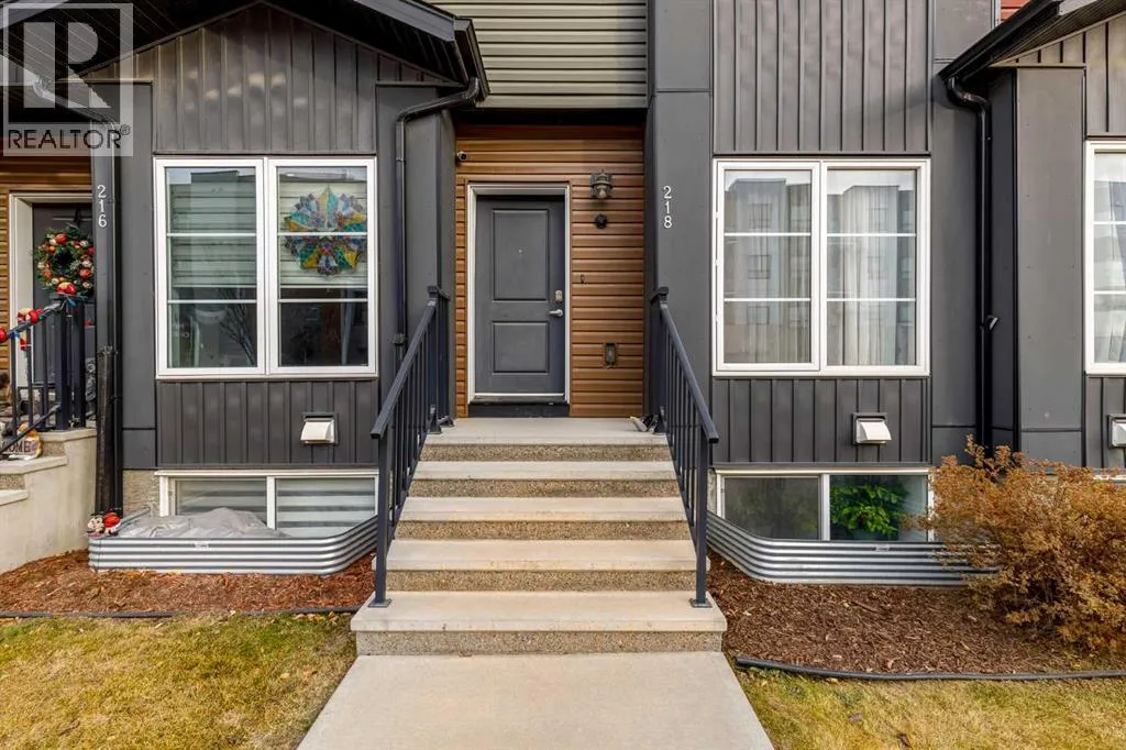 Welcome to this stylish townhome in Redstone offering over 1,600 sq. ft. of finished living space and everyday convenienceâincluding two parking stalls located directly outside your private, fenced yard (a rare find in this complex). Plus, youâre right across the street from shops and moments to parks, pathways, transit, and Stoney Trail. Inside, the main floor is bright and functional with dark laminate flooring throughout. A welcoming front family room features a decent-sized picture window for natural light. The staircase is set along the side of the home beside the central dining area, creating a smooth flow to the back of the house. The rear kitchen is well-designed with dark-stained cabinetry, quartz counters with subtle black and gold veins, subway tile backsplash, stainless steel appliances, a gas stove, an island, and a pantry-style closet. A 2-piece bath is conveniently located across from the kitchen, and the back door leads to your private, fenced yardâperfect for BBQs and easy outdoor livingâwith those two parking stalls just beyond the gate. Upstairs, laminate continues through the entire upper level (carpet only on the stairs). The primary bedroom includes dual closets and a large nook with a custom built-in for TV and storage, plus a 3-piece ensuite with a corner shower. The second bedroom is generously sized and has access to a full 4-piece bathroom located just outside the doorâideal for guests, kids, or a roommate. The basement is fully finished and adds terrific bonus space: a cozy recreation room with a good-sized window, a 4-piece bathroom, and a rear bedroom with a closet and a bump-out perfect for a TV or desk area. Laundry is downstairs in a dedicated closet, with the mechanical room across. Outside, enjoy the private, fenced yard, and the everyday ease of two assigned stalls right out backâa standout advantage compared to most units with only one. Redstone offers a welcoming, family-friendly vibe with parks, playgrounds, and scenic pathways , plus quick access to shopping, transit, and major routes. Whether youâre a first-time buyer, downsizer, or investor, this home checks all the boxes for space, style, and value. Book your private showing today and experience the best of Redstone living. (id:27476)