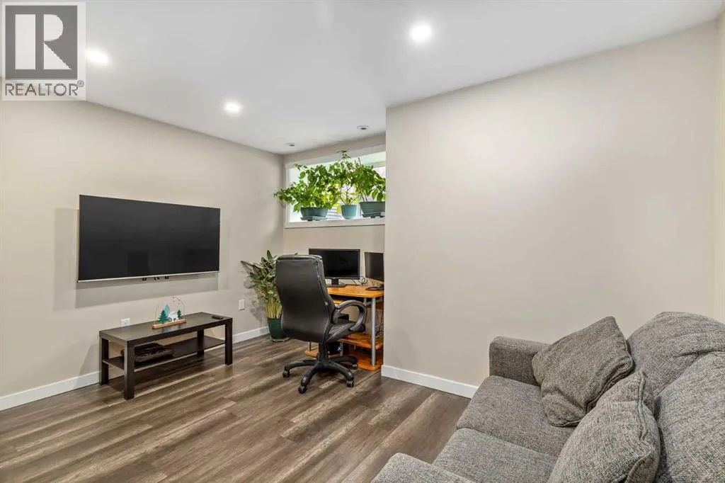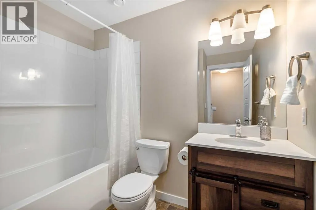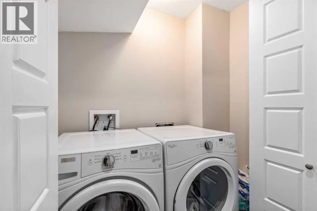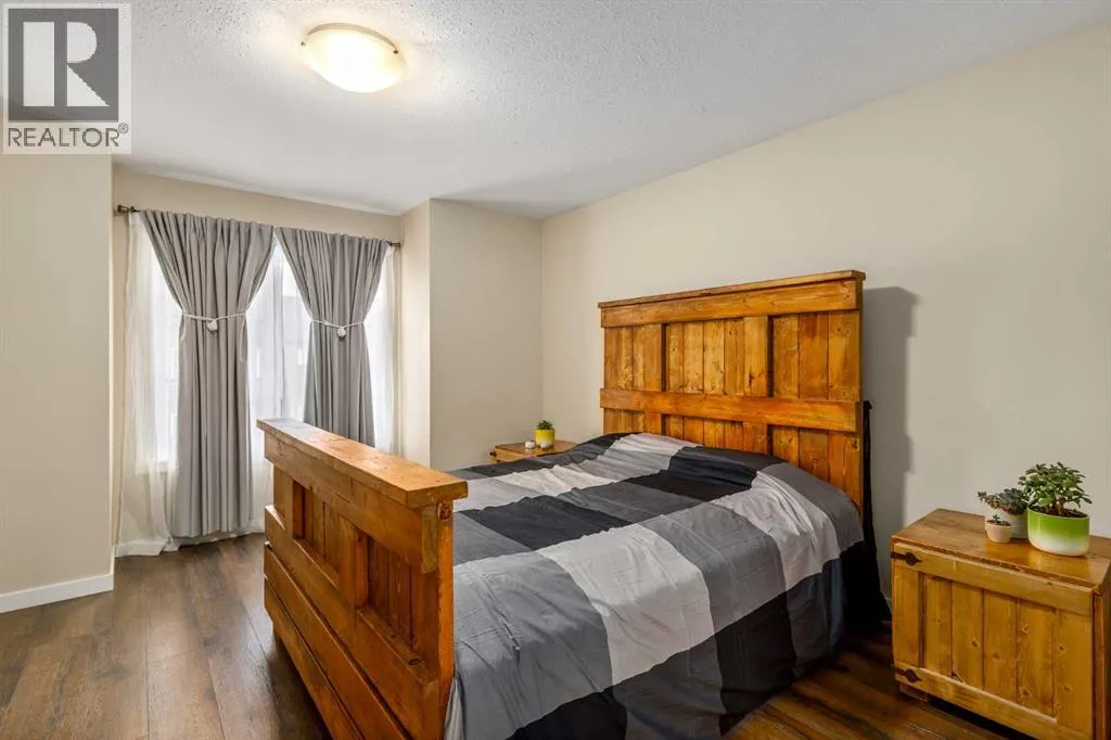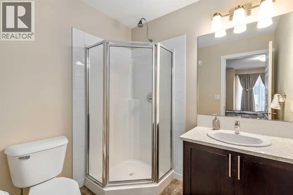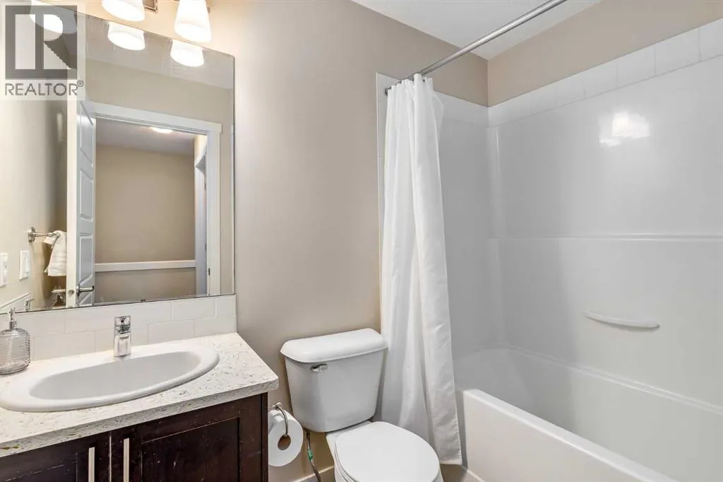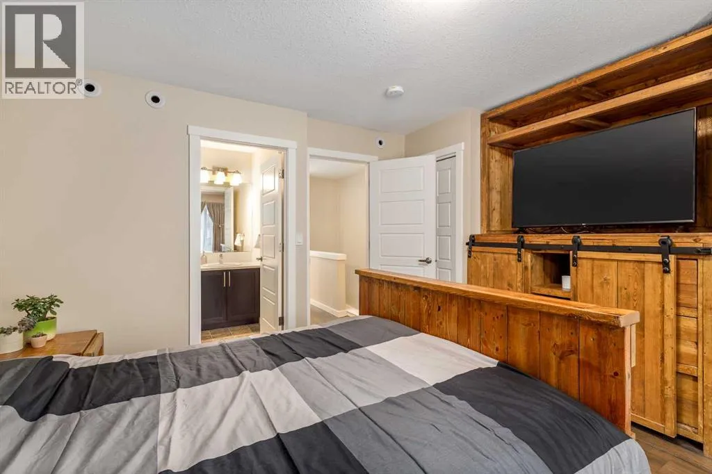 Welcome to this stylish townhome in Redstone offering over 1,600 sq. ft. of finished living space and everyday convenienceâincluding two parking stalls located directly outside your private, fenced yard (a rare find in this complex). Plus, youâre right across the street from shops and moments to parks, pathways, transit, and Stoney Trail. Inside, the main floor is bright and functional with dark laminate flooring throughout. A welcoming front family room features a decent-sized picture window for natural light. The staircase is set along the side of the home beside the central dining area, creating a smooth flow to the back of the house. The rear kitchen is well-designed with dark-stained cabinetry, quartz counters with subtle black and gold veins, subway tile backsplash, stainless steel appliances, a gas stove, an island, and a pantry-style closet. A 2-piece bath is conveniently located across from the kitchen, and the back door leads to your private, fenced yardâperfect for BBQs and easy outdoor livingâwith those two parking stalls just beyond the gate. Upstairs, laminate continues through the entire upper level (carpet only on the stairs). The primary bedroom includes dual closets and a large nook with a custom built-in for TV and storage, plus a 3-piece ensuite with a corner shower. The second bedroom is generously sized and has access to a full 4-piece bathroom located just outside the doorâideal for guests, kids, or a roommate. The basement is fully finished and adds terrific bonus space: a cozy recreation room with a good-sized window, a 4-piece bathroom, and a rear bedroom with a closet and a bump-out perfect for a TV or desk area. Laundry is downstairs in a dedicated closet, with the mechanical room across. Outside, enjoy the private, fenced yard, and the everyday ease of two assigned stalls right out backâa standout advantage compared to most units with only one. Redstone offers a welcoming, family-friendly vibe with parks, playgrounds, and scenic pathways , plus quick access to shopping, transit, and major routes. Whether youâre a first-time buyer, downsizer, or investor, this home checks all the boxes for space, style, and value. Book your private showing today and experience the best of Redstone living. (id:27476)