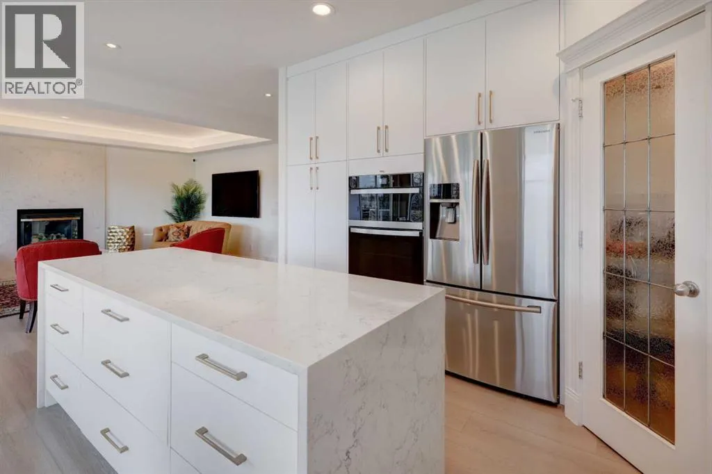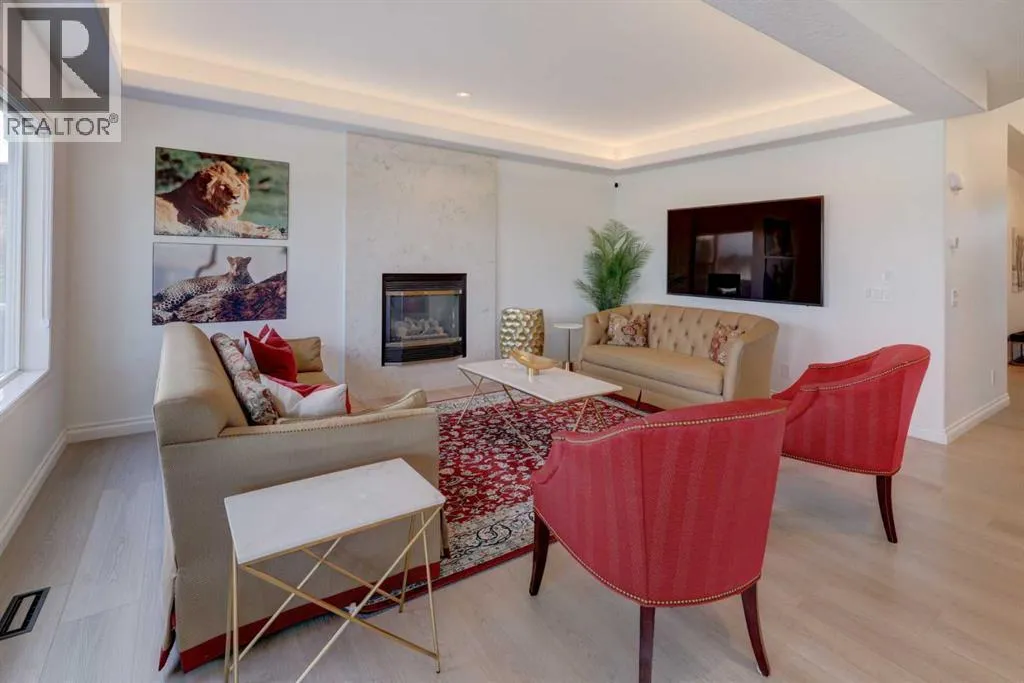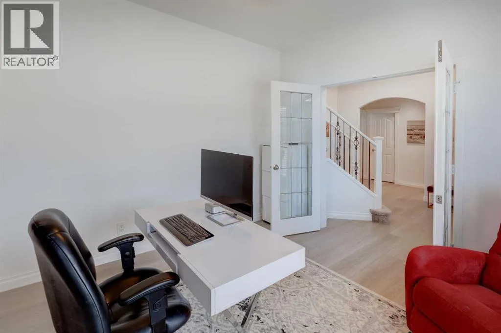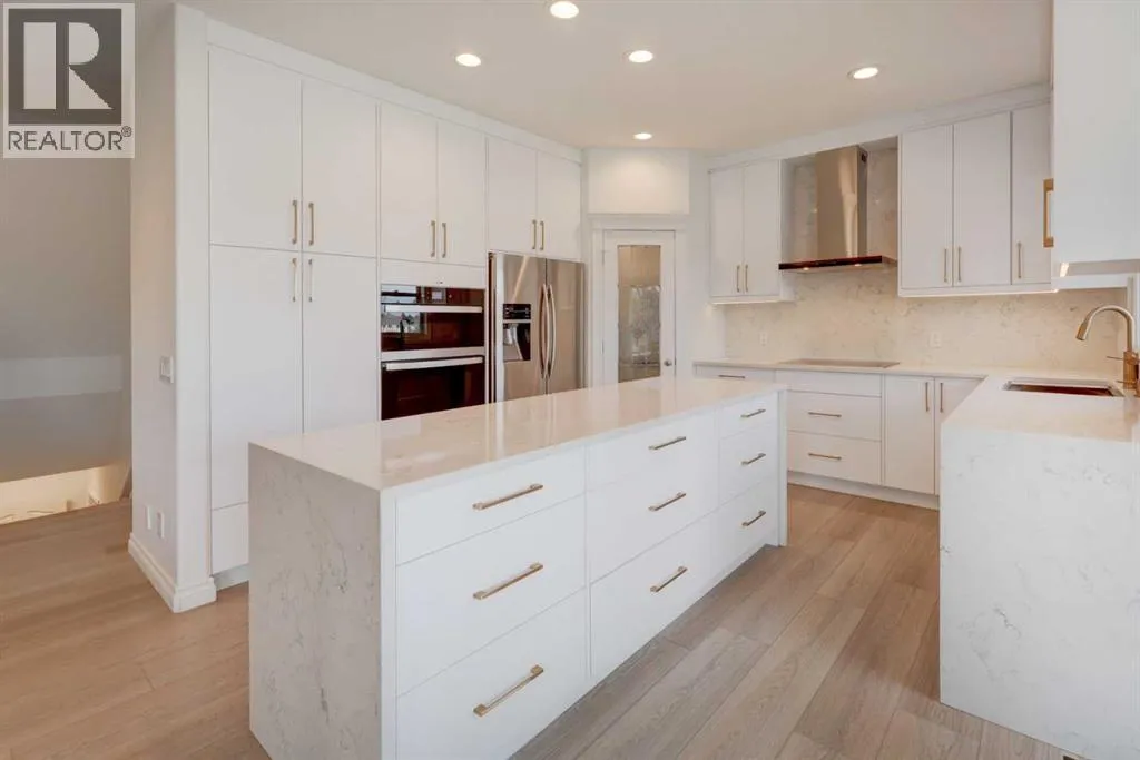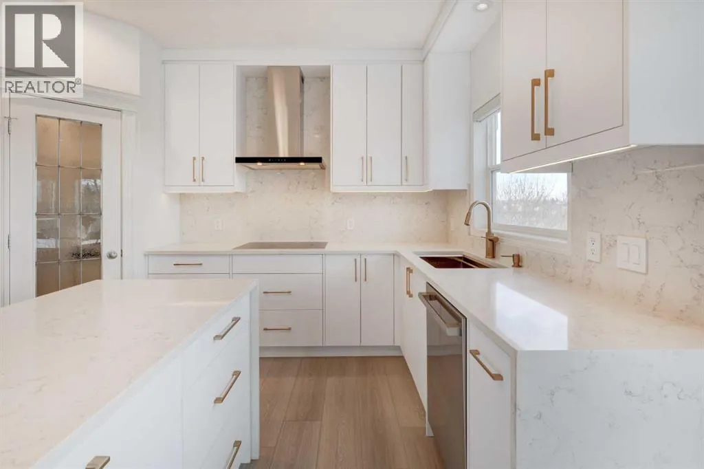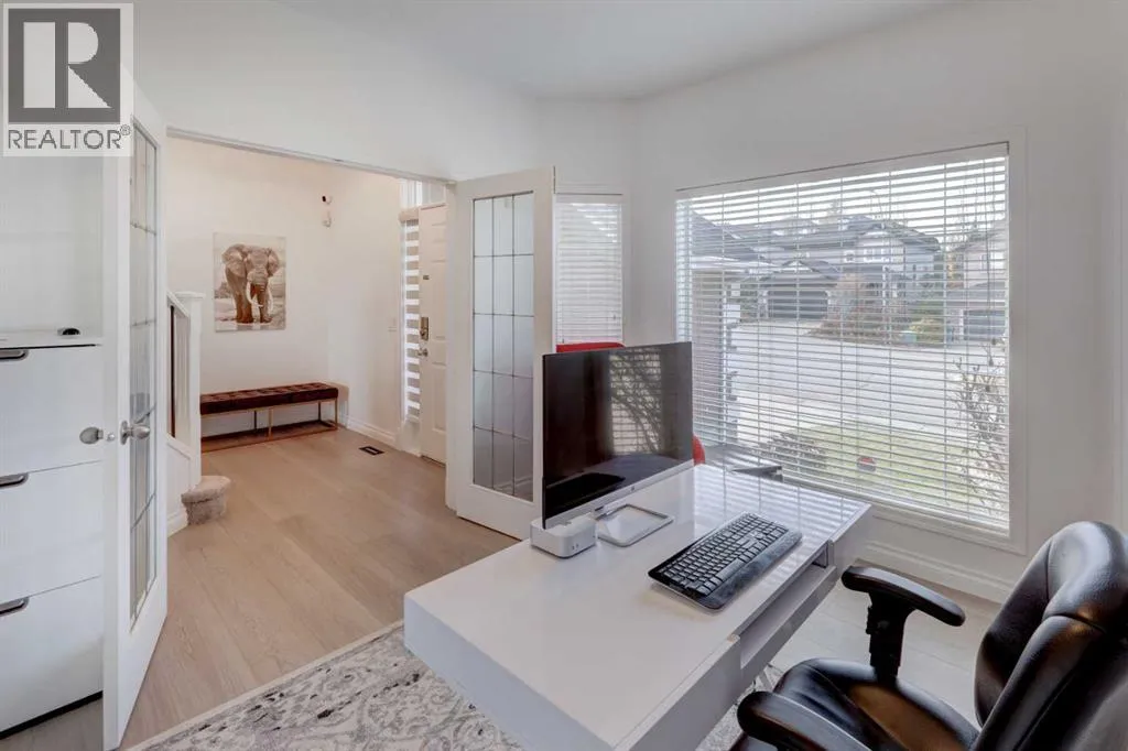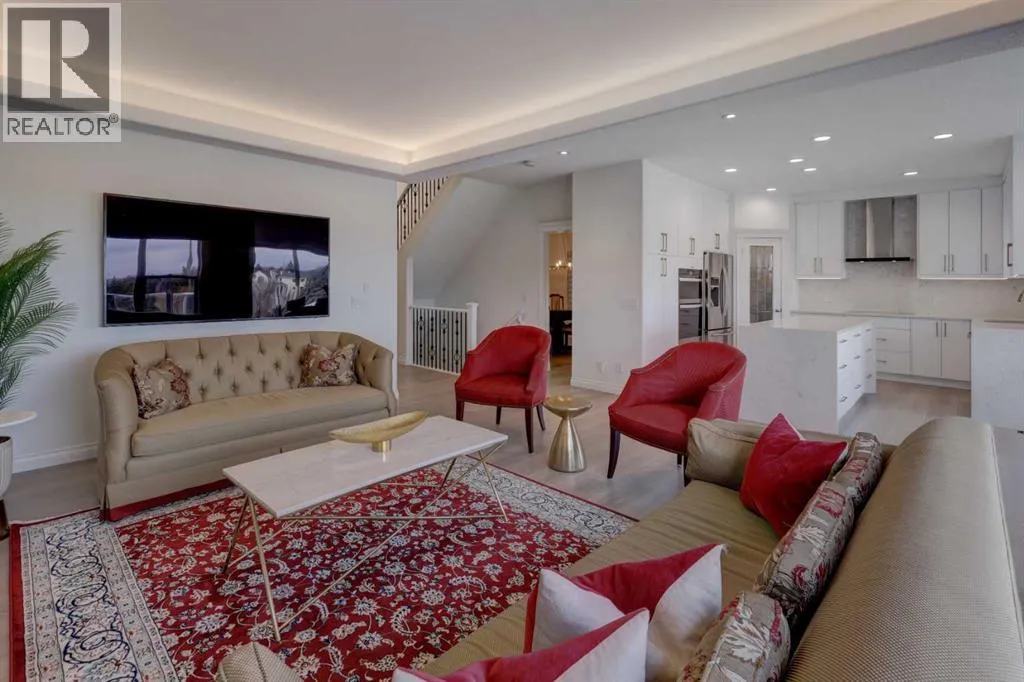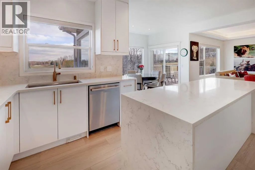 Welcome to this breathtaking 3700+ sq ft beautifully renovated detached home perfectly positioned on one of the most desirable lots in Valley Ridge, backing onto a serene green belt and the Valley Ridge Golf Course and pond. Enjoy sweeping, unobstructed views of the fairways, water features and morning sunrises that fill the home with natural light. This home has 4 large bedrooms, 3.5 bathrooms, main floor study/flex room, and has been extensively updated to combine modern elegance with timeless comfort. Notable renovations include: a fully redesigned kitchen with new custom cabinetry, quartz countertops, and premium built-in appliances including wall oven, microwave, cooktop, dishwasher, and a custom hood fan. Brand new carpet on the upper level and stairs, luxury vinyl plank flooring throughout the main floor, fresh paint across the entire home, designer lighting upgrades, including statement chandeliers in the foyer and dining area, new pot lights for bright, even illumination, a modernized fireplace with a sleek quartz surround, new upper-level windows and a newer roof for added peace of mind.The upper level offers three generous bedrooms. The primary retreat captures breathtaking golf course views and features two spacious walk-in closets and a 5-piece ensuite. Two additional large bedrooms â each with their own walk-in closet â and a full bathroom complete this level. On the main floor, a bright and versatile flex room makes an ideal home office, study, yoga space, or creative studio, with plenty of afternoon sunlight and large windows. The fully developed walkout basement provides incredible flexibility. It includes a full kitchen with stove, microwave, dishwasher, fridge, and hood fan â perfect for a tenant, accommodating a live-in caregiver, or offering private space for extended family.Disclosures: Basement development was completed without permits approximately 20 years ago and has a tenant. Sellers are related to the listing agent. Jetted tub i n primary ensuite 'as-is' - jets have not been turned on in years.With its prime location, extensive renovations, and exceptional views, this property offers a rare opportunity to own one of Valley Ridgeâs finest and renovated homes. This home is just 15 minutes from downtown Calgary and a short drive to the Rockies, the location offers a rare combination of serene privacy and city convenience. (id:27476)