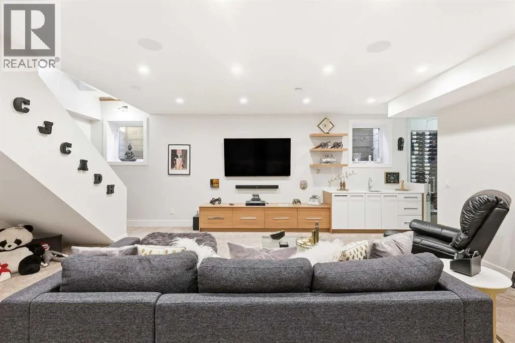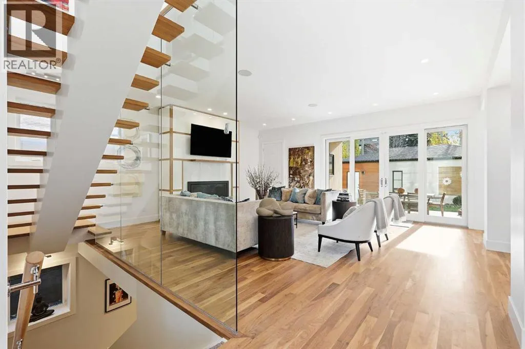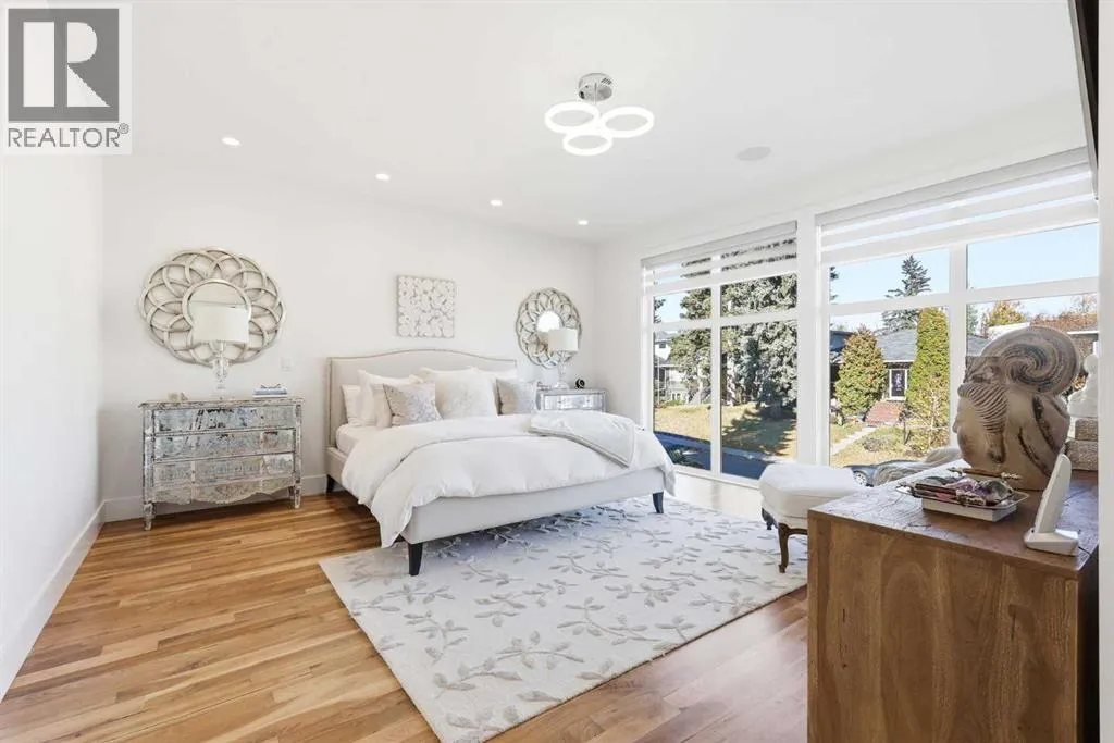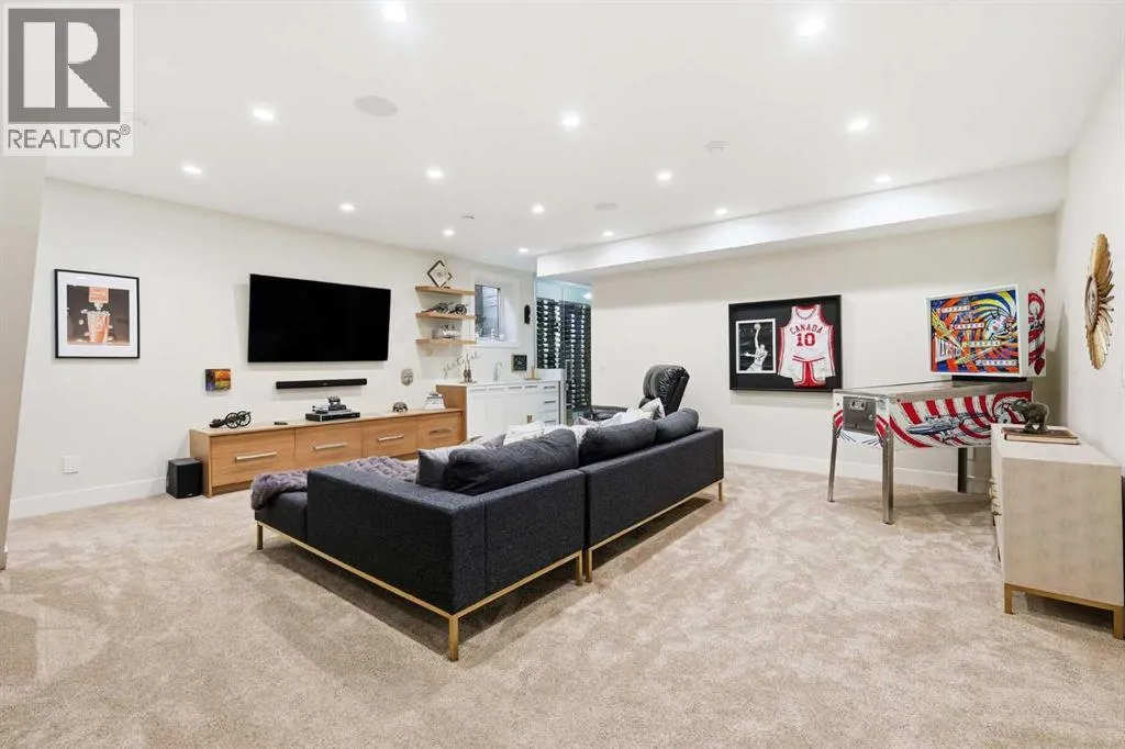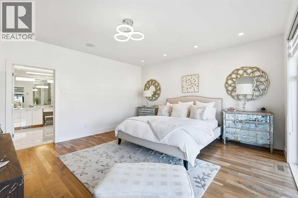 Experience refined contemporary living in this exceptional Elboya residence, offering over 4,700 square feet of luxurious space designed for comfort and style. This sophisticated home features 5 bedrooms, 3.5 bathrooms, and a south-facing backyard with a covered deckâall set along a beautiful tree-lined street. The main level impresses with 10-foot ceilings and exotic walnut hardwood floors, complemented by a bright formal dining room, private office, and inviting family room. The chef-inspired kitchen showcases Miele appliances, a large island with quartz countertops, custom cabinetry, a spacious butlerâs pantry, and premium Riobel and Brizo fixtures.Upstairs, the expansive primary suite is a true retreat, featuring a stunning dressing room and a spa-like ensuite with heated floors, dual sinks, a freestanding tub, and a luxurious walk-in shower. Three additional bedrooms with generous walk-in closets, a laundry room, loft area, and bonus room complete the upper level. The lower level is designed for both relaxation and entertainment, offering in-floor heating, a theatre room, guest quarters, a steam shower, recreation area, and wine room.Outside, enjoy a beautifully landscaped garden, and your own private oasis with a relaxing hot tub and lounge area. A triple detached garage provides ample space for vehicles and storage. Perfectly situated near Elboya Park, top-rated schools, and boutique shopping, this remarkable home blends modern elegance with everyday convenienceâa must-see property in one of Calgaryâs most desirable neighbourhoods. Click on the virtual tour or book your showing today. (id:27476)