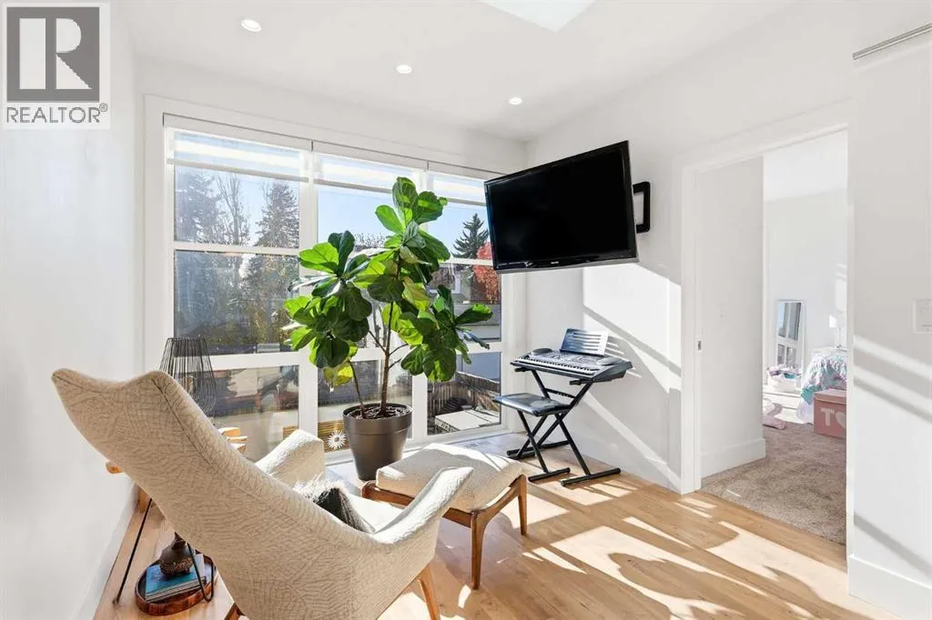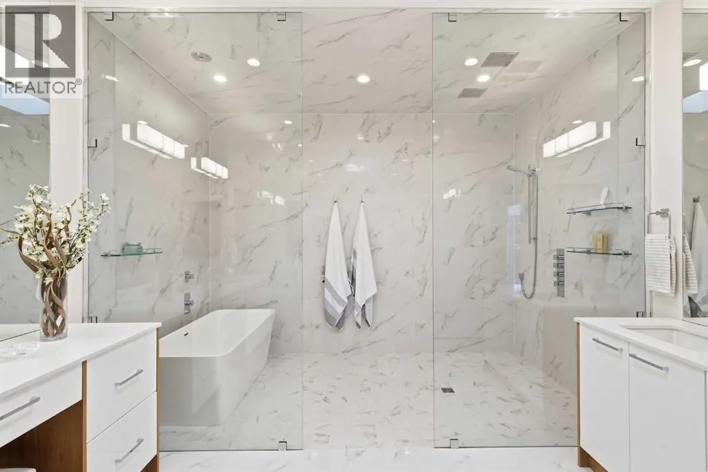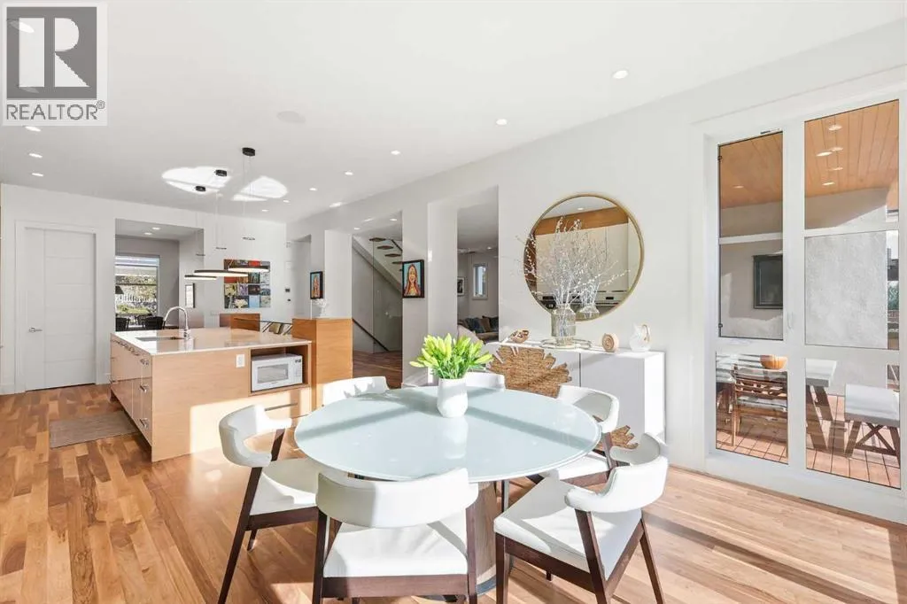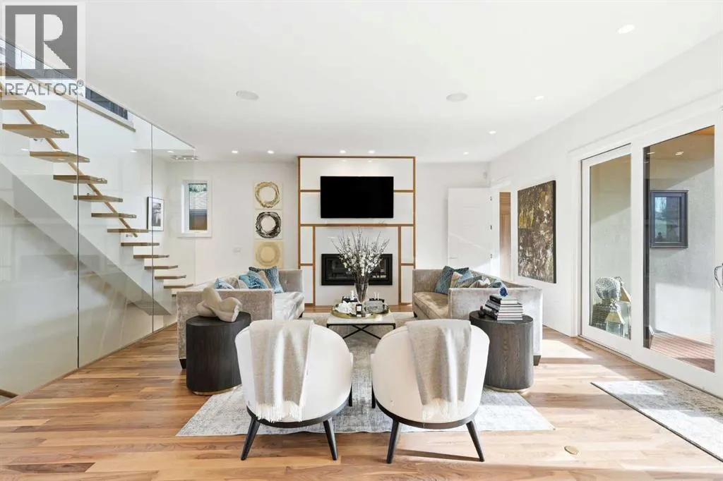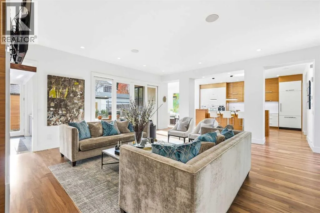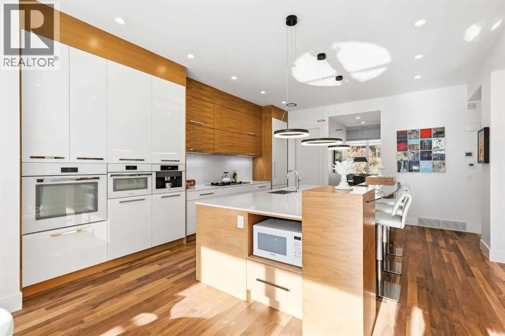 Experience refined contemporary living in this exceptional Elboya residence, offering over 4,700 square feet of luxurious space designed for comfort and style. This sophisticated home features 5 bedrooms, 3.5 bathrooms, and a south-facing backyard with a covered deckâall set along a beautiful tree-lined street. The main level impresses with 10-foot ceilings and exotic walnut hardwood floors, complemented by a bright formal dining room, private office, and inviting family room. The chef-inspired kitchen showcases Miele appliances, a large island with quartz countertops, custom cabinetry, a spacious butlerâs pantry, and premium Riobel and Brizo fixtures.Upstairs, the expansive primary suite is a true retreat, featuring a stunning dressing room and a spa-like ensuite with heated floors, dual sinks, a freestanding tub, and a luxurious walk-in shower. Three additional bedrooms with generous walk-in closets, a laundry room, loft area, and bonus room complete the upper level. The lower level is designed for both relaxation and entertainment, offering in-floor heating, a theatre room, guest quarters, a steam shower, recreation area, and wine room.Outside, enjoy a beautifully landscaped garden, and your own private oasis with a relaxing hot tub and lounge area. A triple detached garage provides ample space for vehicles and storage. Perfectly situated near Elboya Park, top-rated schools, and boutique shopping, this remarkable home blends modern elegance with everyday convenienceâa must-see property in one of Calgaryâs most desirable neighbourhoods. Click on the virtual tour or book your showing today. (id:27476)
