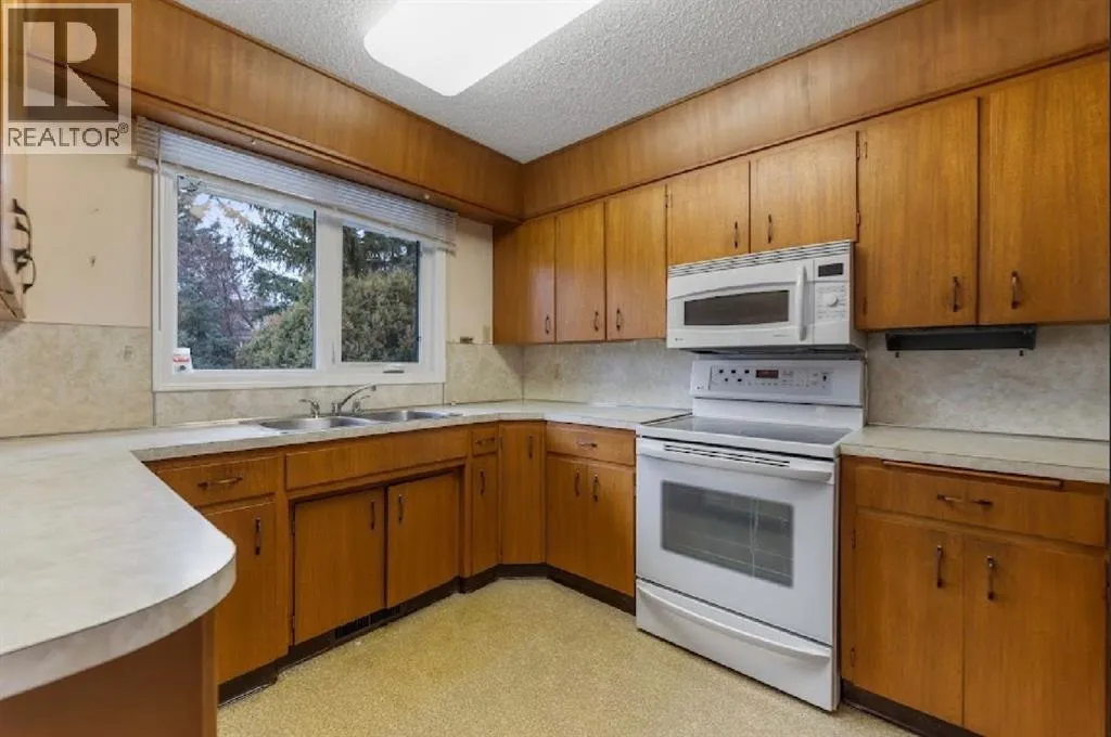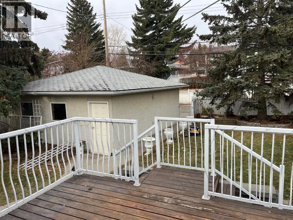 Welcome to this well-maintained four-level split home, ideally situated in the highly sought-after community of Brentwood. Perfectly located within walking distance to parks, green spaces, Nose Hill Park, schools (elementary through high school), shopping, transit, and the university â this home offers both convenience and comfort.Inside, youâll find bright and inviting living spaces throughout. The main floor features a welcoming living room with a large picture window that fills the space with natural light. The kitchen and dining area open directly onto a spacious west-facing deck, perfect for relaxing or entertaining while enjoying the afternoon sun.Upstairs includes three comfortable bedrooms and a bathroom with a large soaker tub for a relaxing spa experience without leaving your home. The lower level offers a generous family room and a fourth bedroom thatâs ideal as a home office or hobby space. The basement provides a large workshop and storage area, with an expansive crawl space for additional storage.Recent updates include triple-pane windows (approximately five years old) and newer front steps. The fully landscaped yard provides plenty of outdoor space, and the double detached garage features separate doors for each vehicle.This property offers a solid foundation in one of Calgaryâs best neighborhoods â ready for your personal touches.Sold âas-is, where-is.â (id:27476)