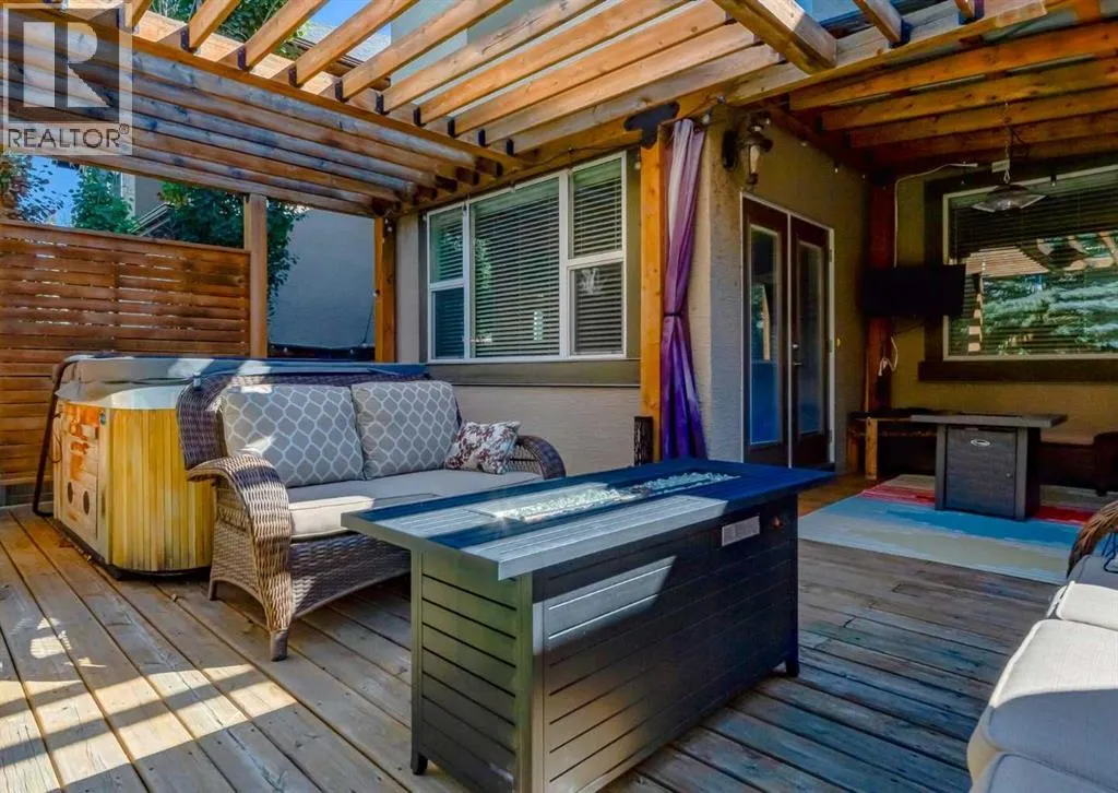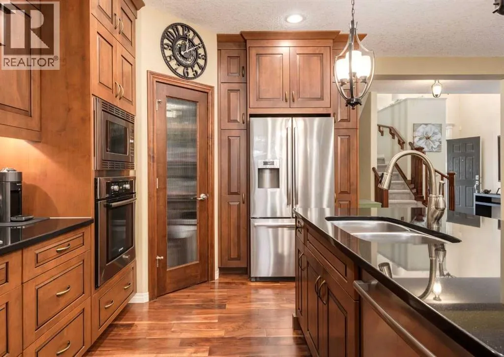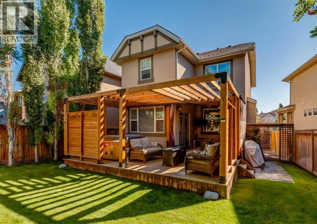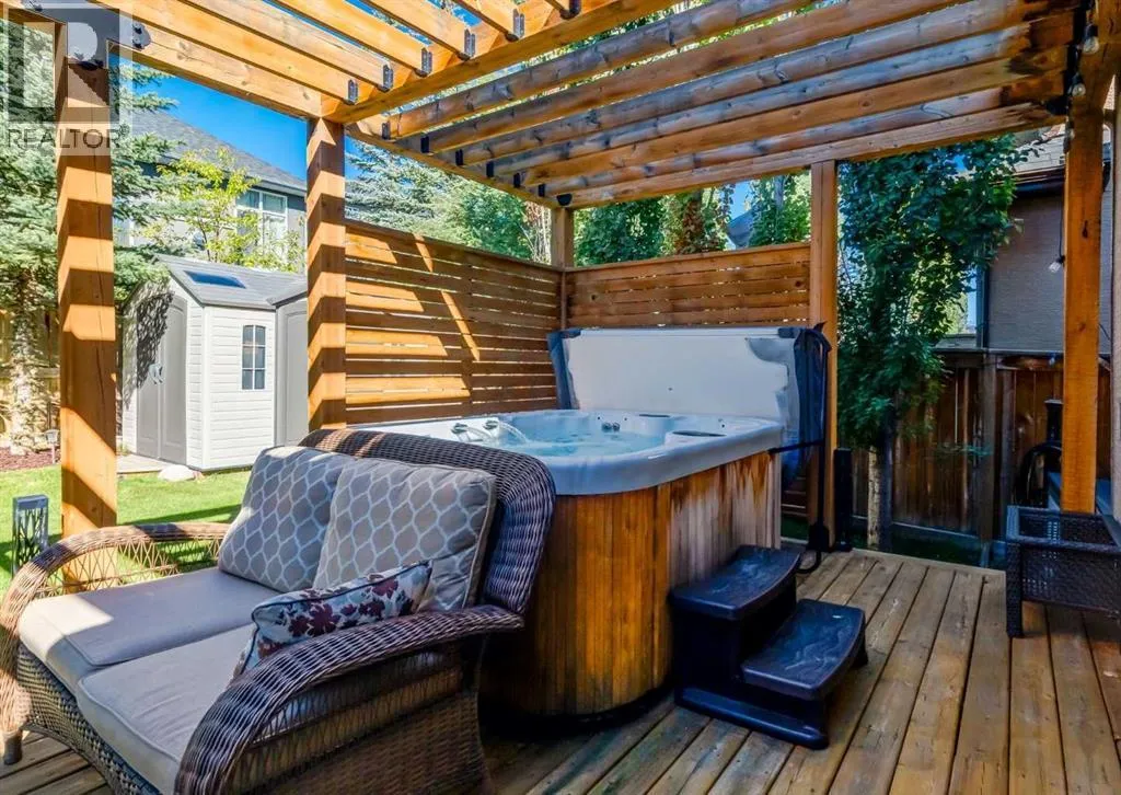 This stunning ALBI Estate home in the heart of Cranston is a true showpiece, blending timeless craftsmanship with modern updates and luxurious comfort throughout. Set on a quiet, family-friendly circle with no through traffic, it greets you with a stucco exterior, exposed aggregate walkway and driveway, and beautifully manicured landscaping. Inside, the attention to detail is unmistakableâfrom the rich Acacia walnut hardwood flooring and 9-foot ceilings on the main level to the Alder cabinetry, high-end BOSCH appliances, elegant light fixtures, and custom Hunter Douglas blinds. The bright, open layout offers both style and functionality, with a spacious bonus room upstairs and three large bedrooms including a beautiful primary suite featuring a walk-in closet and a luxurious five-piece ensuite. The professionally developed basement adds even more living space with a fourth bedroom (also with a walk-in closet), a large family room with plumbing for a wet bar, and full-size windows that flood the area with natural light. Recent upgrades include new carpet and laminate flooring (2023) and a new hot water tank (2023), while the heated double garage is immaculate with epoxy floors, hot and cold water, a drain, and extra storage. The outdoor living space is equally impressive, featuring a large deck with privacy screening, a luxurious hot tub, permanent exterior soffit lighting, and an underground sprinkler system that keeps the yard lush and vibrant. Additional features include central air conditioning, a gas line for the BBQ, water softener, and upgraded carpet underlay for added comfort. Located in one of Calgaryâs most desirable communities, residents enjoy access to Cranstonâs Century Hallâa 22,000 sq. ft. facility offering yoga, art classes, sports courts, splash park, tennis, and skating rinks in winterâall included in the affordable HOA fee. With its combination of elegance, thoughtful upgrades, and unbeatable location, this exceptional home offers everything a fa mily could ask for and more. (id:27476)