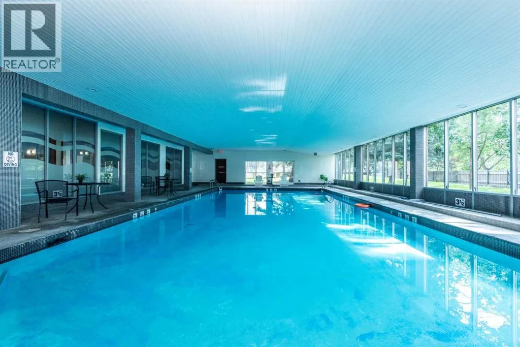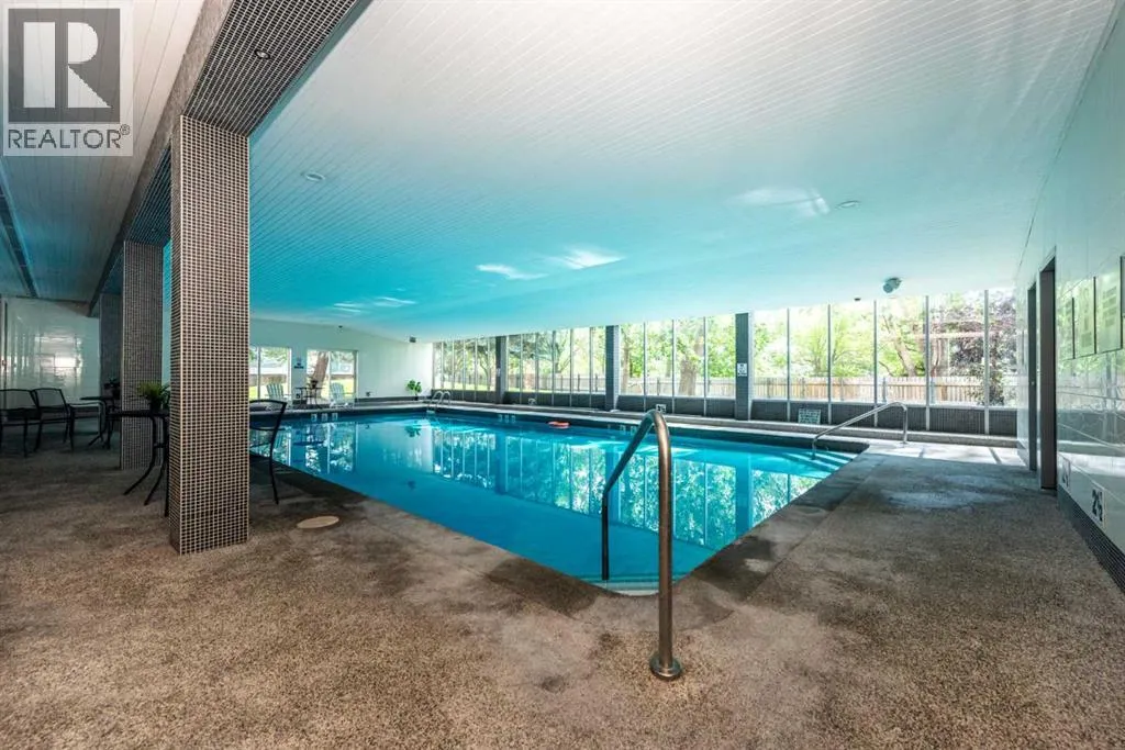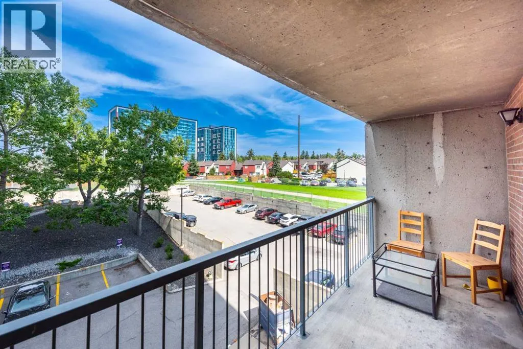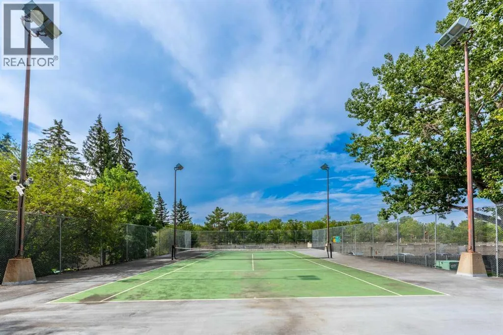 This well maintained 2-bedroom, 1-bathroom condo combines comfort, style, and convenience in a prime location. The west-facing balcony fills the space with natural light and offers stunning sunset views, while the layoutâwith only one shared wallâensures exceptional privacy. Inside, enjoy a modern kitchen with updated countertops and backsplash, an open-concept living and dining area, a spacious storage room, and a bright 4-piece bathroom with ample cabinet space. The master bedroom features brand-new carpet, and the second bedroom overlooks the outdoor tennis court. The building offers fantastic amenities, including an indoor swimming pool, fitness center, secure indoor bike parking room and outdoor tennis court.. Just one block from the C-Train and close to shopping, parks, and green spaces, this condo is a rare find. (id:27476)