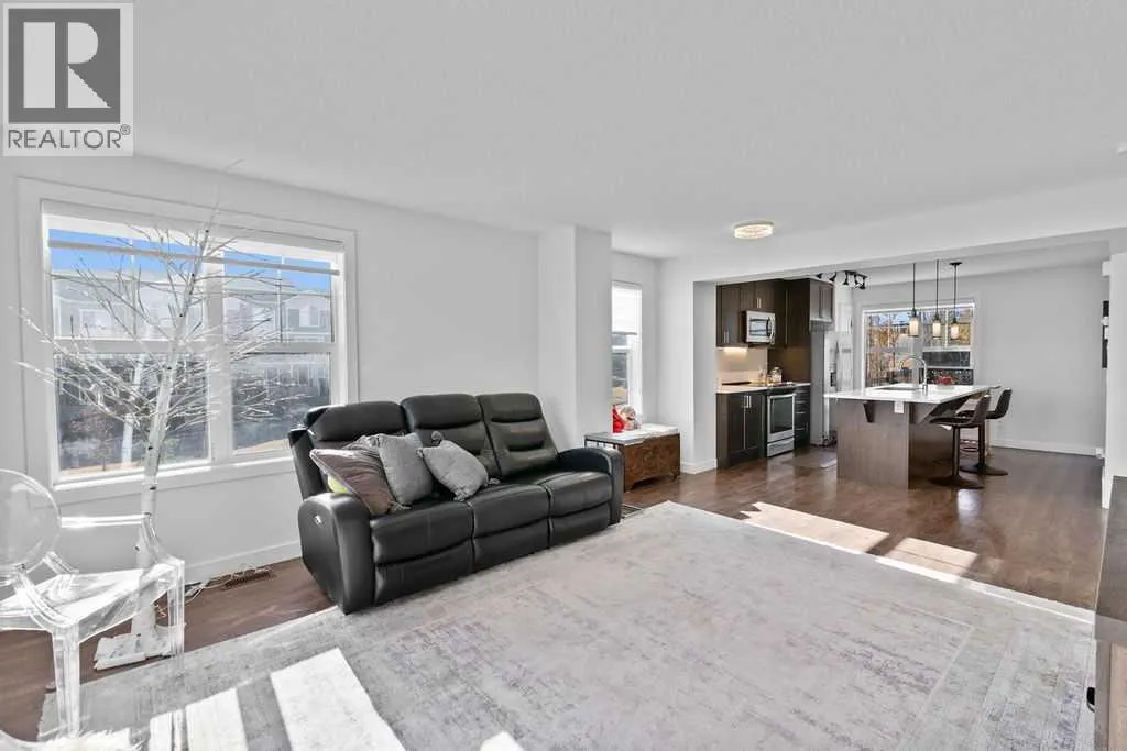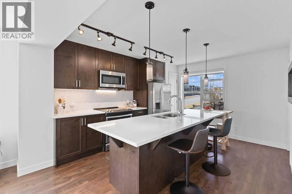 Discover the perfect blend of style, comfort, and luxury in this spectacular end-unit townhome perfectly positioned to capture beautiful green space views in the highly desirable community of Evanston. With 3 spacious bedrooms plus a versatile den, 2.5 bathrooms, a double attached garage, and high-end designer upgrades throughout, this home offers the ideal combination of elegance and practicality â all in impeccable condition. From the moment you arrive, youâll be greeted by stunning curb appeal and a meticulously landscaped, enclosed front patio â a serene outdoor space that sets the tone for whatâs inside. Step through the front door into a flexible main-level den, perfect for a home office, creative space, or playroom. This level also provides direct access to the double attached garage, ensuring comfort and convenience year-round. The main living area is open, bright, and beautifully designed to make the most of every inch. Expansive windows flood the space with natural light, highlighting the modern finishes and creating an inviting atmosphere thatâs perfect for relaxing or entertaining. The living room flows seamlessly into a dining area and a chef-inspired kitchen that will take your breath away. The gourmet kitchen features custom full-height cabinetry, quartz countertops, a designer tile backsplash, stainless steel appliances, a corner pantry, and a large central island thatâs perfect for hosting friends or preparing meals for your family. Whether youâre cooking a quick breakfast or entertaining guests, this kitchen delivers in both function and style. Off the living room, step onto your private balcony overlooking the lush green space â a peaceful retreat with no homes directly in front, offering a rare sense of privacy and tranquility. Upstairs, the primary suite is a true sanctuary, complete with a walk-in closet and a luxurious ensuite bathroom featuring contemporary fixtures and finishes. Two additional bedrooms provide plenty of space for family memb ers or guests, and a full main bathroom plus convenient upper-level laundry make daily living effortless. This home is loaded with premium upgrades, including central air conditioning, luxury vinyl plank flooring, modern lighting fixtures, and custom window coverings. Every detail has been thoughtfully curated to create a sophisticated, move-in-ready home that feels both stylish and comfortable. Evanston is one of Calgaryâs most vibrant and family-friendly communities, known for its excellent schools, scenic parks, walking paths, and an abundance of nearby amenities. Youâll be just minutes from shopping centers, restaurants, coffee shops, and fitness facilities, with easy access to Stoney Trail and 14th Street NW for quick commutes anywhere in the city. (id:27476)