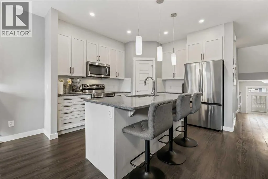 ** MOVE IN NOW - HOT NEW LISTING ** Best value in the beautiful Sage Hill community, where green space & fun are abundant! This home offers you over 2300+ sq ft of maximized "SPLENDID" air-conditioned living space for your enjoyment. BONUS: Single attached garage, full concrete driveway for two cars, and a bright sunny south/west facing backyard. You are welcomed into a lovely open floor plan with wide plank laminate floors & boasting great windows that invite natural daylight in, along with a smooth transition that leads into a great kitchen with an oversized central island featuring a sink/flush eating bar, corner pantry, stainless steel appliances which include a fridge, smooth top range, built-in dishwasher and over the range microwave. The great room enjoys views from a large window and 9' main-floor ceilings. Upstairs: beautiful primary bedroom with a walk-in closet & 3-piece private ensuite. Plus, a central bonus room area, 2 more bedrooms & a full 4-piece bathroom. The basement is fully finished with a super-sized area at 18' x 15' and features another full bathroom, storage, and a utility area. BONUS: High ceilings featured in the primary bedroom, Quartz countertops throughout, Staircase railings, Supersized yard, shed, 10' x 10' deck, extra-wide driveway for 2-car parking, Newer roof + gutters + eaves and siding repairs completed. This is your next home, and please add it to your 'Must See List! Situated within walking distance to the park(s) and only minutes away from the newly developed shopping area, it provides the convenience of having everything you could need fitting in your own neighborhood. Restaurants, groceries, daycare, medical and coffee shops all create a wonderful community and lifestyle for you to enjoy. With quick access to Symon Valley Parkway and Stony Trail while soaking up nature with a environmental reserve as your surroundings, Sage Hill is the ideal choice to start creating new memories. Discover today and welcome home. Call your fr iendly REALTOR(R) to book a viewing! (id:27476)