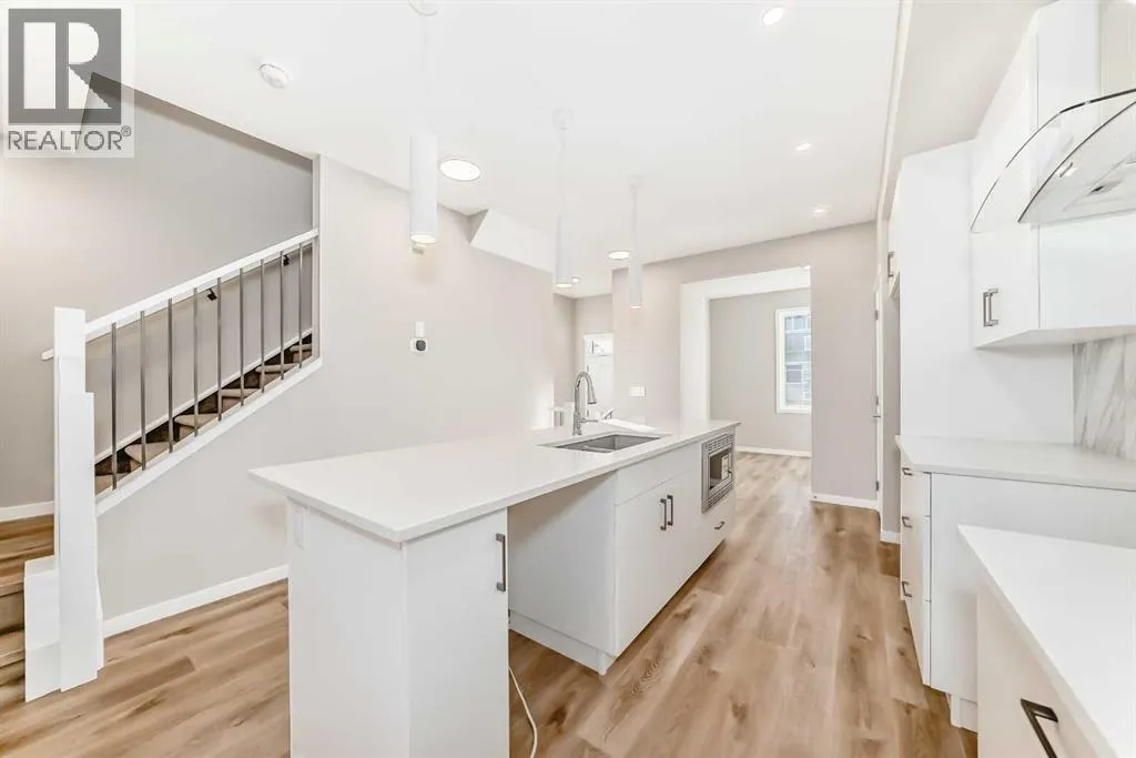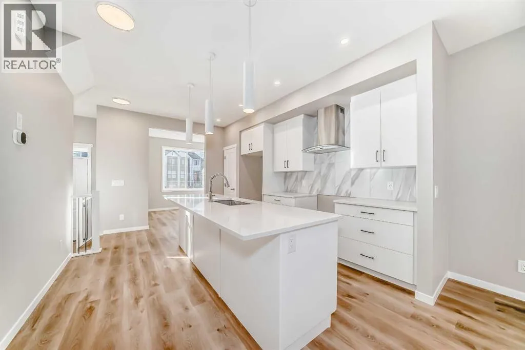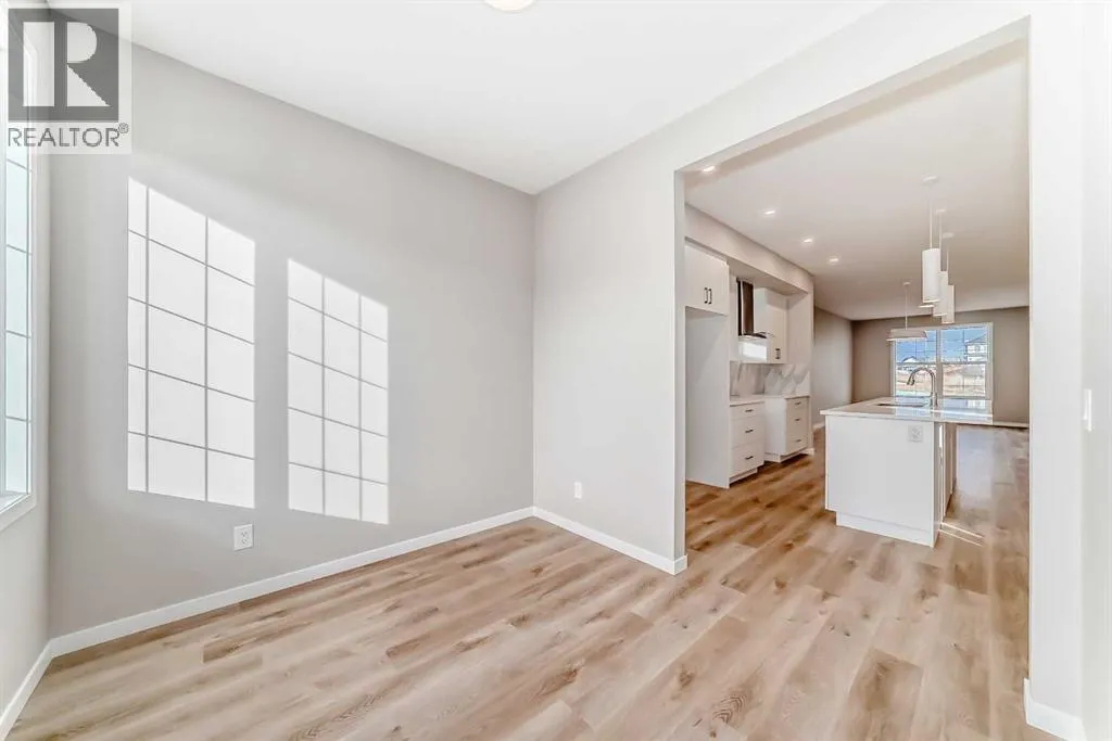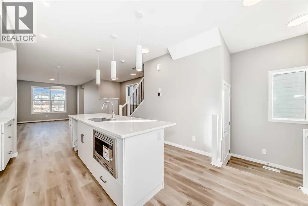 Welcome to this brand-new âRaynâ in Mahoganyâa home that blends stylish family living with future flexibility. A separate side entrance offers the option for a private lower-level development or suite down the road (A secondary suite would be subject to approval and permitting by the city/municipality), while the main floor is designed for everyday ease with warm, natural luxury vinyl plank and clean, modern finishes throughout. At the heart of the home, the central kitchen shines with timeless white cabinetry raised to the bulkhead, bright white quartz countertops, and a white marble-style backsplash that wraps the stand-alone chimney hood fan for a seamless, upscale look. Stainless steel appliances and an oversized island make meal prep and casual entertaining effortless. The dining area sits perfectly between kitchen and livingâroomy enough for an extended tableâwhile the rear living room enjoys floor-to-ceiling windows and a smart back entry with a 2-piece bath. Just off the kitchen, a versatile flex room adapts to your life (home office, play space, fitness corner), and a raised homework/tech nook overlooks the main floorâorganized, functional, and surprisingly fun. Upstairs, a cozy bonus room anchors the level for movie nights or quiet reading. The primary retreat is tucked at the back with an oversized window, a generous walk-in closet, and a chic 4-piece ensuite featuring dual sinks and a full-size showerâfinishes youâd expect in a much larger home. Two additional bedrooms are well-proportioned, and the upstairs laundry and linen storage keep day-to-day living simple and tidy. Live the four-season lake lifestyle Mahogany is known for. Centered around Calgaryâs largest freshwater lake and a 21-acre beachfront, the community offers private resident beaches, swimming, skating, and year-round events. Stroll the scenic wetlands and extensive pathway network, or head to the Urban Village for coffee shops, restaurants, services, and everyday conveniences. Families appreciate nearby schools and playgrounds; commuters value quick access to Stoney Trail, Deerfoot Trail, and the Seton Districtâs amenities (South Health Campus, shops, dining, and recreation). Mahogany pairs resort-style living with real-world convenienceâmaking home feel like a getaway, every day. (id:27476)