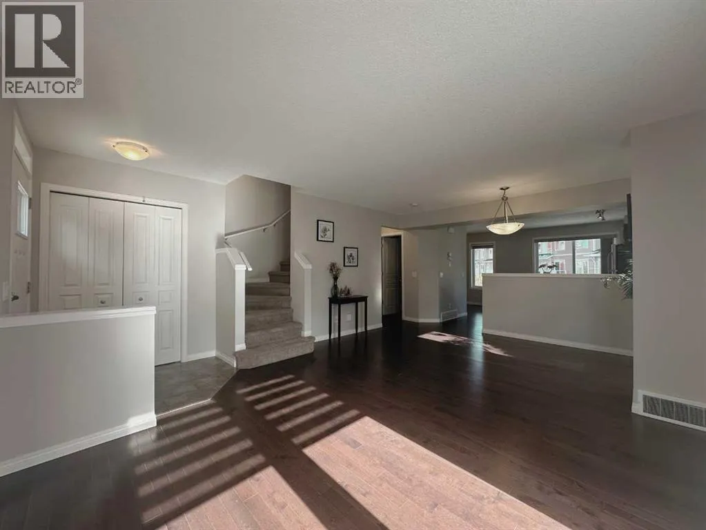 **OPEN HOUSE SATURDAY NOV. 15 FROM 2-4PM**. Welcome to this RARE OPPORTUNITY to own a Freshly Renovated Move-in-ready 2-bedroom, 2.5-bathroom, double garage END UNIT townhome in Muskoka! Perfectly located across from Auburn Bay Station Shopping Centre, walking distance to off-leash park, schools, playgrounds, tennis court, and just steps from Auburn Bayâs 43-acre lake, private parks, and beaches. This home offers a perfect balance of quiet, convenience and leisure. Step inside, youâll be greeted by a modern, warm, cozy, bright, and welcoming atmosphere with FRESH PAINT THROUGHOUT, NEW WINDOWS BLINDS, NEW PARTIALLY FINISHED BASEMENT, and COUNTLESS UPGRADES. The main floor boasts a spacious open-concept living area with expansive sunlit windows and beautiful hardwood floors throughout. The stylish kitchen showcases granite countertops, backsplash tile, modern appliances, a large island, and ample counter space. The kitchen leads to a private balcony and a flex room with a versatile space for a dining area or home office. Upstairs, youâll find two spacious master bedrooms, each with its own 4 piece en-suite bathroom and walk-in closet, providing ultimate privacy and comfort for homeowners, roommates, or guests. Full laundry room/linen closet is also located on this upper level, providing absolute convenience. The partially finished basement, with plenty of storage options or fitness option, connects to the oversized double attached garage for secure parking and additional storage space. Incredible Upgrades throughout include: Fresh paint throughout; New windows blinds; New partially finished basement; Bathrooms with granite countertops and two added drawers in vanity; Hardwood, tile and carpet flooring; Huge upgraded kitchen with beautiful granite counter tops, gorgeous kitchen backsplash tile, 12â extended island counter top, and stainless steel appliances; Balcony off the main level; Outlet to the basement; Barbeque gas line rough-in for easy barbeque entertainment. Living in the sought-after LAKE community of Auburn Bay and Auburn Bay Station Shopping Centre means convenient shopping; lake-centered lifestyle with walking trails, parks, playgrounds, year-round activities at the community lake; walking distance to the South Health Campus; quick access to Stoney Trail and Deerfoot Trail; easy access to downtown: BRT bus (302), and near future LRT stations, and so much more! Whether you are first-time buyer, downsizer, or investor, this Freshly Renovated, Professional cleaned, and Move-in-ready End-unit townhouse is the perfect blend of quiet, comfort,modern style, and unbeatable location! Donât miss your opportunity! Welcome to your new home with QUICK POSSESSION! (id:27476)
