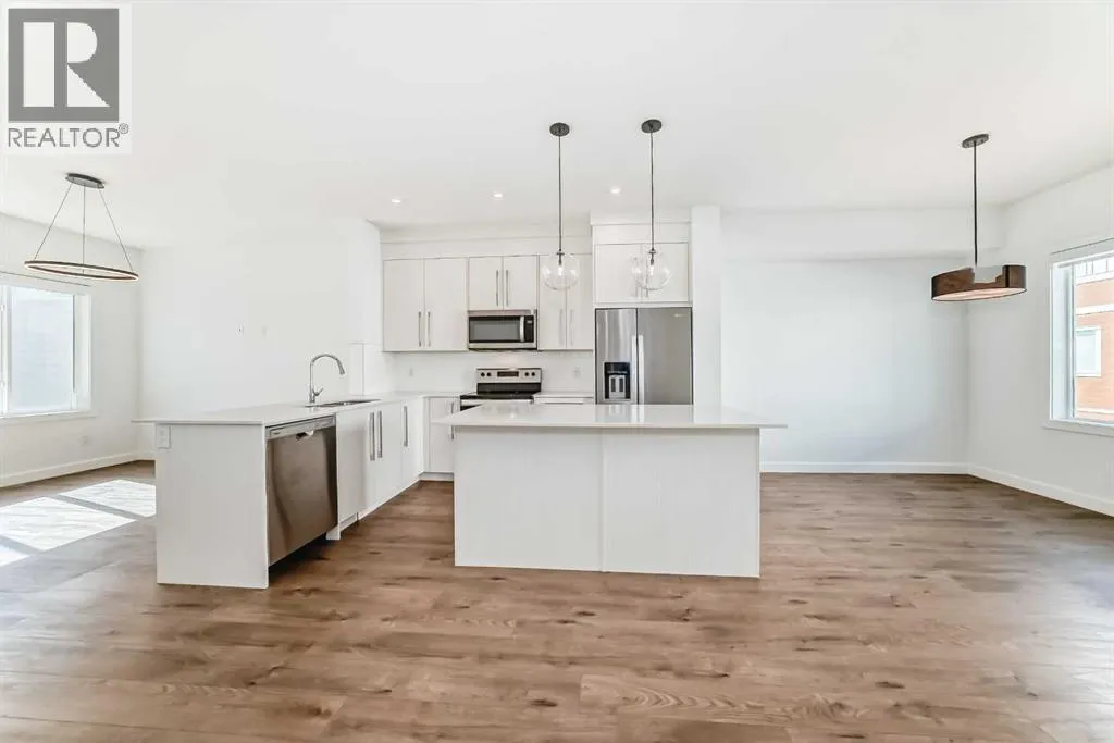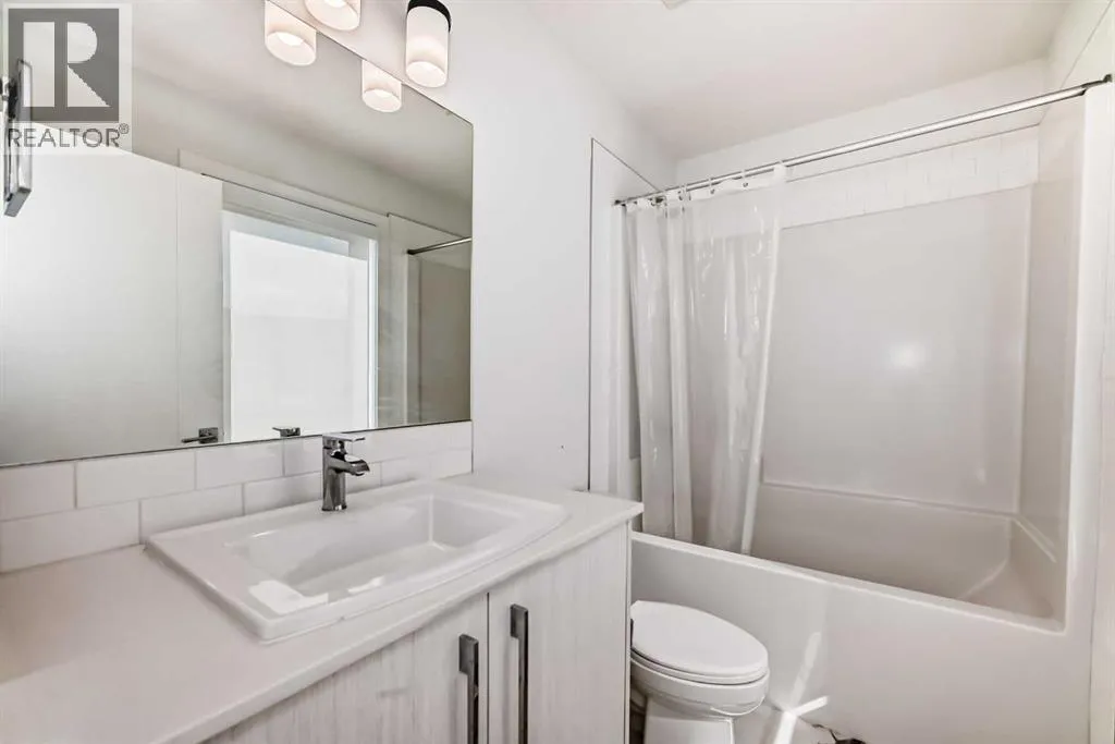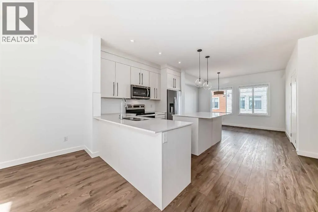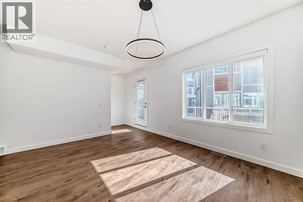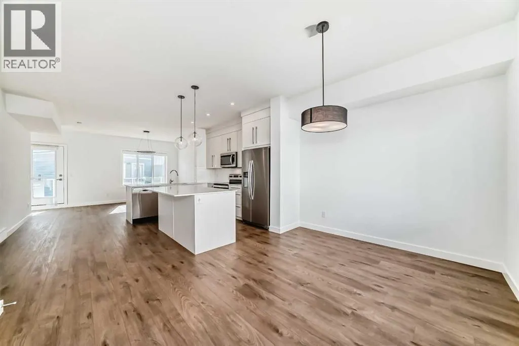 Ready to move-in/ 3-storey townhouse/ 3+1 bedrooms/ Double Garage attached/ Low maintenance fee. Welcome to this townhouse in Pine Creek, a development that offers a unique opportunity to own at a very competitive price and be part of Southwest in Calgary. Double garage attached on main level offers the ultimate convenience of direct access to your home. Right from the main level you get a full bedroom that could be used as the office. The second level comes with an open concept living with a kitchen tucked in the center to offer the needed separation for a living and dining area. The kitchen is a culinary delight, offering quartz countertops, stainless steel appliances, full-height cabinetry, a timeless tile backsplash, and a center island with an eating bar. This level also offers a sizable balcony equipped with BBQ gas line. The primary suite serves as a private retreat with a high ceiling, oversized window, spacious walk-in closet, and luxurious ensuite. Two additional bright bedrooms share a modern 4-piece main bathroom, while laundry facilities on the upper level add further convenience. Come and settle in the growing community of Pine Creek, short drive to grocery stores, shops, restuants, and other amenities anyone could need at Silverado shopping Center. Your life is convenient in Pine Creek with easy travel near and far through quick access to Calgaryâs Ring Road and Macleod Trail, plus the Somerset / Bridlewood LRT station. Contact us today to schedule a viewing and experience the best of Pine Creek living. (id:27476)