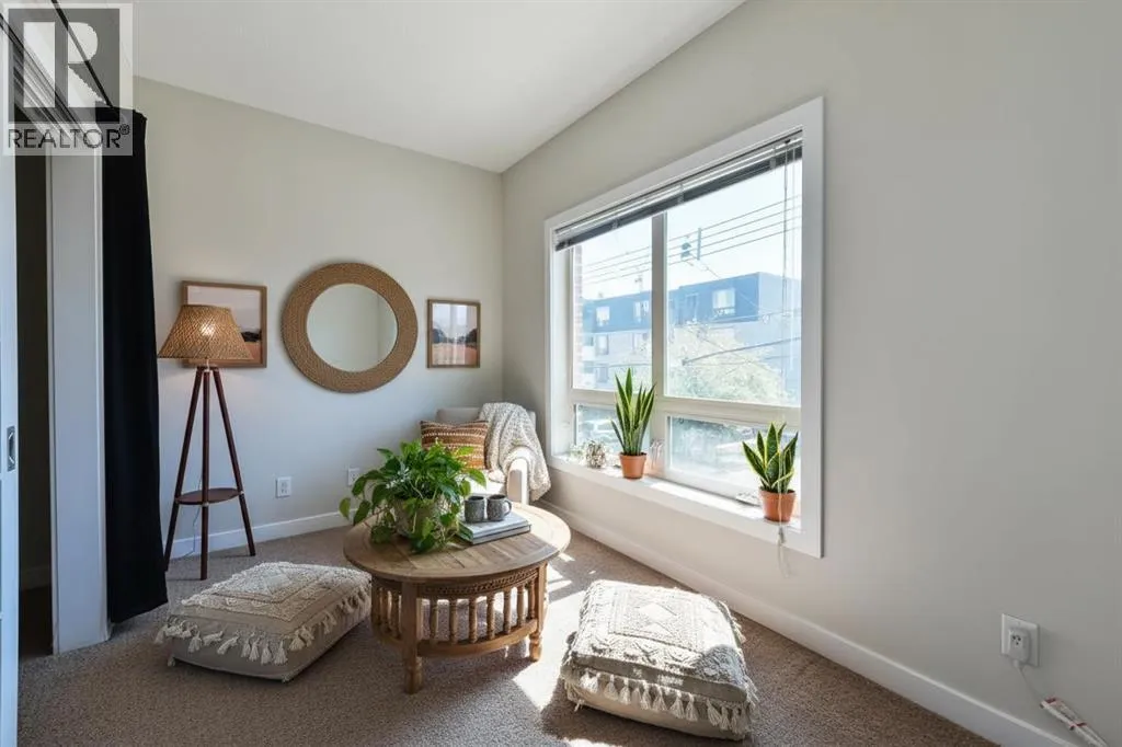 Your new urban retreat in the vibrant community of Sunalta! This 1-bedroom plus den condo offers the perfect blend of comfort, style, and functionality. The spacious den is ideal for a home office, creative studio, or guest room, perfect for modern living.Step into the cozy living room that flows seamlessly onto a large private South balcony, perfect for relaxing or entertaining. The sleek dark kitchen cabinetry adds a touch of elegance and pairs beautifully with modern appliances, & ample counter space.Additional features include titled underground parking, a separate storage locker, and in-suite laundry for ultimate convenience. Residents also have access to a lovely outdoor secured courtyard. Located just minutes from downtown Calgary, the C-Train, parks, and trendy cafes, this condo offers an unbeatable location and lifestyle. (id:27476)