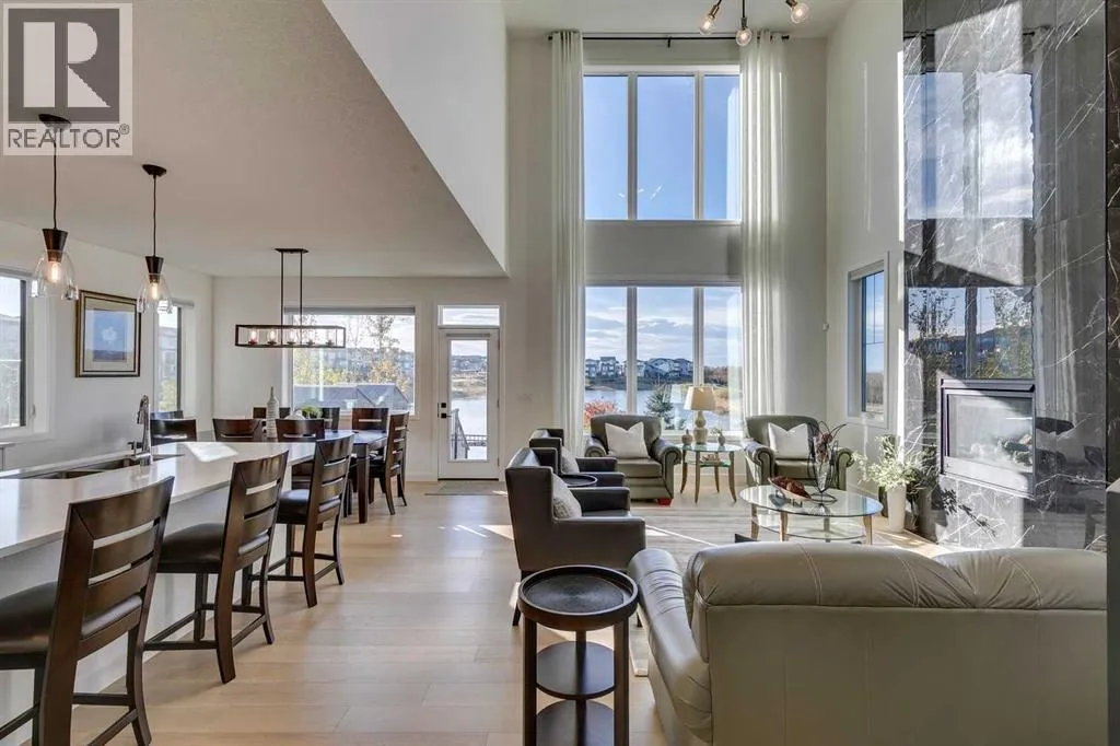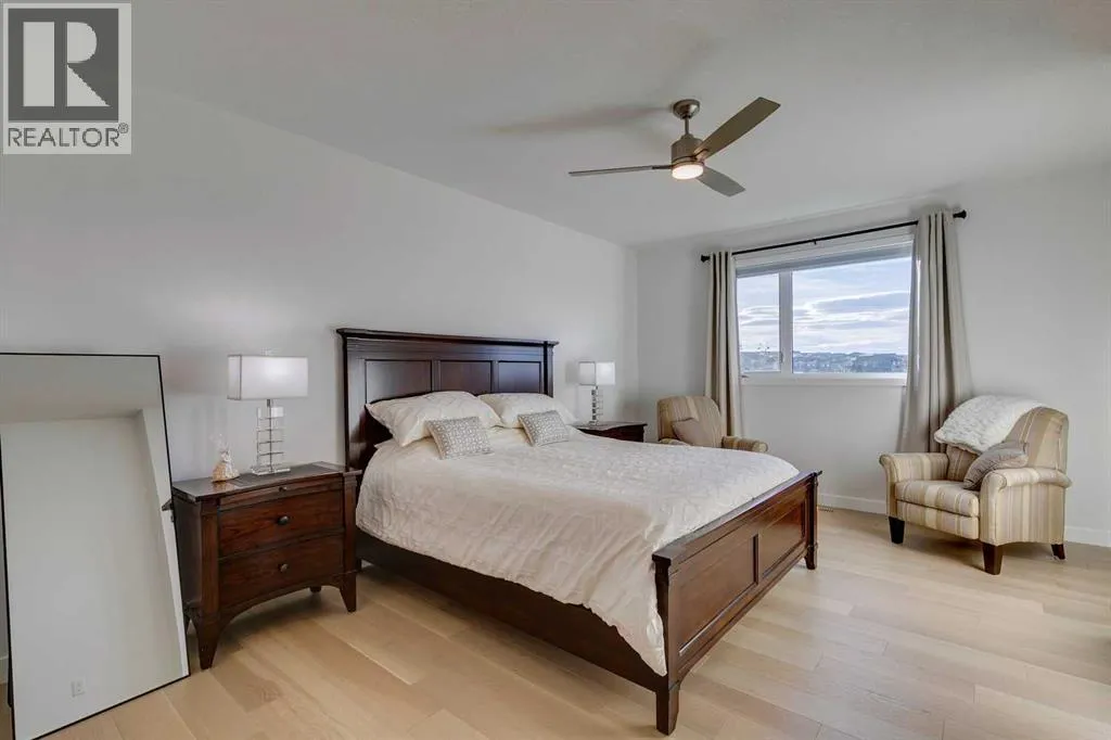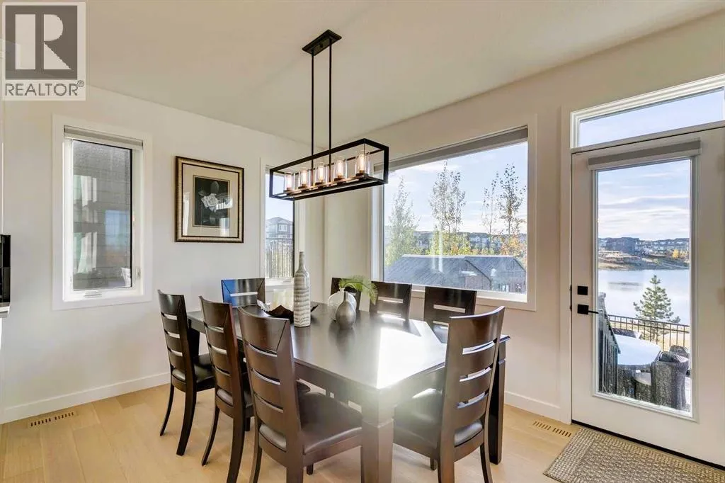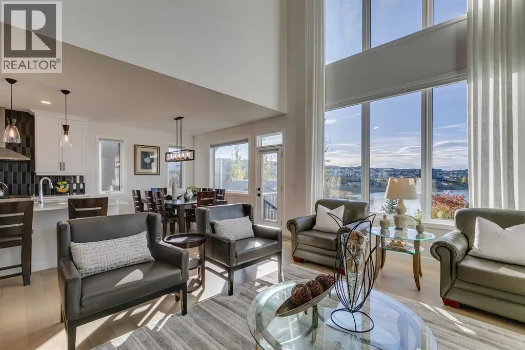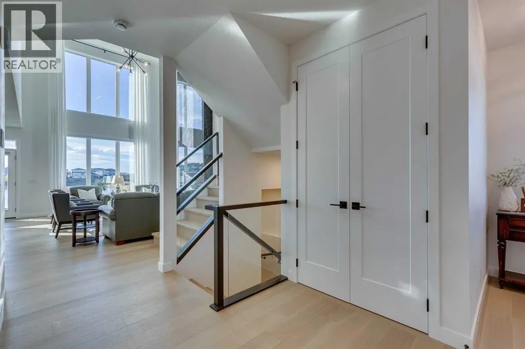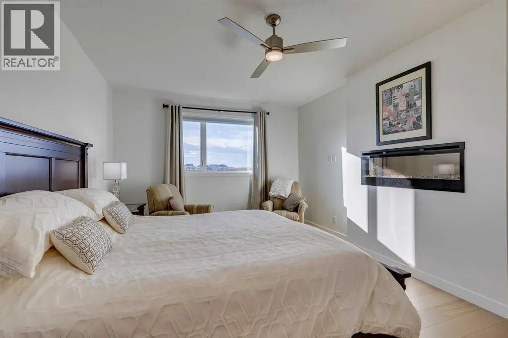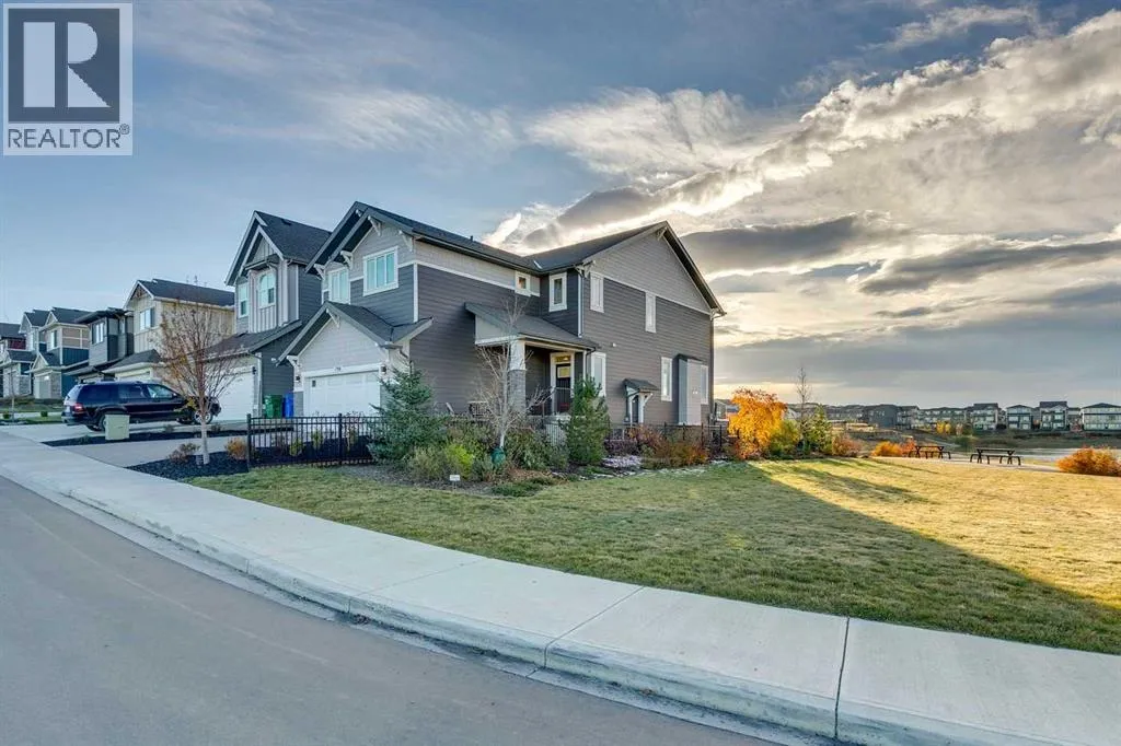 In like-new condition, this spectacular custom-built and extensively upgraded 2,430 sq. ft. 5-bedroom, four full-bath home will take your breath away. Located in Alpine Park, one of southwest Calgary's premier new home communities, this home backs west onto a community pond and a lush green space with sweeping views. Two-storey ceilings and windows with a full-height two-storey fireplace grace the sundrenched great room. Upgraded 8' island chef's kitchen features full-height shaker-style cabinets, soft-close doors and drawers, quartz countertops, Whirlpool stainless-steel appliances with a 6-burner commercial-quality gas stove, and an air fryer microwave. Tempered 10-mil glass railings lead to the upper level, featuring 3 large bedrooms, 2 full baths, and a large bonus/family room. The decadent primary bedroom has stunning mountain and pond views, a luxurious ensuite with a soaker tub, tile floors, quartz countertops with undermount sinks, and a king-size walk-in closet. The main floor offers a den/bedroom and is supported by a full bath to supply an "age in place" concept, with laundry on both the main floor and in the basement. Engineered hardwood floors, a substantial upgrade from vinyl plank, grace the main floor, the staircase to the upper bedrooms and the primary bedroom. The professionally developed basement features a family room/media space, a games area (billiards), a 5th bedroom, a full bath, and RI for a future bar/kitchen. Professional landscaping offers patios and expanded decks to maximize the pond and forest views. The garage has an epoxy floor, is drywalled to home-finishing standards, features custom shelving, and has a 12-ft. ceiling for loft storage or a car hoist. Exposed aggregate steps and patio, composite decking used on the front porch, A/C, triple pane windows, custom window coverings, side door for future suite (subject to civic approvals), full height tile in all baths, 9' ceilings through all levels, knock down stipple, upgraded lighting and plumbing, 8' interior doors, romantic electric fireplace in the primary bedroom, 200 amp service, RI for hot tub, water softener, high-end finishes, quality design throughout and views, views, and views! (id:27476)
