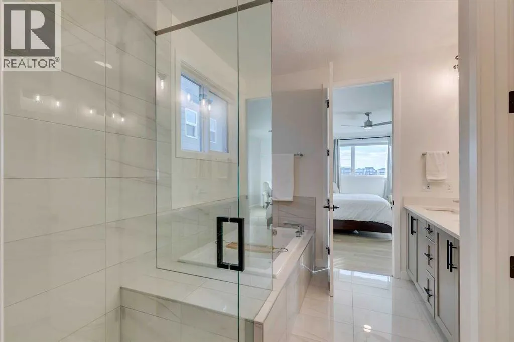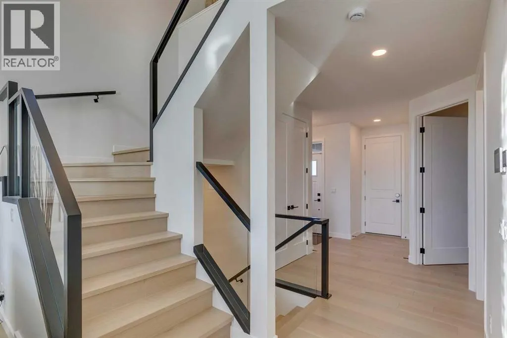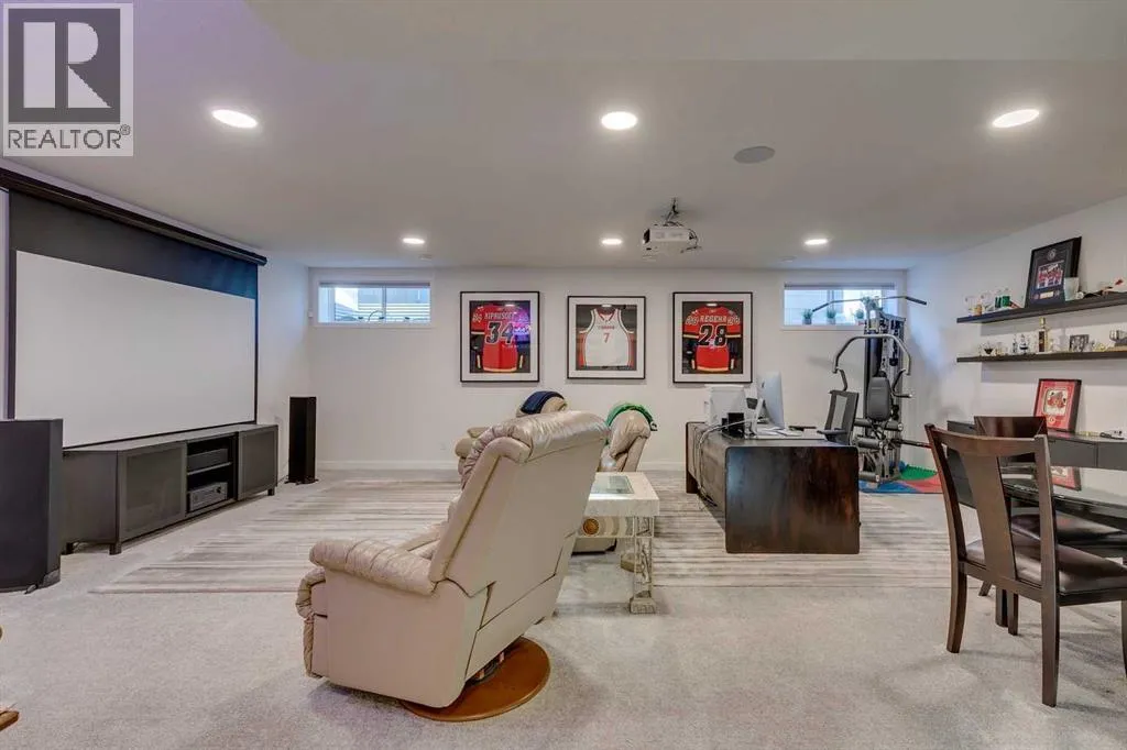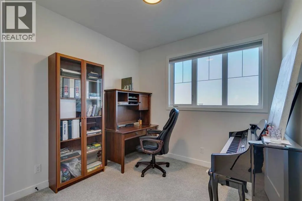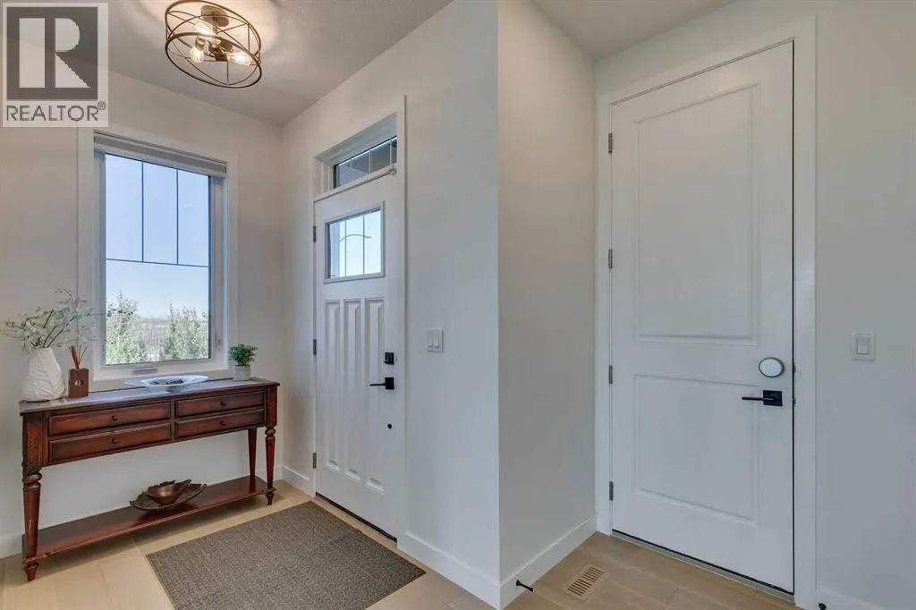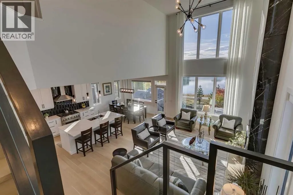 In like-new condition, this spectacular custom-built and extensively upgraded 2,430 sq. ft. 5-bedroom, four full-bath home will take your breath away. Located in Alpine Park, one of southwest Calgary's premier new home communities, this home backs west onto a community pond and a lush green space with sweeping views. Two-storey ceilings and windows with a full-height two-storey fireplace grace the sundrenched great room. Upgraded 8' island chef's kitchen features full-height shaker-style cabinets, soft-close doors and drawers, quartz countertops, Whirlpool stainless-steel appliances with a 6-burner commercial-quality gas stove, and an air fryer microwave. Tempered 10-mil glass railings lead to the upper level, featuring 3 large bedrooms, 2 full baths, and a large bonus/family room. The decadent primary bedroom has stunning mountain and pond views, a luxurious ensuite with a soaker tub, tile floors, quartz countertops with undermount sinks, and a king-size walk-in closet. The main floor offers a den/bedroom and is supported by a full bath to supply an "age in place" concept, with laundry on both the main floor and in the basement. Engineered hardwood floors, a substantial upgrade from vinyl plank, grace the main floor, the staircase to the upper bedrooms and the primary bedroom. The professionally developed basement features a family room/media space, a games area (billiards), a 5th bedroom, a full bath, and RI for a future bar/kitchen. Professional landscaping offers patios and expanded decks to maximize the pond and forest views. The garage has an epoxy floor, is drywalled to home-finishing standards, features custom shelving, and has a 12-ft. ceiling for loft storage or a car hoist. Exposed aggregate steps and patio, composite decking used on the front porch, A/C, triple pane windows, custom window coverings, side door for future suite (subject to civic approvals), full height tile in all baths, 9' ceilings through all levels, knock down stipple, upgraded lighting and plumbing, 8' interior doors, romantic electric fireplace in the primary bedroom, 200 amp service, RI for hot tub, water softener, high-end finishes, quality design throughout and views, views, and views! (id:27476)