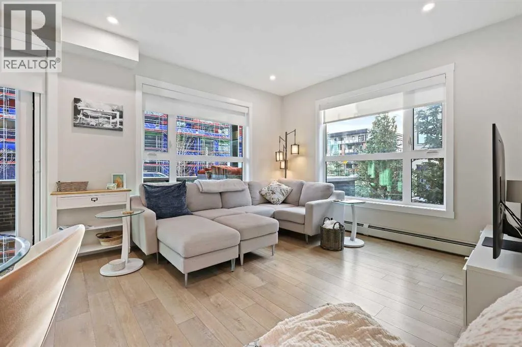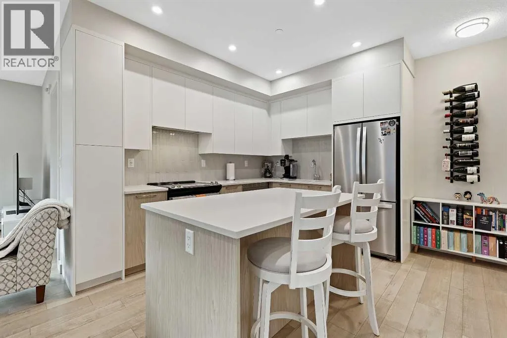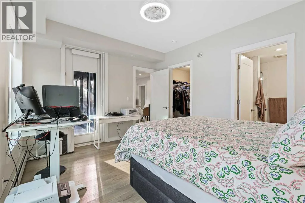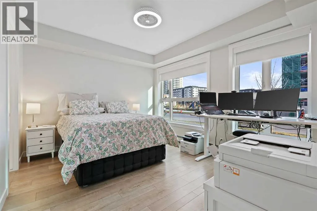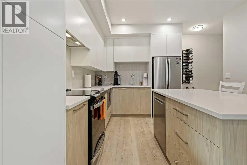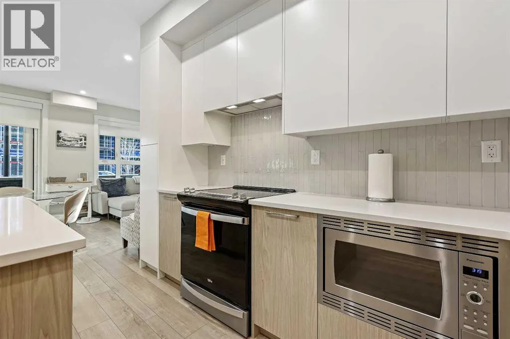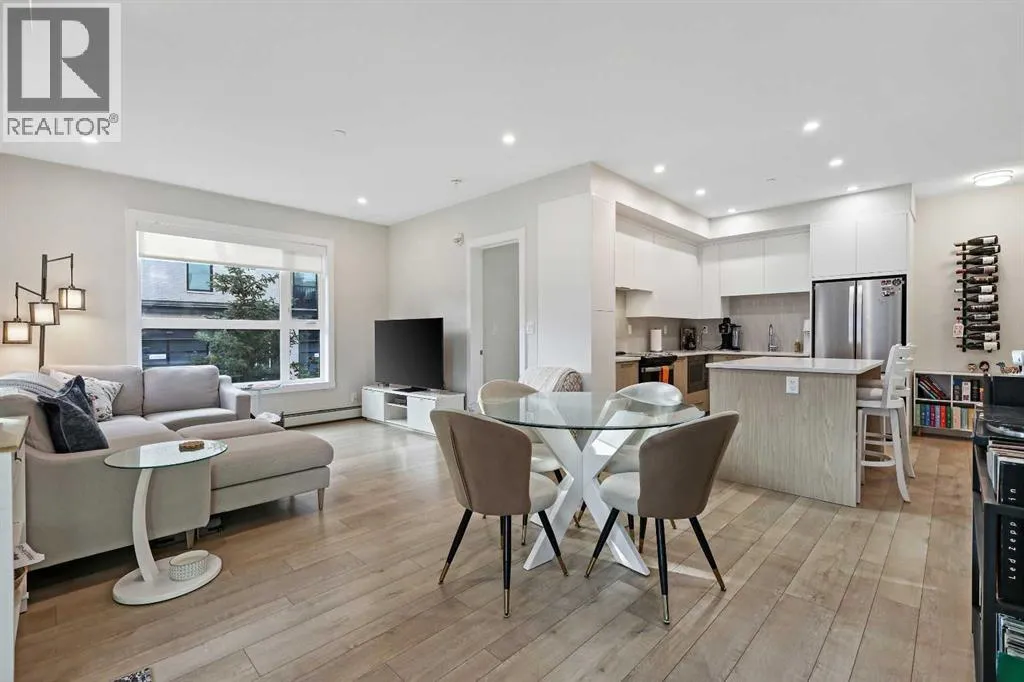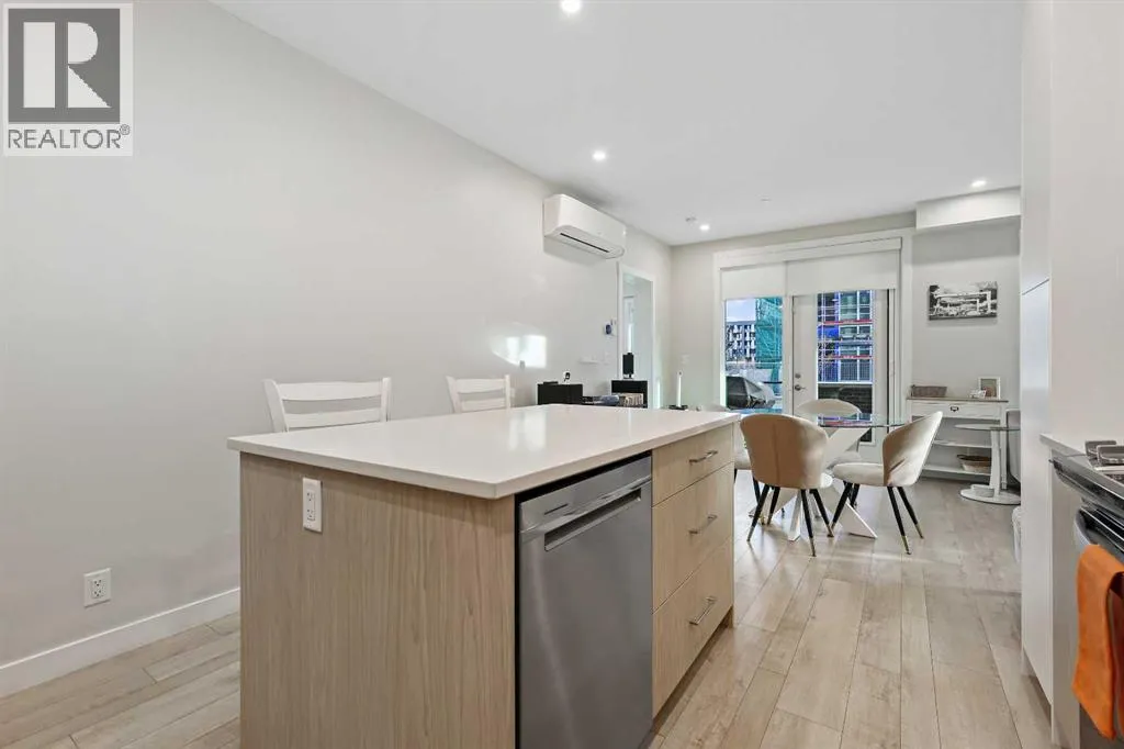 ** OPEN HOUSE SATURDAY, NOVEMBER 15 FROM 1:00PM - 4:00PM **Welcome to Capella in Calgaryâs University District! This beautiful main-floor condo perfectly combines modern style, comfort, and convenience in one of the cityâs most walkable and desirable communities. Offering nearly 1,000 sq. ft. of bright, open living space, this two-bedroom, two-bathroom home provides an abundance of natural light thanks to its sunny southern exposure. Step out to your spacious south-facing patio, ideal for entertaining family and friends, or just relaxing and enjoying warm, summer nights.Inside, the inviting open-concept layout features a sleek, contemporary kitchen with quartz countertops, a large island with seating, built-in microwave and hood fan, an electric range, and a pantry for extra storage. The kitchen flows effortlessly into the dining and living areasâperfect for entertaining guests or unwinding after a long day.The spacious primary suite features a 5-piece ensuite, including dual vanities, a walk-in shower, soaker tub and private water closet. This home also comes with a good-size second bedroom, a full public/guest bathroom with a tub/shower combo, and a laundry room with space for shelving complete the well-designed layout. Also included with this home: an in-suite wall air conditioning unit, two upgraded ceiling fans, two titled heated underground parking stalls, two titled storage lockers, and access to the on-site fitness center. Enjoy the very best of the University District lifestyleâsteps from parks, walking paths, Market Mall, U of C, Alberta Childrenâs and Foothills Hospitals, and local favourites like OEB Breakfast Co., Village Ice Cream, Monogram Coffee, The Canadian Brewhouse, Save-On-Foods plus so much more! Whether you are downsizing, investing, or seeking a contemporary, low-maintenance home in a thriving community, this home is ready to welcome you! (id:27476)