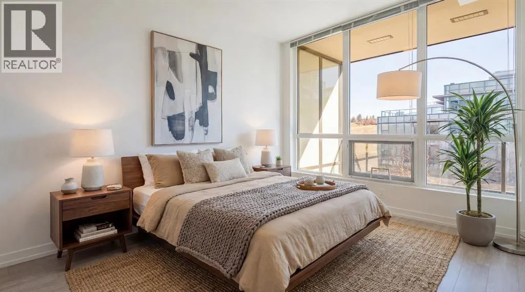 Experience riverside downtown living at its best in this quiet, courtyard-facing 1-bedroom suite at the Outlook at Waterfront. Positioned on the third floor, the unit overlooks a landscaped and secured inner courtyard with pleasant views toward Crescent Heights, giving you daylight and privacy while remaining steps from the Bow River pathway and downtown amenities. Inside, the suite offers an efficient, open floor plan with natural light and a calm outlook. Large windows frame the courtyard view and bring in consistent daylight. The living area flows to a practical kitchen (with luxury built-in appliances, quartz counters, clean lines) and a kitchen island ideal for weekday breakfasts or hosting friends. In-suite laundry and secure storage complete the functional conveniences you want in downtown living.The building elevates everyday life with a full amenity roster: fully equipped gym and yoga room, hot tub and sauna for post-run recovery, a large ownersâ lounge for gatherings or remote work, and 24/7 concierge for deliveries and guest access. One assigned secured, heated underground parking stall is included, plus secure bike storage and visitor parking for guests.Location is a standout â launch runs, bike expeditions, or leisurely walks on the Bow River pathway, grab coffee and dining in Eau Claire, walk to the Core Shopping, or hop on transit for easy access across the city. The building also sits beside the planned Eau Claire redevelopment (although you are not facing it), a major long-term enhancement that will add retail, green space and connectivity to the riverfront. Right at the doorsteps to Prince's Island Park, Chinatown, Superstore, East Village, LRT access and across the newly minted Eau Claire Athletic Club.Ideal for downtown professionals, investors, or anyone seeking a low-maintenance urban home with top-tier building amenities and true proximity to the river. Move-in ready and easy to show, arrange a private viewing with your favourite Realt or today! (id:27476)