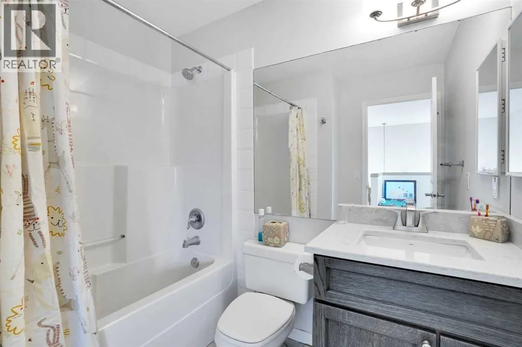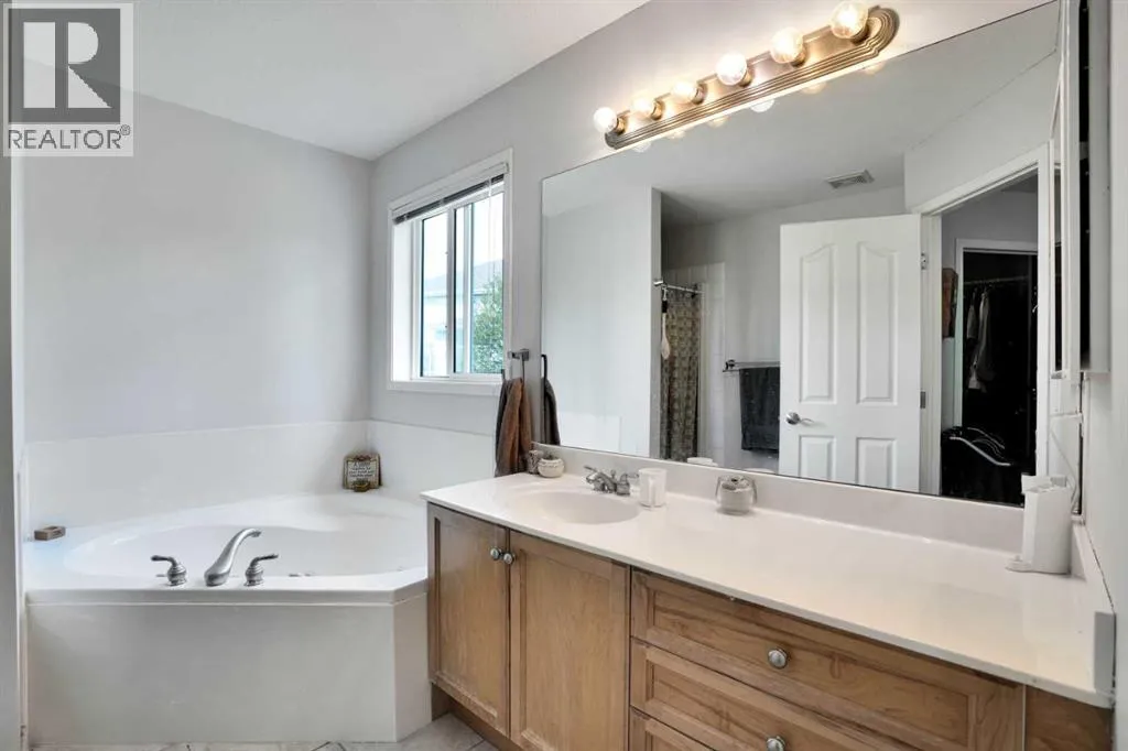 Welcome home to the sought-after community Rocky Ridge where natural beauty meets every day convenience. This well maintained 2,364 sq ft, 4 bedroom, 4 bathroom home is situated on a large pie-shaped lot with sunny, southern exposure. Inside, you're greeted by a soaring two-storey foyer, an open-concept main floor featuring hardwood floors, a cozy corner gas fireplace, a friendly kitchen with stainless steel appliances, and a functional island with a raised breakfast bar. The bright dining area offers direct access to the backyard, perfect for indoor-outdoor living. French doors open to a versatile flex room ideal for a home office, a convenient half-bath, a laundry room and access to the double attached heated garage complete the main level. Relax in the spacious bonus room where a second gas fireplace and large bright windows allow the light to cascade in...the perfect spot to unwind and take in the mountain views. The generous primary suite features a spa-like ensuite with a jetted tub, while two additional bedrooms and a full bath provide plenty of space for family or guests. The fenced, private back yard is complete with a patio, mature trees and a natural gas hook up for you BBQ or patio heater. The partially finished basement includes a completed bedroom that is a perfect guest room as well as a beautiful full bath with heated tile floors. The partially finished recreation room has the framing and wiring in place and a third gas fireplace (included) has been professionally installed. A large, new central air conditioner (2024) will keep you cool in the summer. The attached double garage is heated, keeping your vehicles well protected from the outside winter elements. Recent updates such as fresh paint (August) and brand-new carpet (August) throughout add to the move-in readiness of this terrific family home. All this, just minutes from top-rated schools, transit, shopping, parks, and year-round outdoor amenities. Donât miss your chance to own this terrific family property and call Rocky Ridge home! Be sure to ask about the closing inducement too! (id:27476)