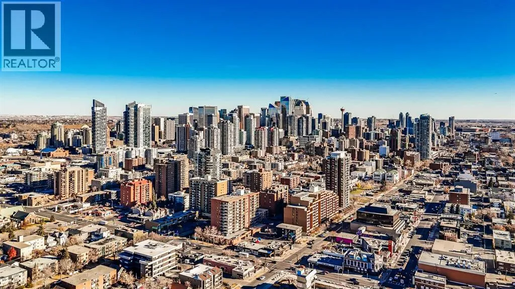 This is it!! Welcome to this gorgeous, spacious 2 bedroom, 2 bathroom condo located in the highly sought-after neighbourhood of Lower Mount Royal. With sweeping views of the downtown skyline, this residence offers an exceptional inner city living experience. From the moment you step into the front door, you can feel how open and spacious the home is. The high ceilings further enhance the feeling of openness, giving the home a grand and welcoming ambiance. The kitchen features beautiful granite countertops, timeless shaker cabinets, stainless steel appliances including a gas stove and a sit up island that is perfect for hosting and entertaining guests. The living and dining areas are spacious and allow for easy living, room for many guests or to relax after a long day. The beautiful fireplace creates warmth and anchors the living area with an elegant touch. The two bedrooms are amply sized and offer comfortable retreats for relaxation and sleeping. The Primary bedroom features a luxurious 5-pc ensuite with dual vanities, stand up shower, large soaker tub and spacious walk-in closet, providing a private oasis for unwinding after a long day. The second bedroom is equally well sized and has a convenient 4-pc bathroom close by. The balcony offers room for seating with sweeping city views and a gas outlet for bbqing year round. This home also includes a titled, underground parking spot located conveniently beside the elevator and a HUGE storage locker for storing seasonal items. Located in Lower Mount Royal, this condo offers an exceptional location that is surrounded by a vibrant community. It's a short walk to 17th Avenue's trendy boutiques, well known restaurants, fun cafes and numerous local parks. With its prime location & spacious layout, this condo offers a rare opportunity to experience luxurious inner city living! Book your showing today! (id:27476)