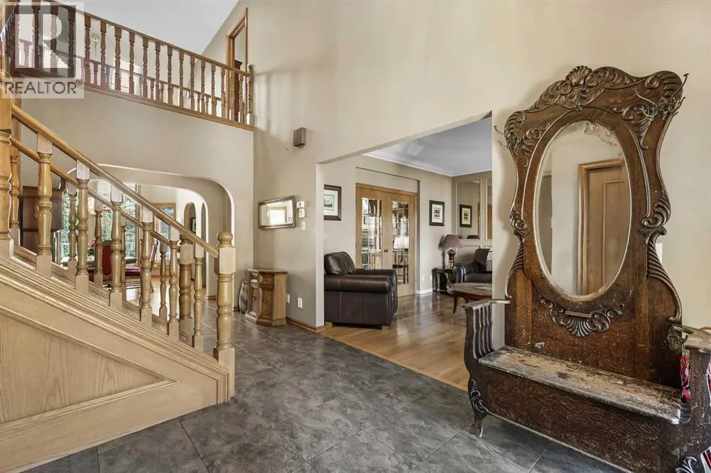 Elegant Estate Home Backing Douglasdale Golf Course. Welcome to 322 Douglas Woods Court SE, a remarkable estate home perfectly positioned on a quiet cul-de-sac and backing directly onto the 17th hole of the Douglasdale Golf Course. This spacious residence combines timeless design with modern comfort, offering almost 4,000 sq. ft. of living space designed for family living and entertaining. Step inside and be greeted by grand vaulted ceilings that flood the main floor with natural light. The main level features hardwood flooring throughout, a formal dining room, a welcoming living room, and a cozy family room with a feature fireplace. The chefâs kitchen is beautifully appointed with stainless steel appliances, stone countertops, and ample cabinetry making it a perfect gathering spot. Off the kitchen, the full-length deck with glass railings provides sweeping views of the golf course and an ideal space for summer evenings. Upstairs, youâll find three generously sized bedrooms plus a spacious bonus room. The primary retreat is a true sanctuary, complete with his-and-hers walk-in closets and a spa-like en-suite featuring double sinks, a large tiled shower, and a relaxing soaker tub. The walkout basement expands your living options with bright, versatile spaces that open directly to the backyard. This level also features a fourth bedroom, additional storage, and ample space to create a games area, home gym, or theatre space. With its premium location, impressive layout, and stunning views, this home offers the best of Douglasdale living, just steps from the golf course, close to pathways, schools, and with easy access to Deerfoot Trail. Book your private showing today! (id:27476)