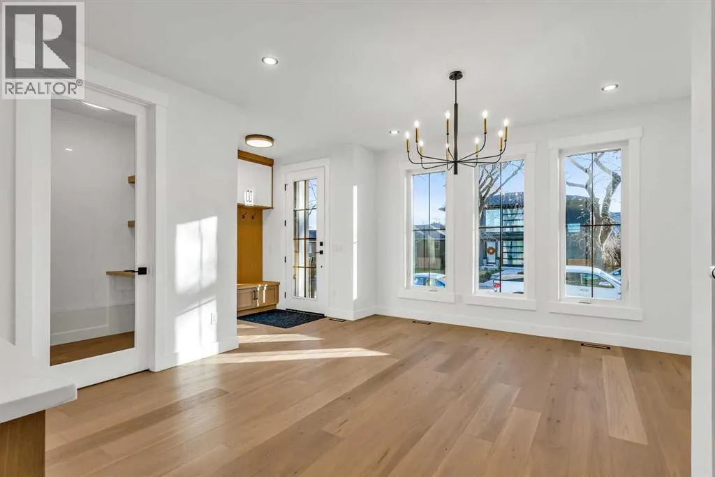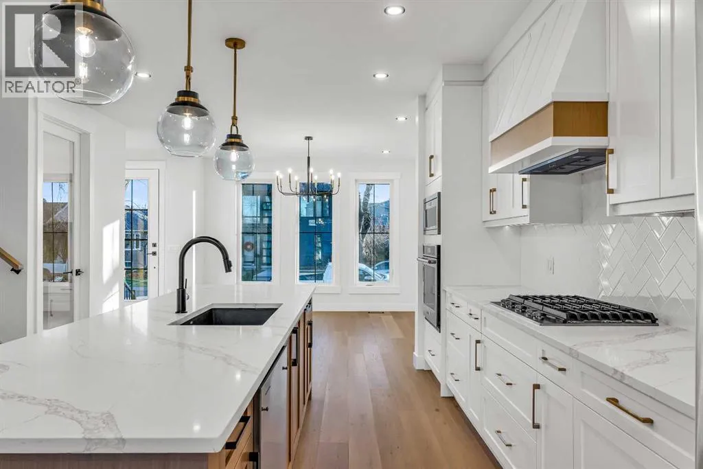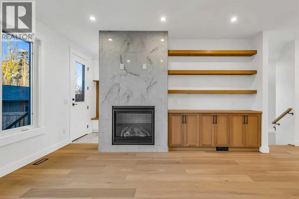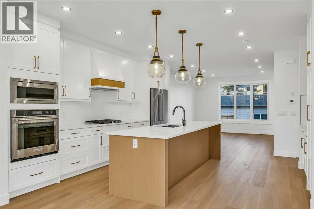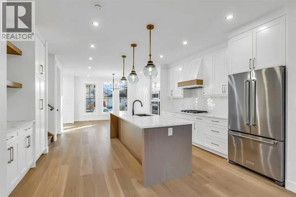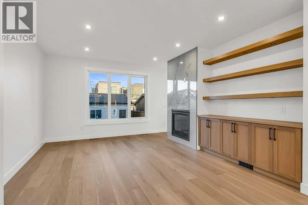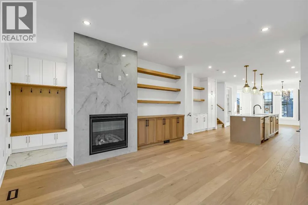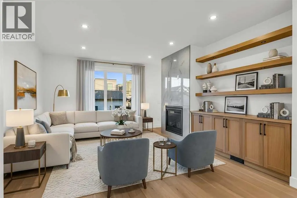 Located on a quiet, tree-lined street in Mount Pleasant, this brand-new home combines sophisticated craftsmanship with a functional family-friendly layout. The modern HARDIE BOARD exterior is paired with a SOUTH-FACING FRONT PATIO encouraging peaceful morning coffees. Step inside to a bright front foyer with CUSTOM MILLWORK BUILT-INS leading to a formal beautiful dining room accented by a WOOD FEATURE WALL that sets the tone for the homeâs elegant design. The GOURMET KITCHEN is a chefâs dream with a galley-style layout that encourages culinary creativity. High-end KITCHENAID APPLIANCES include a GAS COOKTOP and BUILT-IN WALL OVEN and MICROWAVE, complemented by STONE COUNTERS, UNDER-CABINET LIGHTING, a GARBAGE PULLOUT, and an OVERSIZED CRUSHED GRANITE SINK. A walk-through area off the kitchen offers both a WALL PANTRY with APPLIANCE COUNTER and a separate ENCLOSED ROOM that can serve as a PANTRY or MAIN FLOOR OFFICE. The open-concept living room is warm and welcoming with CUSTOM BUILT-IN SHELVING and a GAS FIREPLACE overlooking the BACKYARDâperfect for quiet evenings or gatherings with friends. A MUDROOM with abundant STORAGE and a tucked-away POWDER ROOM with a WATERFALL-EDGE VANITY complete the main level. A GLASS-RAILED staircase with HARDWOOD TREADS leads to the UPPER LEVEL where youâll find HARDWOOD FLOORING throughout. A BONUS ROOM with a WOOD FEATURE WALL creates separation between the PRIMARY and SECONDARY BEDROOMS for enhanced privacy. The PRIMARY SUITE is a true retreat with a COFFERED CEILING, LARGE WALK-IN CLOSET, and a LUXURIOUS ENSUITE featuring a STEAM SHOWER, FREE-STANDING TUB, and DUAL VANITY. Two spacious additional bedrooms, a 4-piece main bath, and a convenient LAUNDRY ROOM complete this level. The FULLY DEVELOPED BASEMENT continues the homeâs elevated design with a WET BAR and BEVERAGE CENTER for easy entertaining. The REC ROOM features ENTERTAINMENT BUILT-INS and ample space for relaxation or family movie nights. Thereâs a FOURTH BEDROOM with LA RGE WALK-IN CLOSET, a 4-PIECE BATHROOM, and an ENCLOSED FLEX ROOM ideal for a FIFTH BEDROOM, GYM, or HOME OFFICE. Enjoy the PRIVATE BACK YARD with EXTENDED GREEN SPACE for kids and pets large patio area for barbeques and unwinding. Additional features include ROUGH-IN FOR AIR CONDITIONING, a DOUBLE DETACHED GARAGE with 8-FOOT DOOR, EV CHARGER READY OUTLET, and a PAVED BACK LANE. This home offers an exceptional blend of modern luxury and timeless craftsmanshipâall in a walkable inner-city location close to CONFEDERATION PARK, SAIT, and the restaurants and cafés along 19 Street NW. A refined residence for those who value quality, design, and comfort in equal measure. (id:27476)