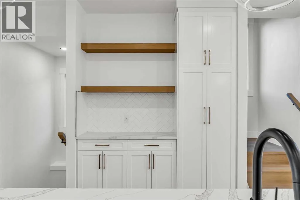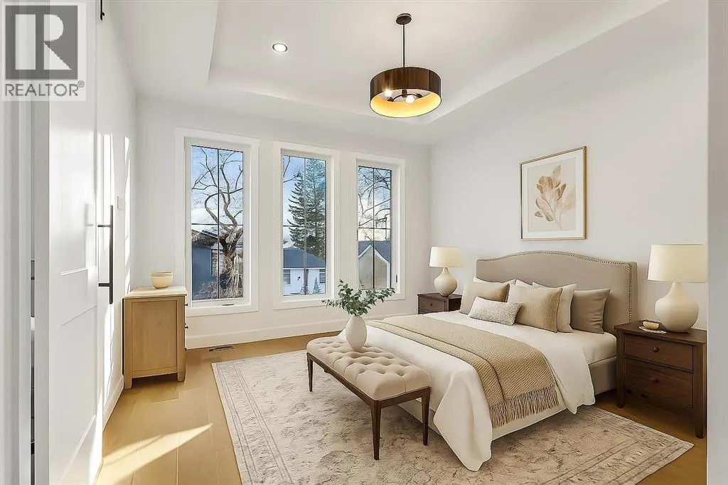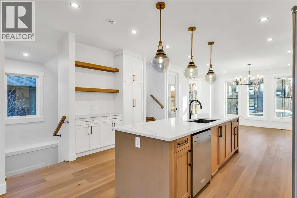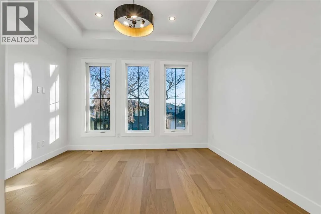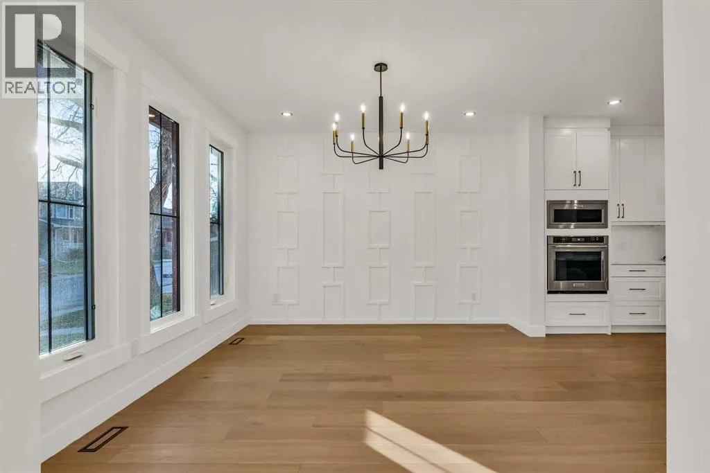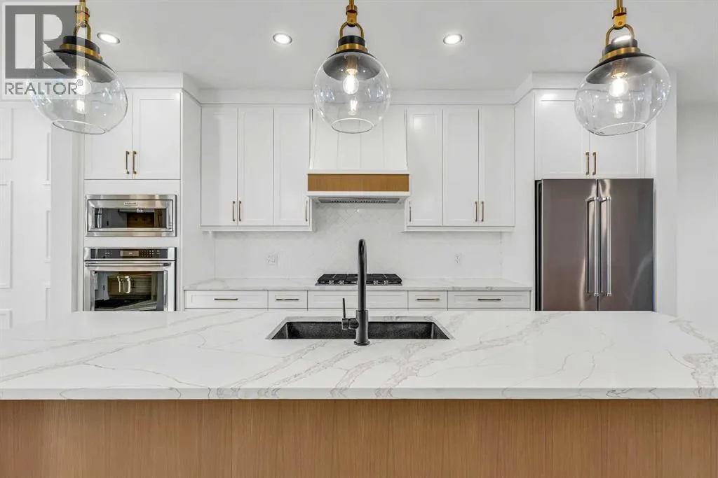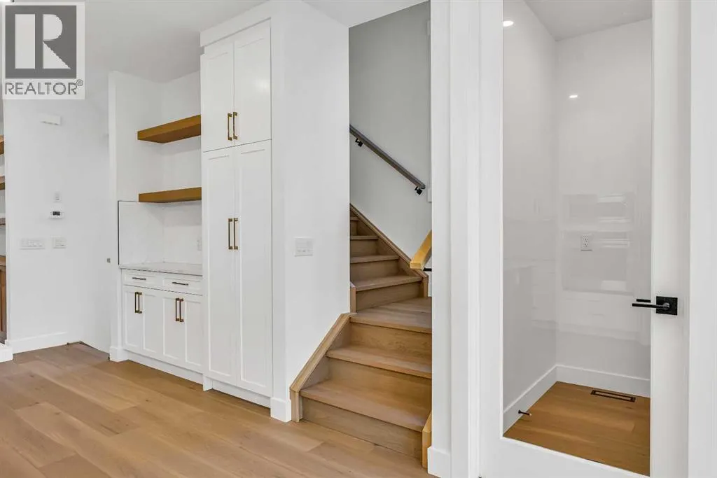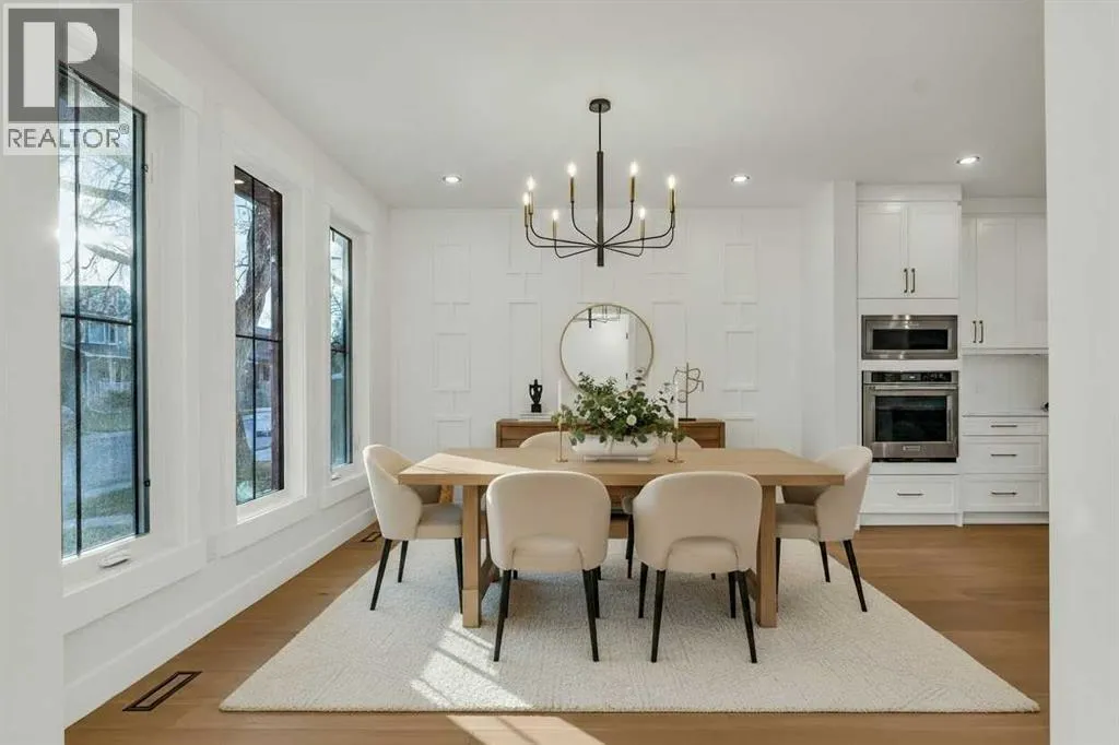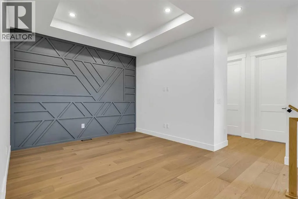 Located on a quiet, tree-lined street in Mount Pleasant, this brand-new home combines sophisticated craftsmanship with a functional family-friendly layout. The modern HARDIE BOARD exterior is paired with a SOUTH-FACING FRONT PATIO encouraging peaceful morning coffees. Step inside to a bright front foyer with CUSTOM MILLWORK BUILT-INS leading to a formal beautiful dining room accented by a WOOD FEATURE WALL that sets the tone for the homeâs elegant design. The GOURMET KITCHEN is a chefâs dream with a galley-style layout that encourages culinary creativity. High-end KITCHENAID APPLIANCES include a GAS COOKTOP and BUILT-IN WALL OVEN and MICROWAVE, complemented by STONE COUNTERS, UNDER-CABINET LIGHTING, a GARBAGE PULLOUT, and an OVERSIZED CRUSHED GRANITE SINK. A walk-through area off the kitchen offers both a WALL PANTRY with APPLIANCE COUNTER and a separate ENCLOSED ROOM that can serve as a PANTRY or MAIN FLOOR OFFICE. The open-concept living room is warm and welcoming with CUSTOM BUILT-IN SHELVING and a GAS FIREPLACE overlooking the BACKYARDâperfect for quiet evenings or gatherings with friends. A MUDROOM with abundant STORAGE and a tucked-away POWDER ROOM with a WATERFALL-EDGE VANITY complete the main level. A GLASS-RAILED staircase with HARDWOOD TREADS leads to the UPPER LEVEL where youâll find HARDWOOD FLOORING throughout. A BONUS ROOM with a WOOD FEATURE WALL creates separation between the PRIMARY and SECONDARY BEDROOMS for enhanced privacy. The PRIMARY SUITE is a true retreat with a COFFERED CEILING, LARGE WALK-IN CLOSET, and a LUXURIOUS ENSUITE featuring a STEAM SHOWER, FREE-STANDING TUB, and DUAL VANITY. Two spacious additional bedrooms, a 4-piece main bath, and a convenient LAUNDRY ROOM complete this level. The FULLY DEVELOPED BASEMENT continues the homeâs elevated design with a WET BAR and BEVERAGE CENTER for easy entertaining. The REC ROOM features ENTERTAINMENT BUILT-INS and ample space for relaxation or family movie nights. Thereâs a FOURTH BEDROOM with LA RGE WALK-IN CLOSET, a 4-PIECE BATHROOM, and an ENCLOSED FLEX ROOM ideal for a FIFTH BEDROOM, GYM, or HOME OFFICE. Enjoy the PRIVATE BACK YARD with EXTENDED GREEN SPACE for kids and pets large patio area for barbeques and unwinding. Additional features include ROUGH-IN FOR AIR CONDITIONING, a DOUBLE DETACHED GARAGE with 8-FOOT DOOR, EV CHARGER READY OUTLET, and a PAVED BACK LANE. This home offers an exceptional blend of modern luxury and timeless craftsmanshipâall in a walkable inner-city location close to CONFEDERATION PARK, SAIT, and the restaurants and cafés along 19 Street NW. A refined residence for those who value quality, design, and comfort in equal measure. (id:27476)