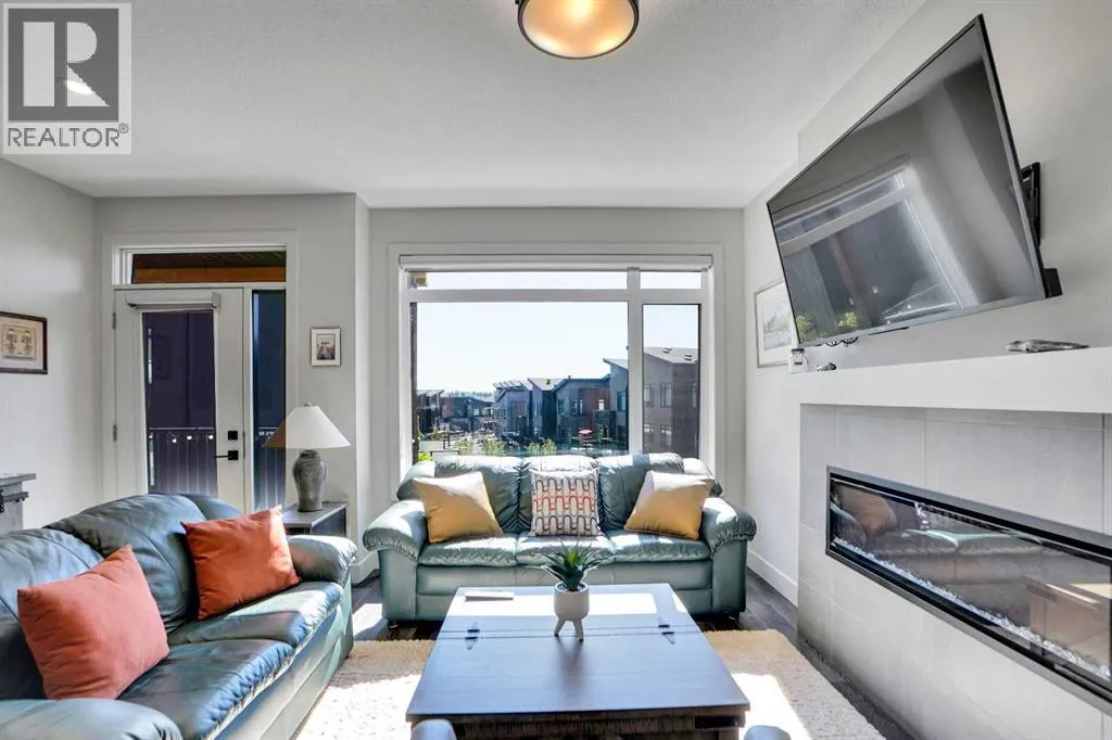 **OPEN HOUSE SAT NOV 15, 1-3PM*** Your EXTRAORDINARY LIFESTYLE in The Ravines awaits! This very special unit has everything you are looking for! Start with the great interior location FACING GREENSPACE, where you can enjoy your morning coffee elevated amongst the gardens of the LOWER COVERED PATIO, or from your UPPER COVERED DECK. The entry level has a fantastic FLEX space - great for a HOME OFFICE, den or workout space with large window, storage, w/direct entry to your single ATTACHED garage (11'3x20'7). LOADS of storage including double closet and NEW Storage room (6'8x3'4) GREAT spot for your BIKE or seasonal decorations. Upstairs brings you to SINGLE LEVEL LIVING and the beauty of this floorplan - OPEN CONCEPT Kitchen/living/dining with tall ceilings and OVERSIZED triple pane windows to VIEW of the PRIVATE GREENBELT within this exclusive complex. Living room features MODERN electric FIREPLACE & VINYL PLANK flooring w/full glass door to upper deck, where you have plenty of room for BBQ (w/GAS LINE)& lighting, for relaxing or entertaining. Kitchen exceeds expectations with UPGRADED appliance package, QUARTZ countertop, room for stools, filtered water, LOADS OF STORAGE. PRIMARY bedroom with windows on two sides enjoying corner natural light, with cheater ensuite door to 4-pc bathroom. 2nd bedroom has room for queen bed. Laundry conveniently located on this level. CENTRAL AC keeps you cool all summer long. This unit is designed for all ages looking for LOW MAINTENANCE lifestyle in a well-built JANSSEN HOME, steps to walking paths and LRT, short drive to shopping, restaurants and Stoney Trail. The most AFFORDABLE unit in the complex with low condo fee! (id:27476)